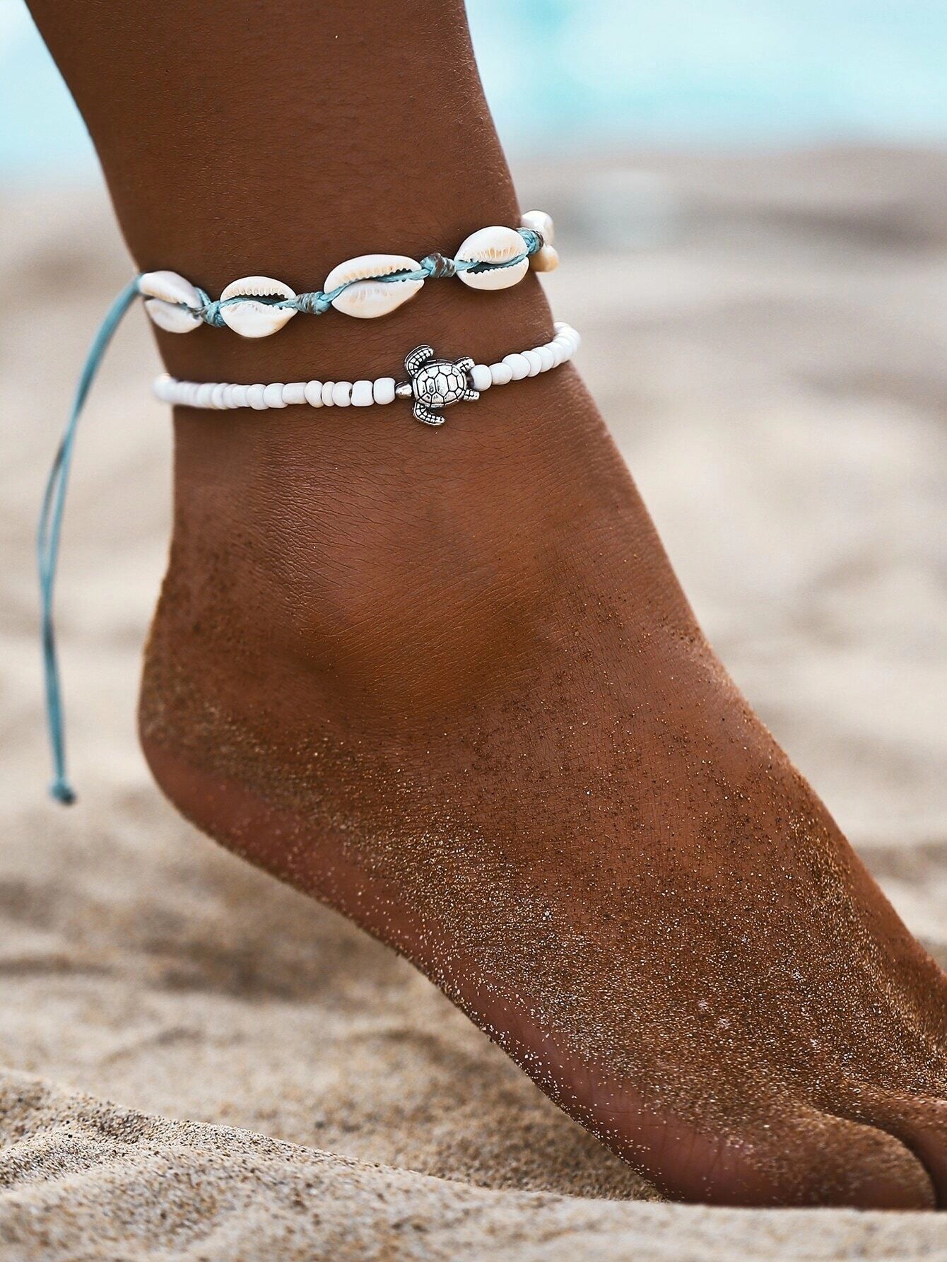 wish新款脚链 时尚波西米亚风沙滩贝壳脚链两件套装男女海滩脚饰