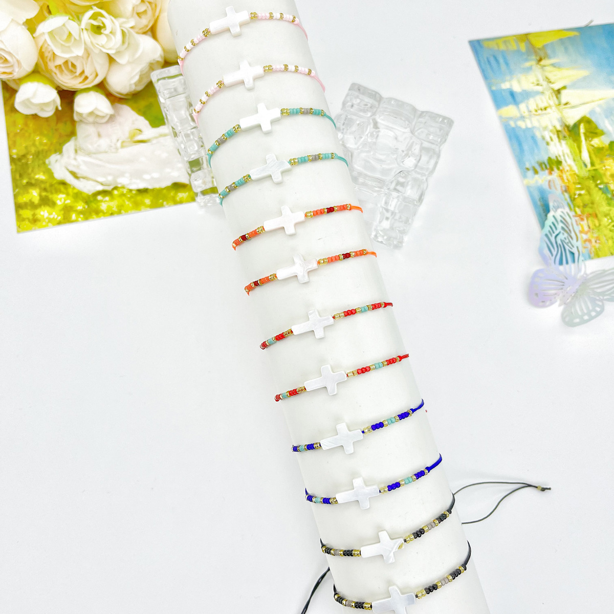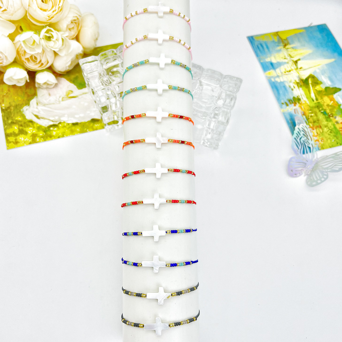 商品名称:贝壳十字架米珠手链