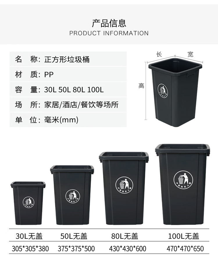 正方形商用无盖大号垃圾桶厨房大容量带盖垃圾箱家用餐饮柜桶