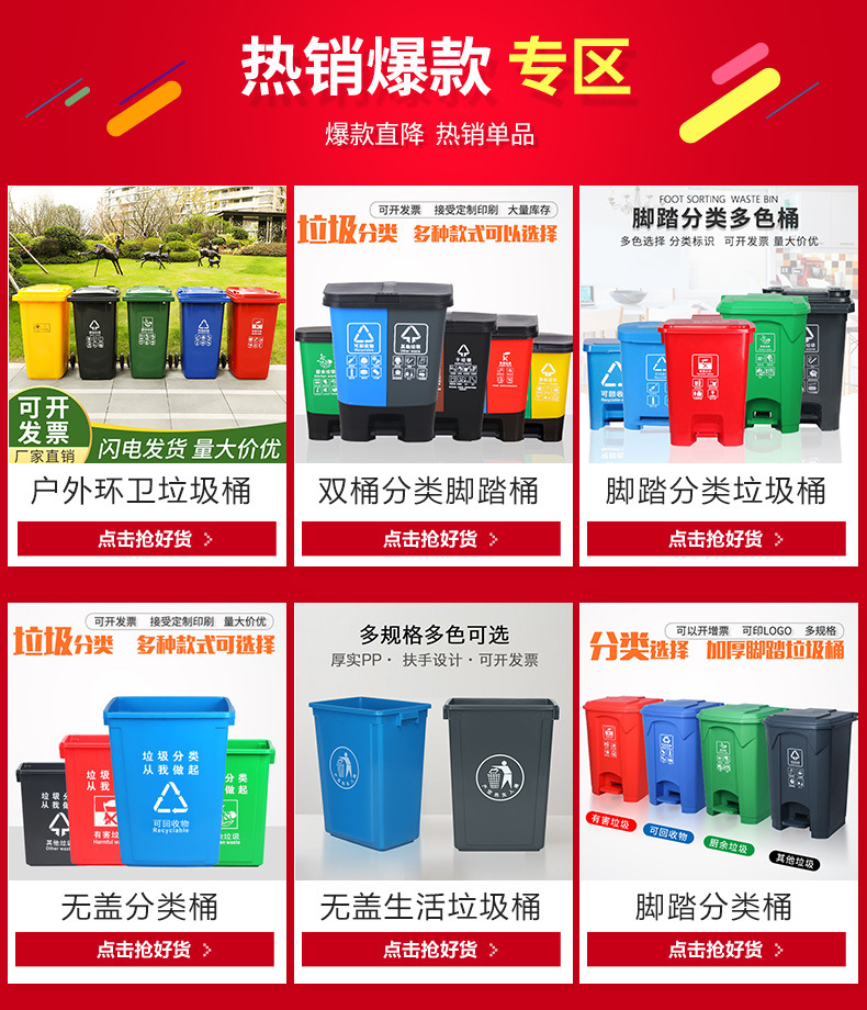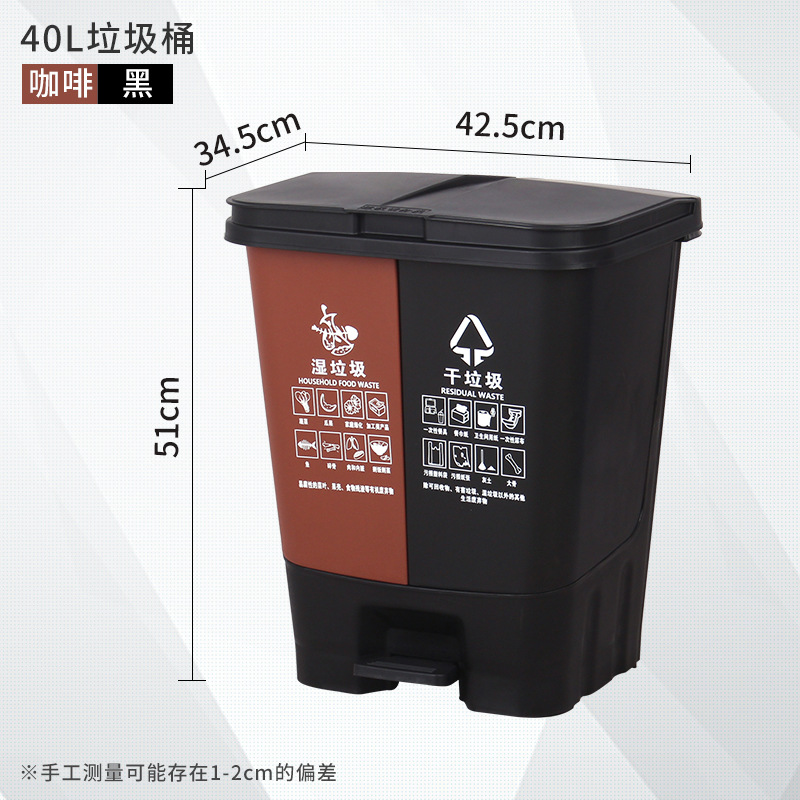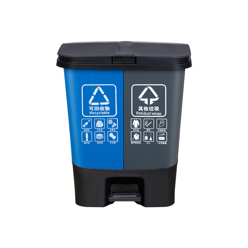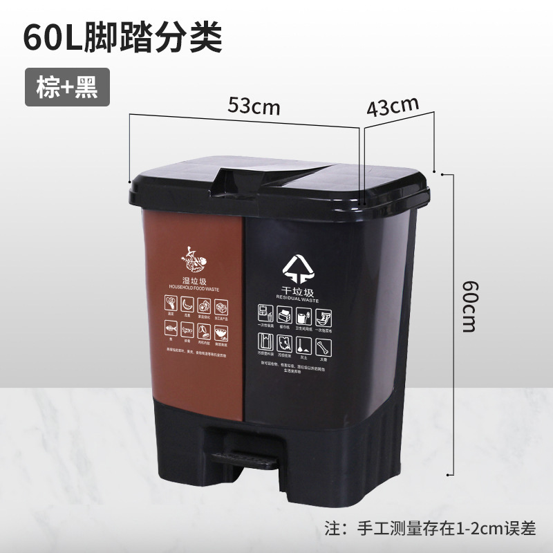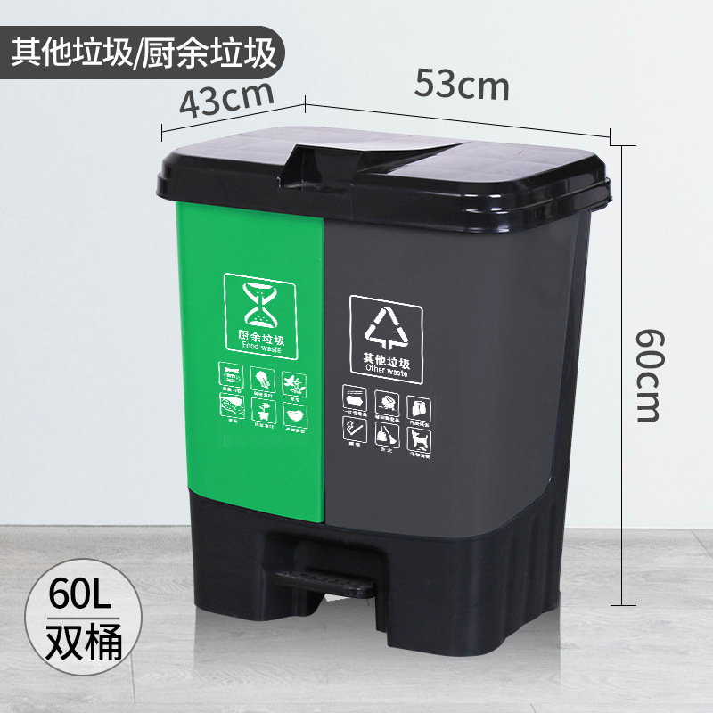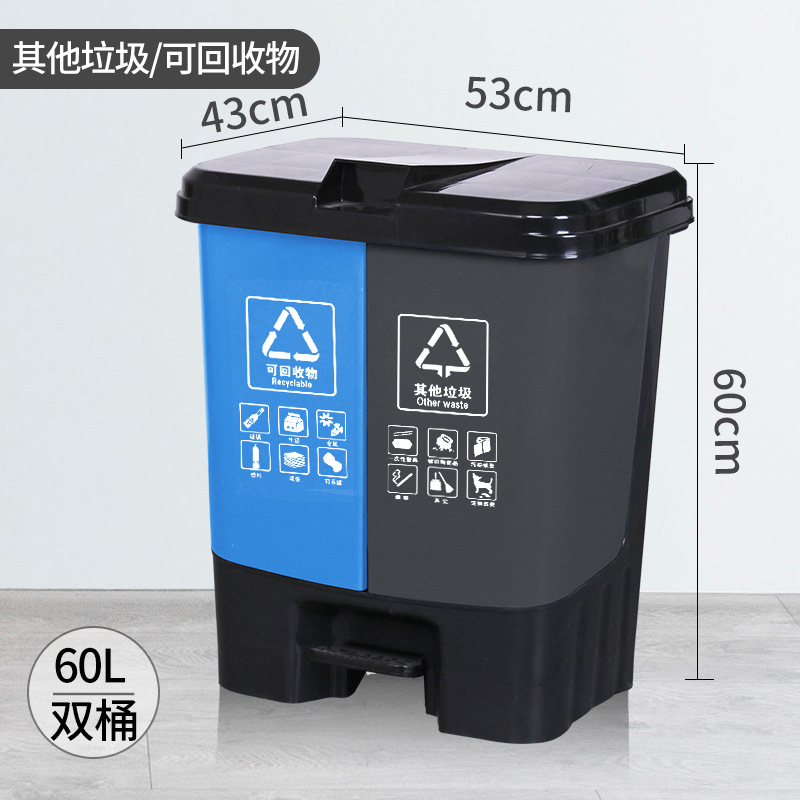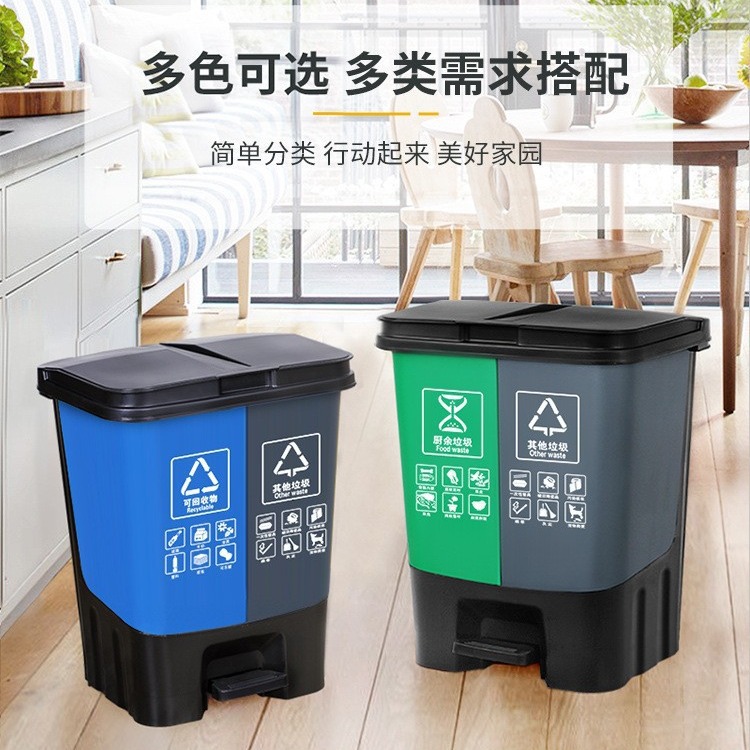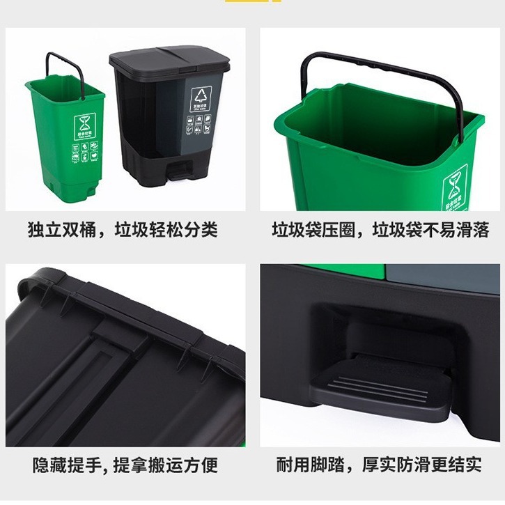 脚踏双桶分类垃圾桶家用干湿分离街道双胞胎塑料带盖垃圾桶大容量
