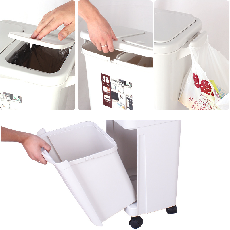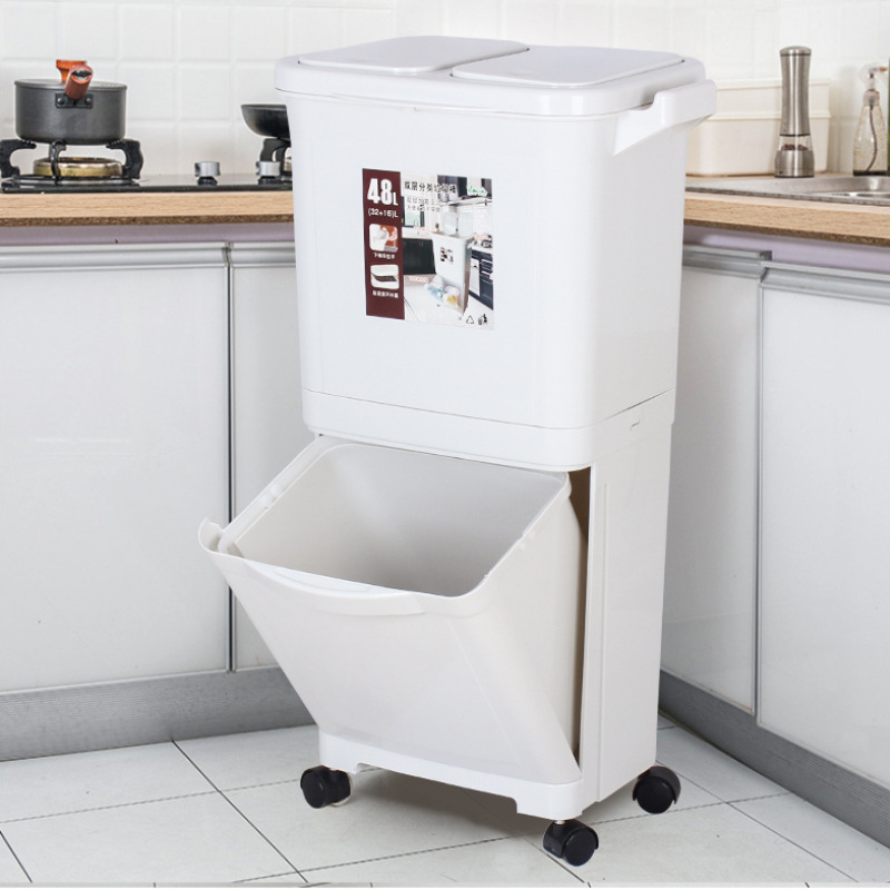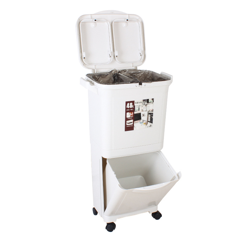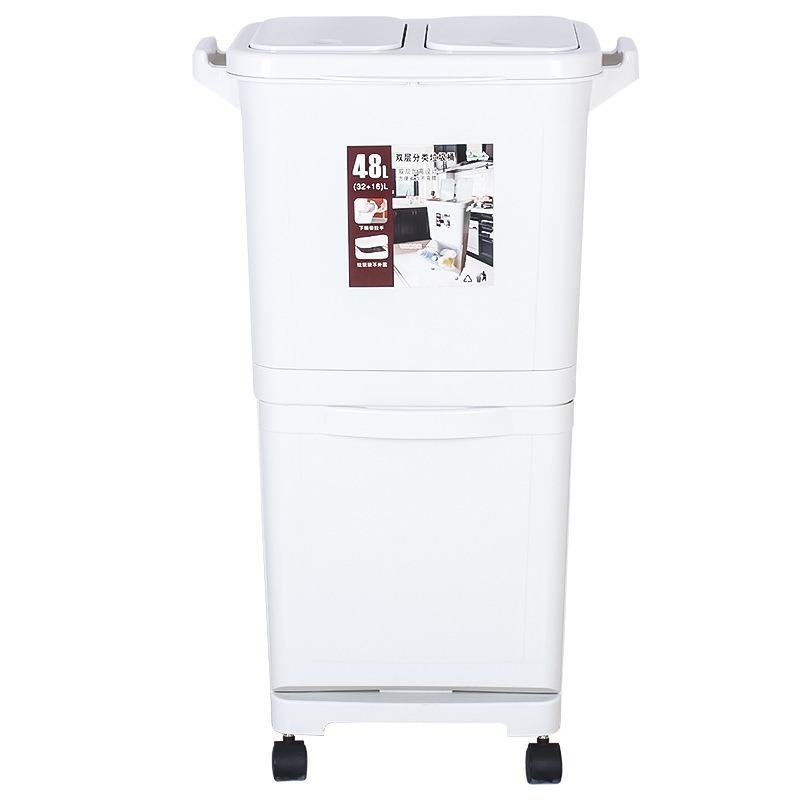 淘宝外贸分类垃圾桶 家用48L日式双层干湿分离多功能厨房带盖带轮