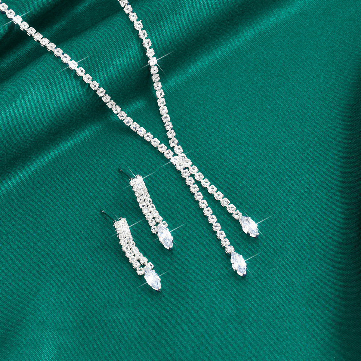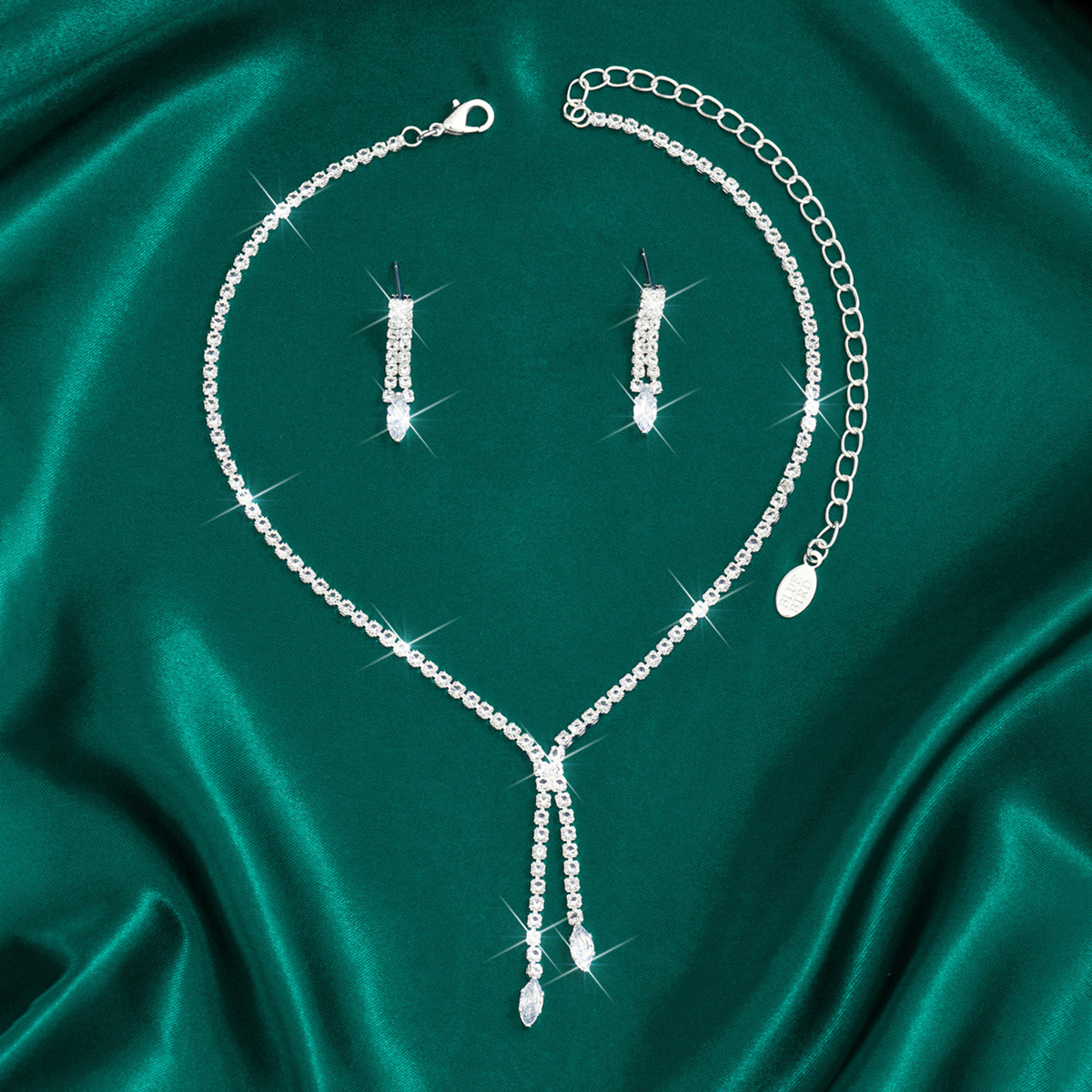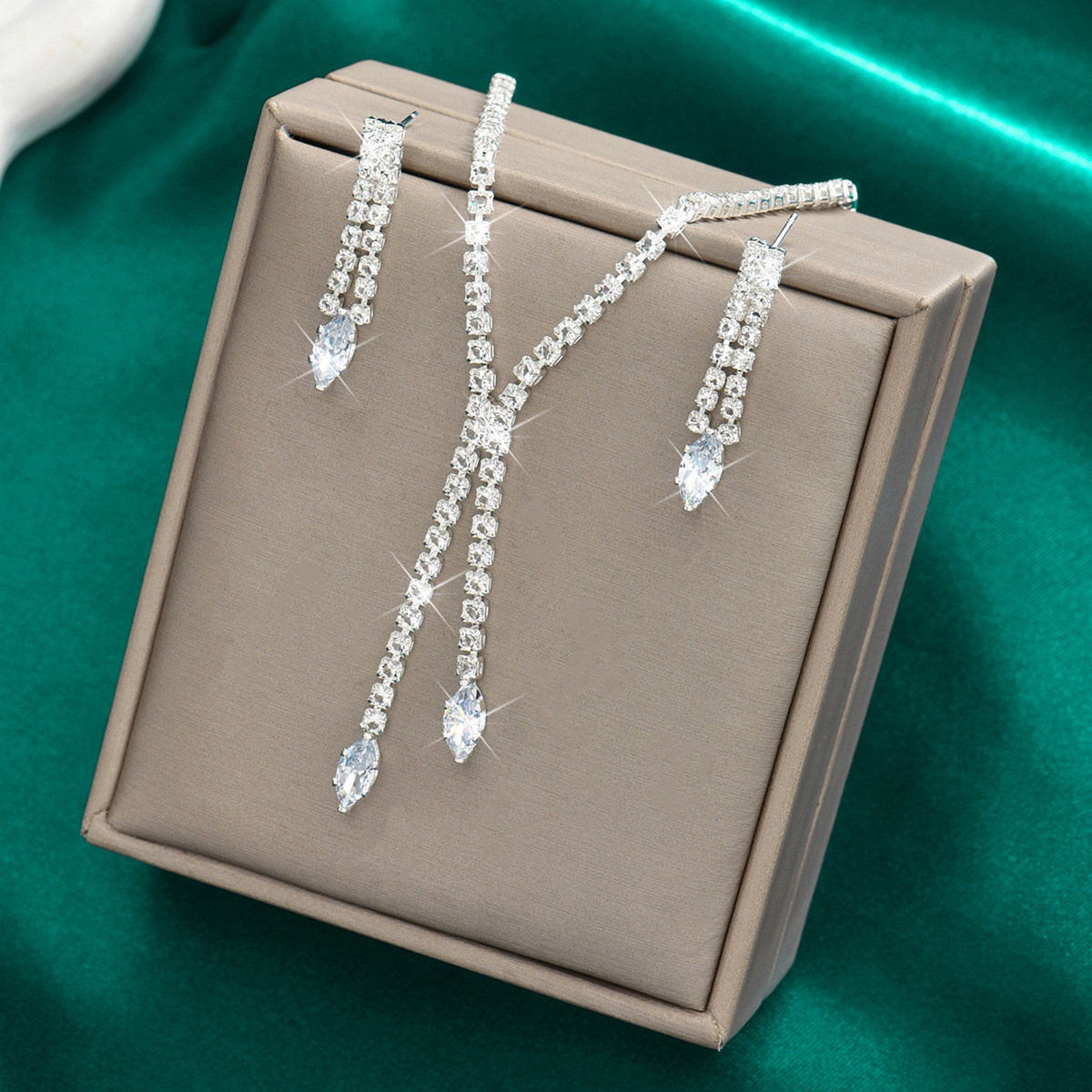 跨境货源 轻奢简约锁骨链精致爪链马眼锆石水钻水晶耳环项链套装