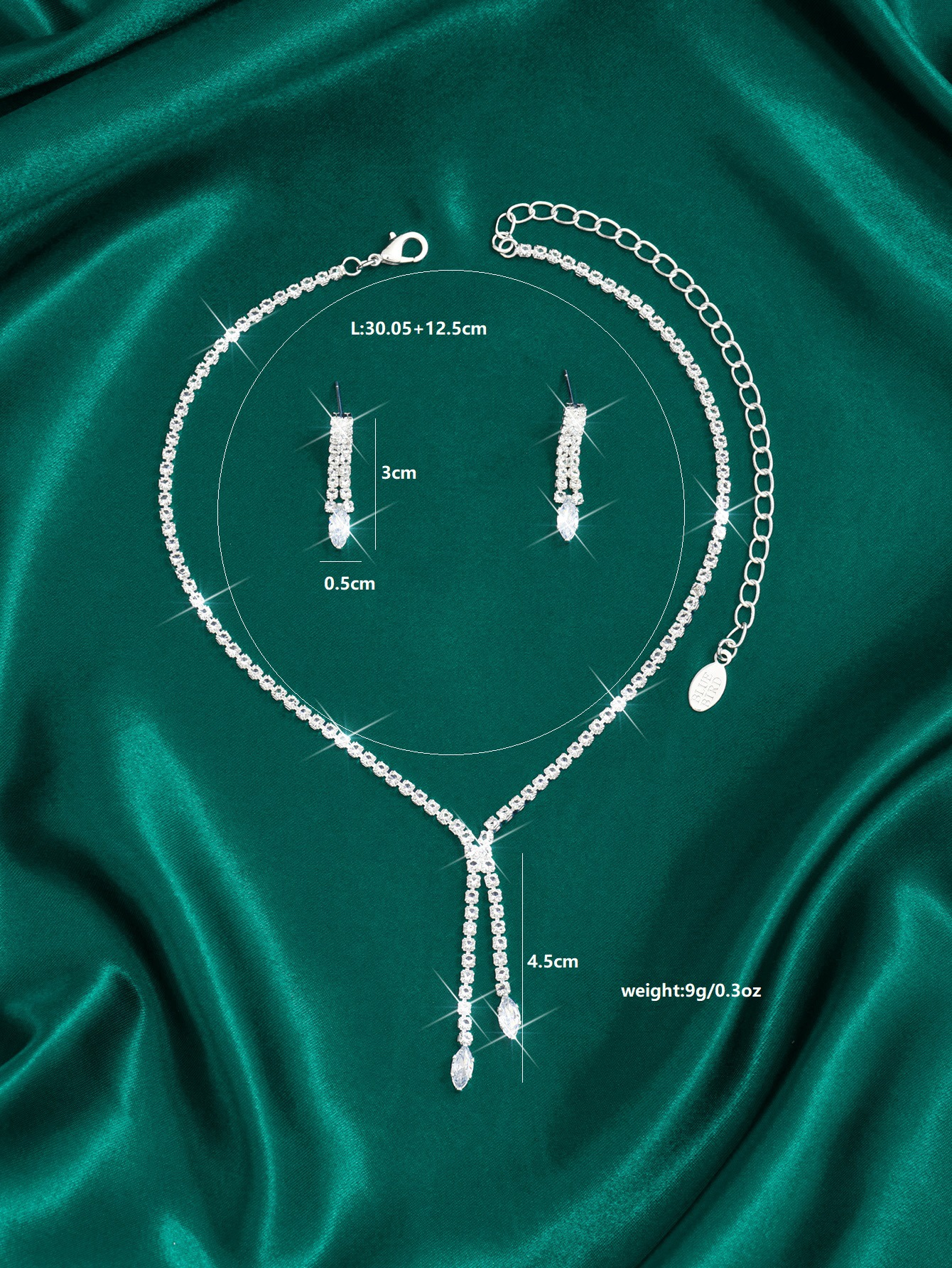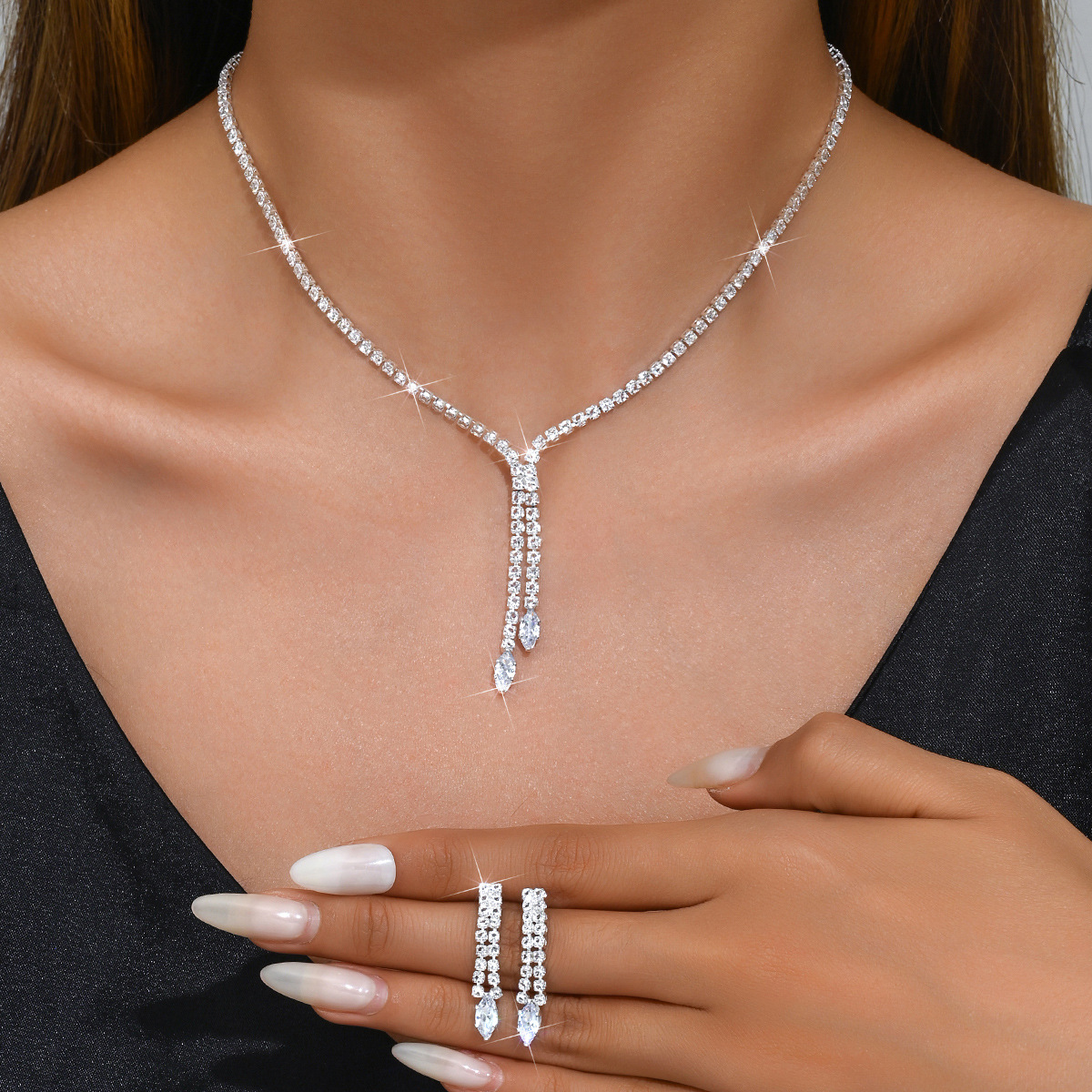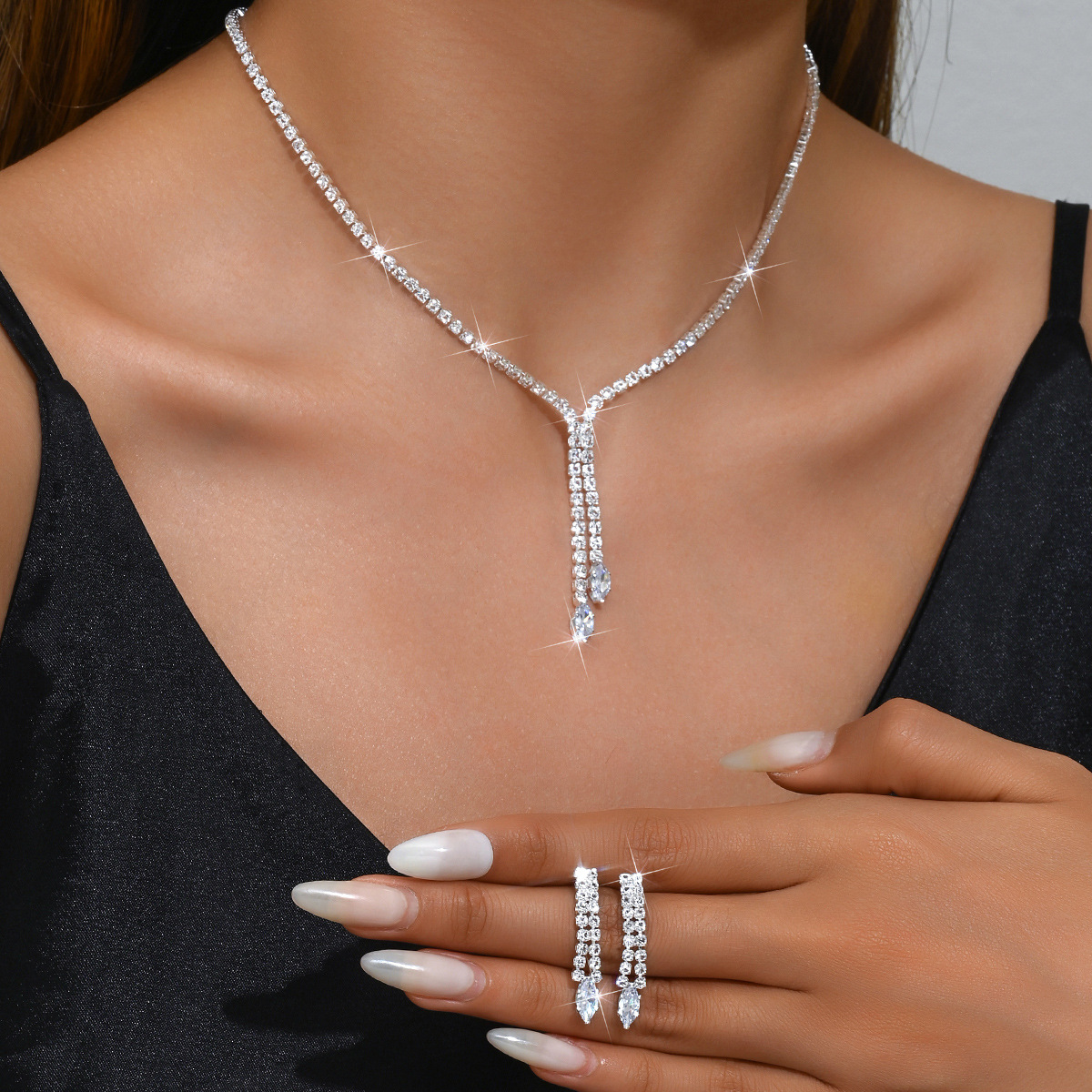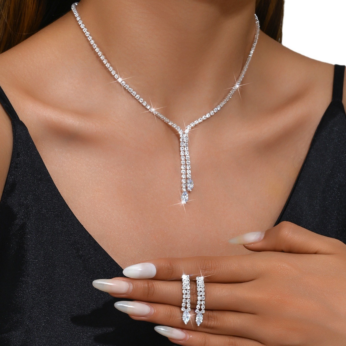 跨境货源 轻奢简约锁骨链精致爪链马眼锆石水钻水晶耳环项链套装