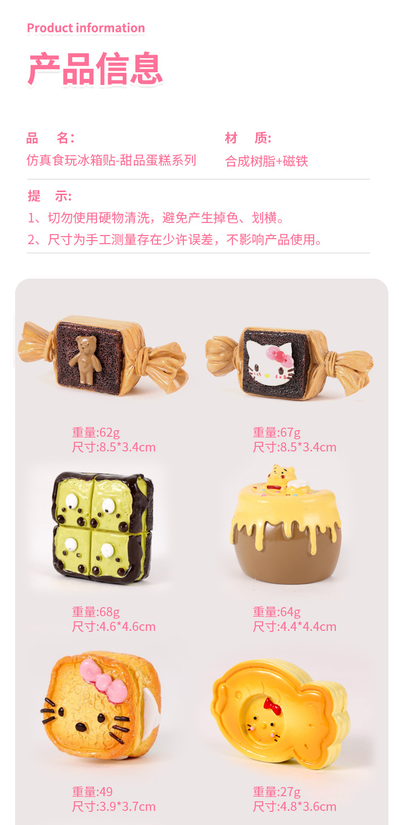 仿真食玩为纯手工制作的工艺品,不同的师傅做出来的产品略微有不同,有微微瑕疵属于正常范围,除非是破损、掉漆、掉磁铁、断裂等原因外可退换货。