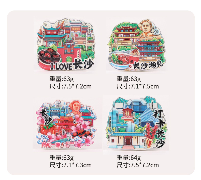 【长沙系列】长沙冰箱贴磁吸贴旅游景点纪念品文创树脂磁性工艺品