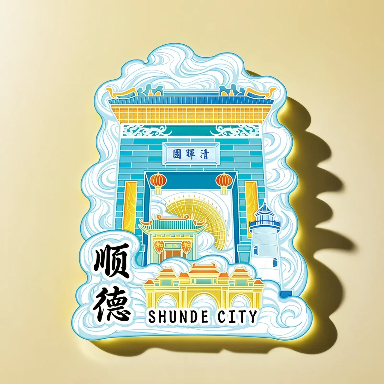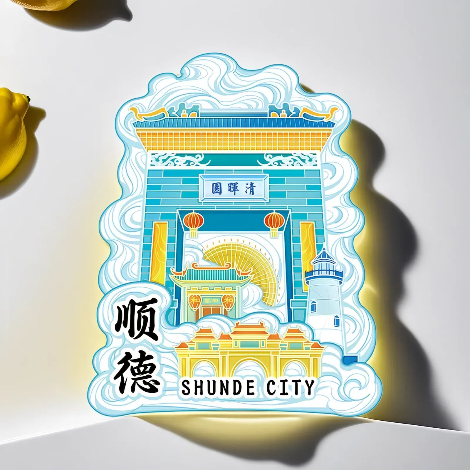 广东顺德清晖园顺峰山岭南和园冰箱贴木质文创旅游纪念品金属城市