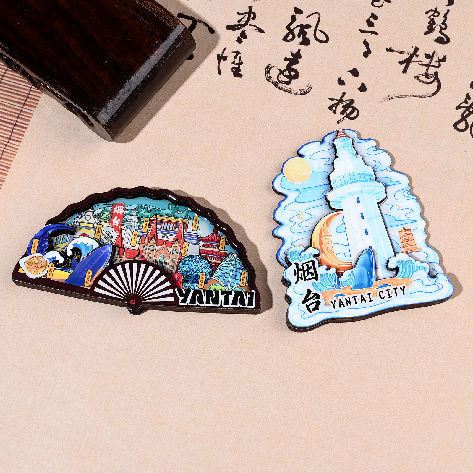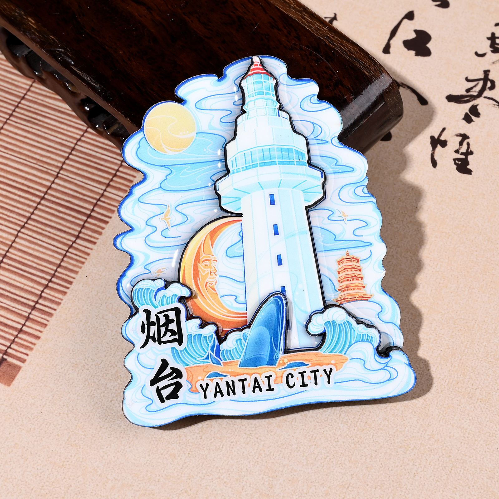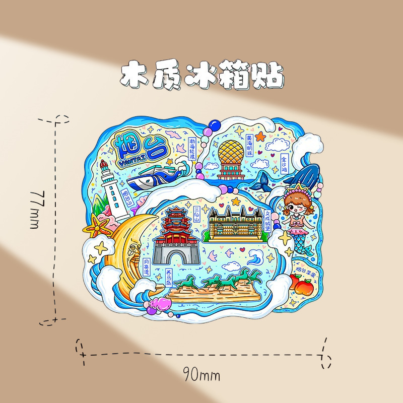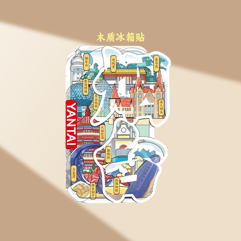 烟台冰箱贴磁吸立体木质城市创意厨房礼品旅游景区文创金属纪念品