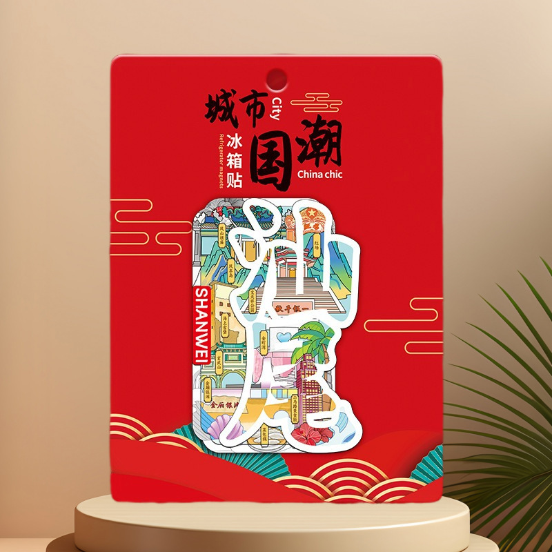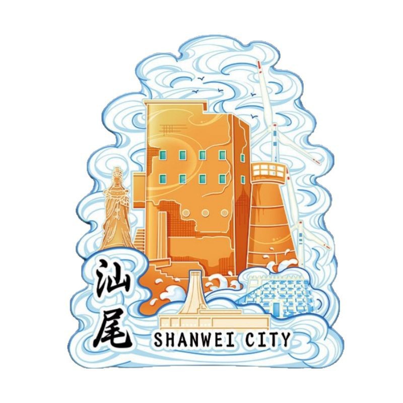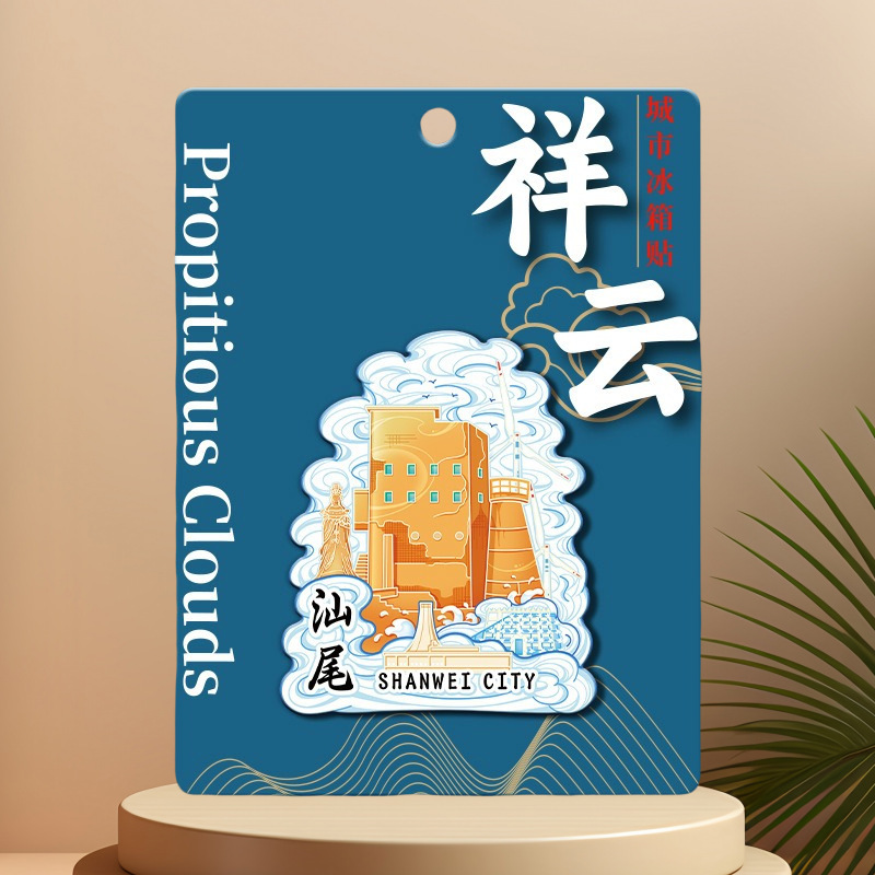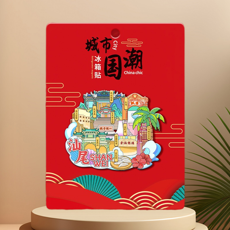 广东汕尾海上木质文创磁吸创意金属城市冰箱贴立体旅游景区纪念品