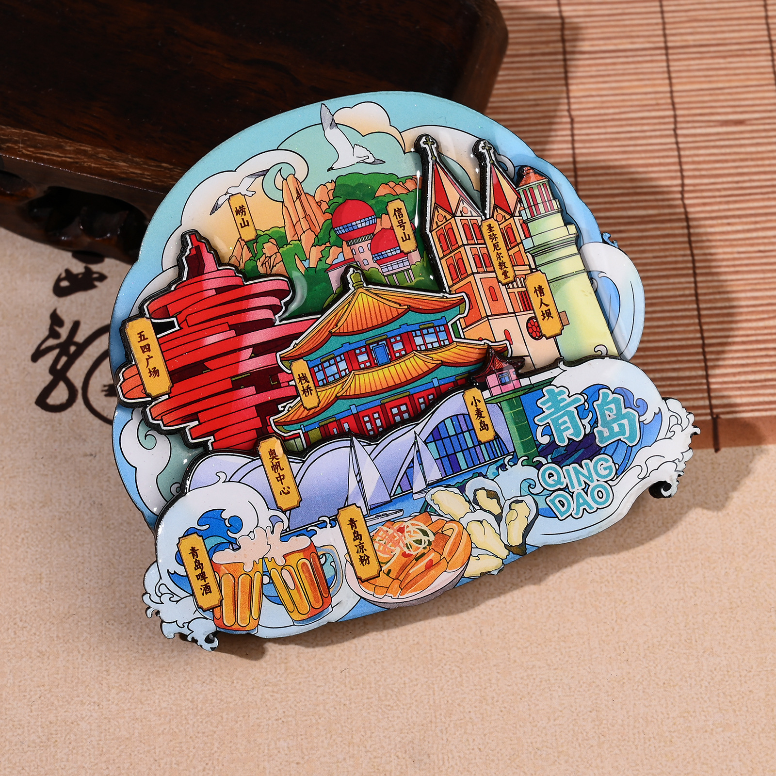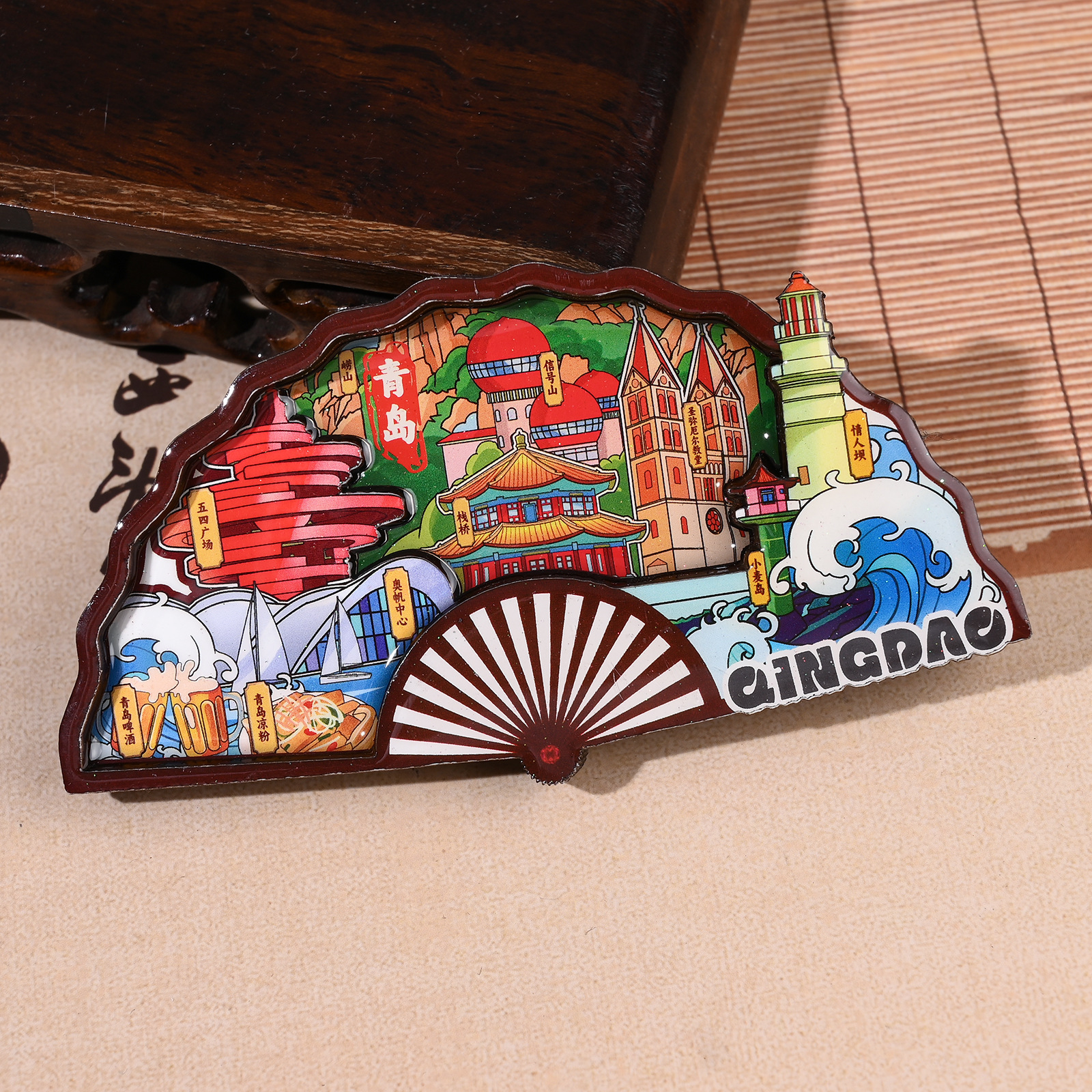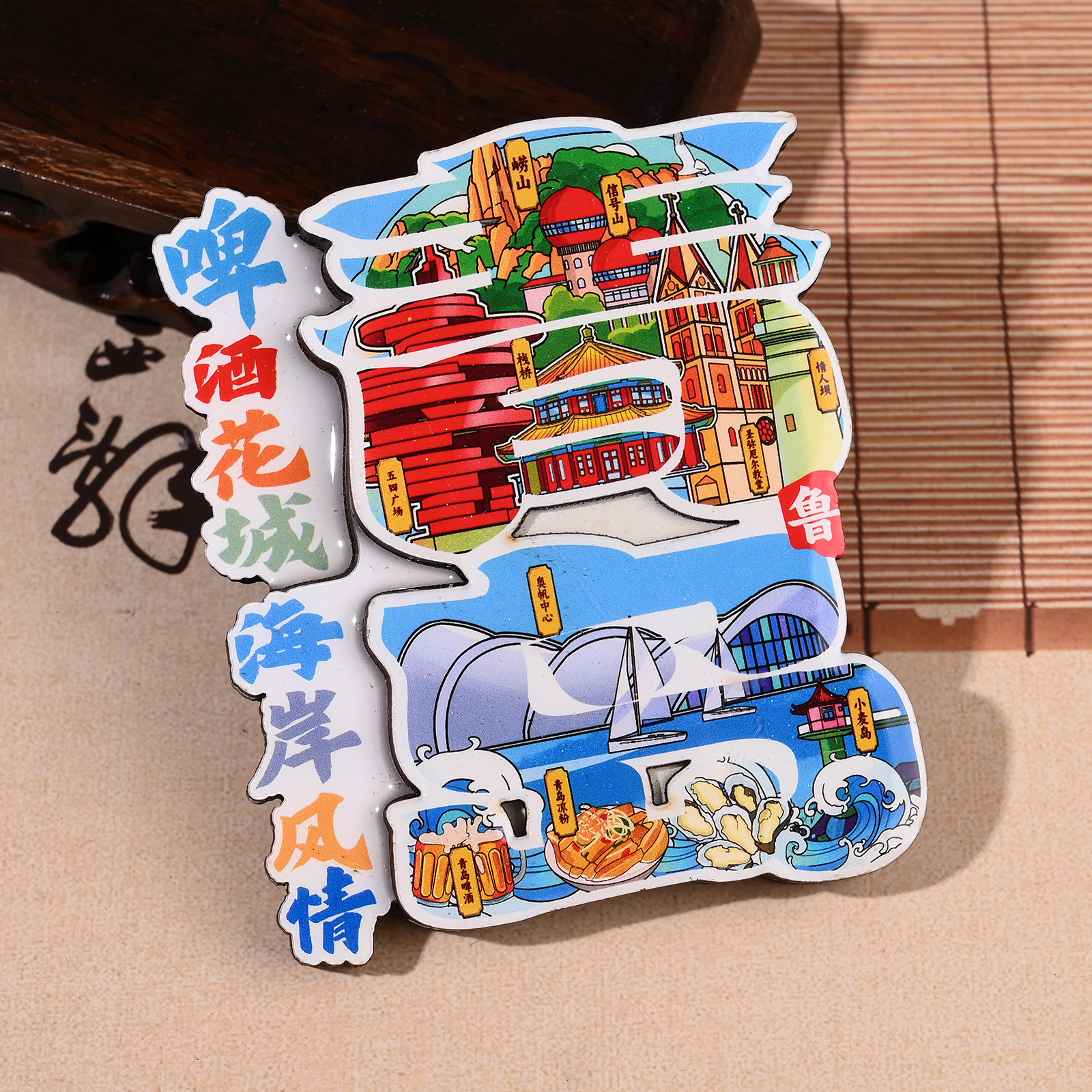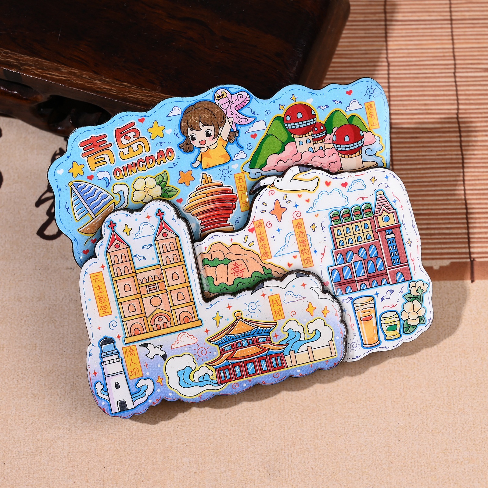 青岛冰箱贴磁吸贴立体木质城市创意厨房礼品旅游文创冰箱贴纪念品