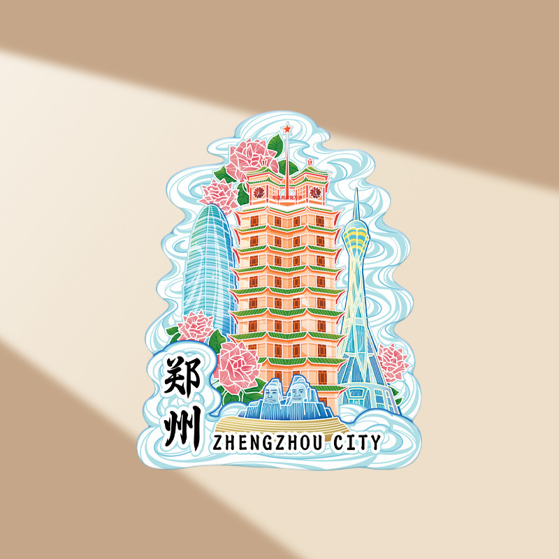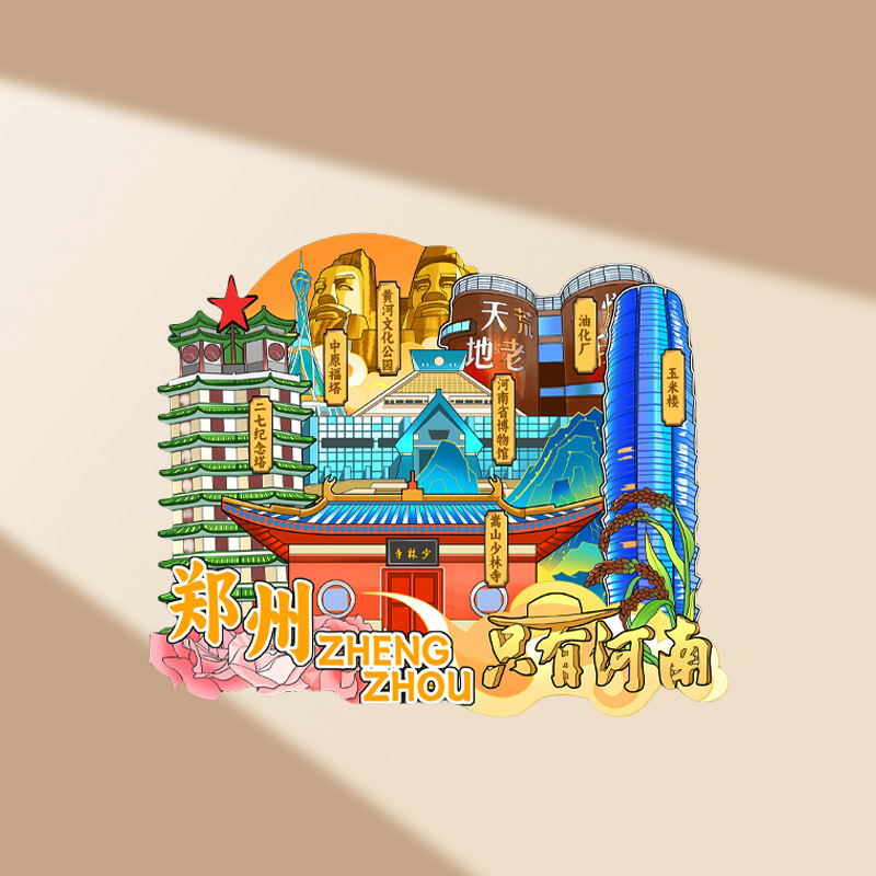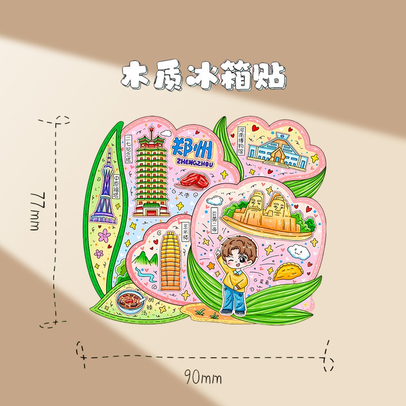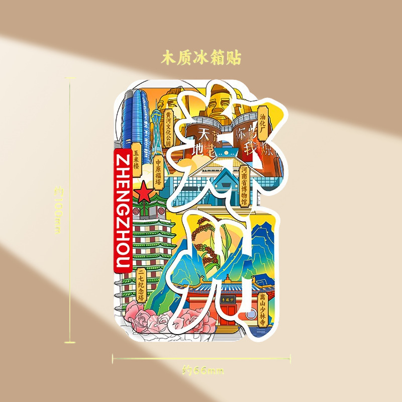 郑州冰箱贴创意性礼品金属磁吸贴多层木质城市文创旅游景点纪念品