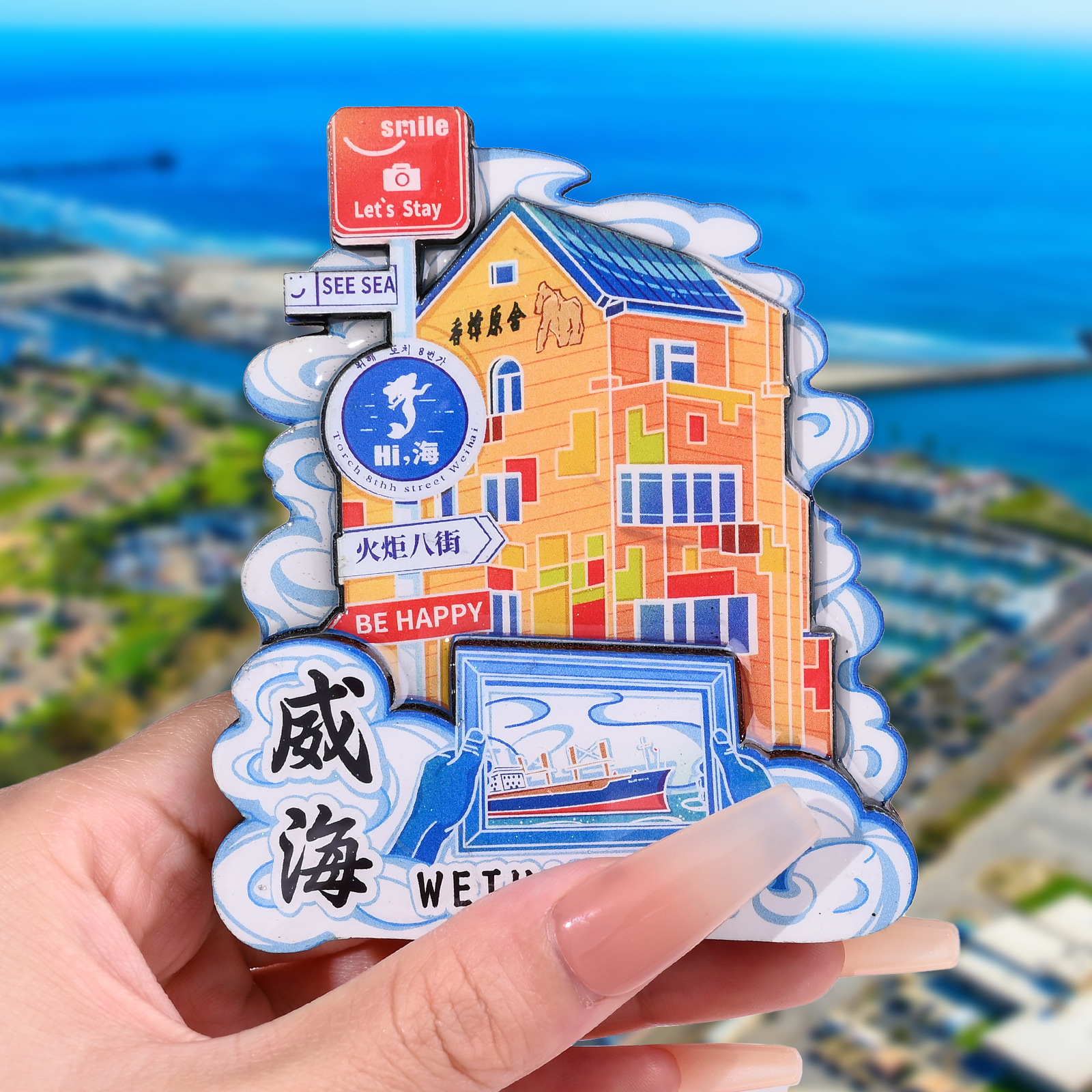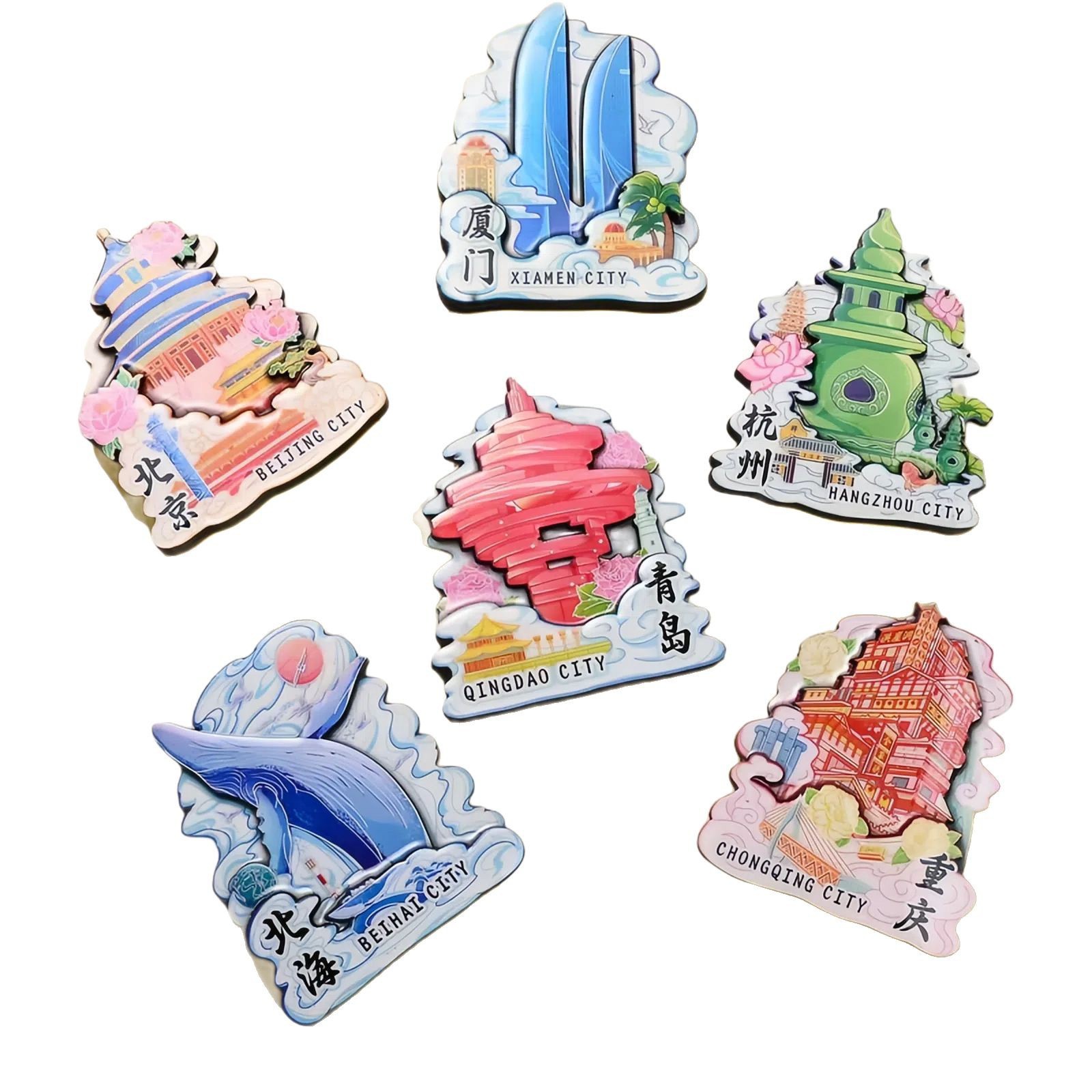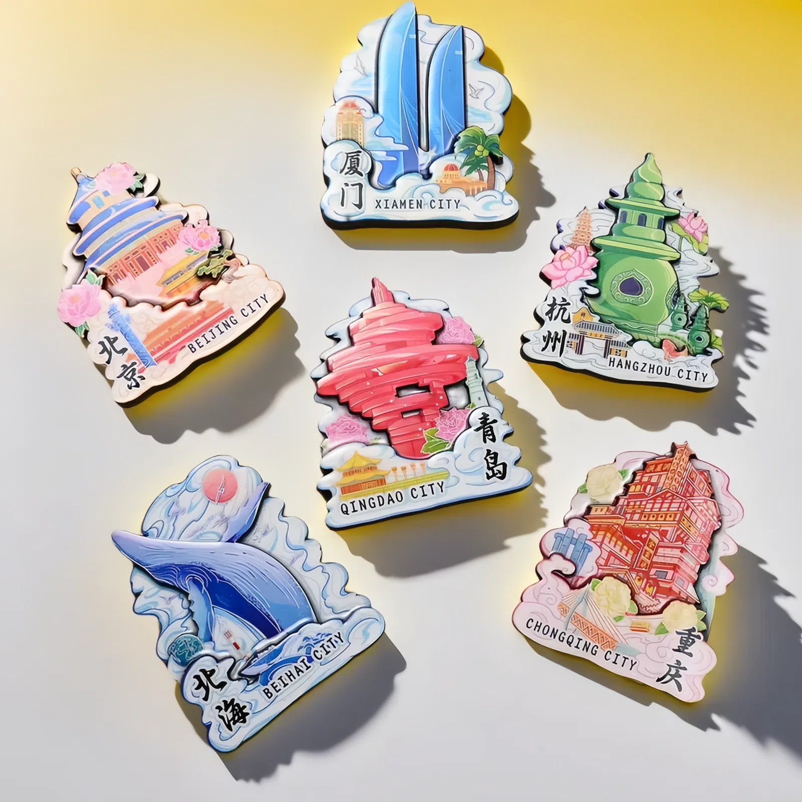 现货祥云全国创意性礼品磁吸贴木质城市文创旅游景点纪念品冰箱贴