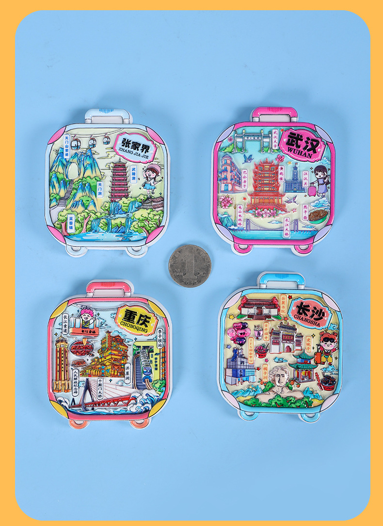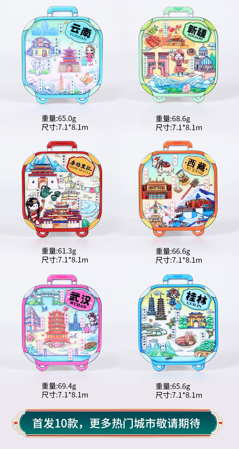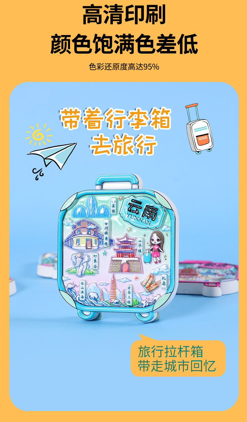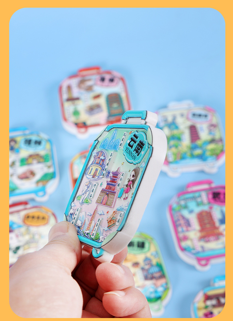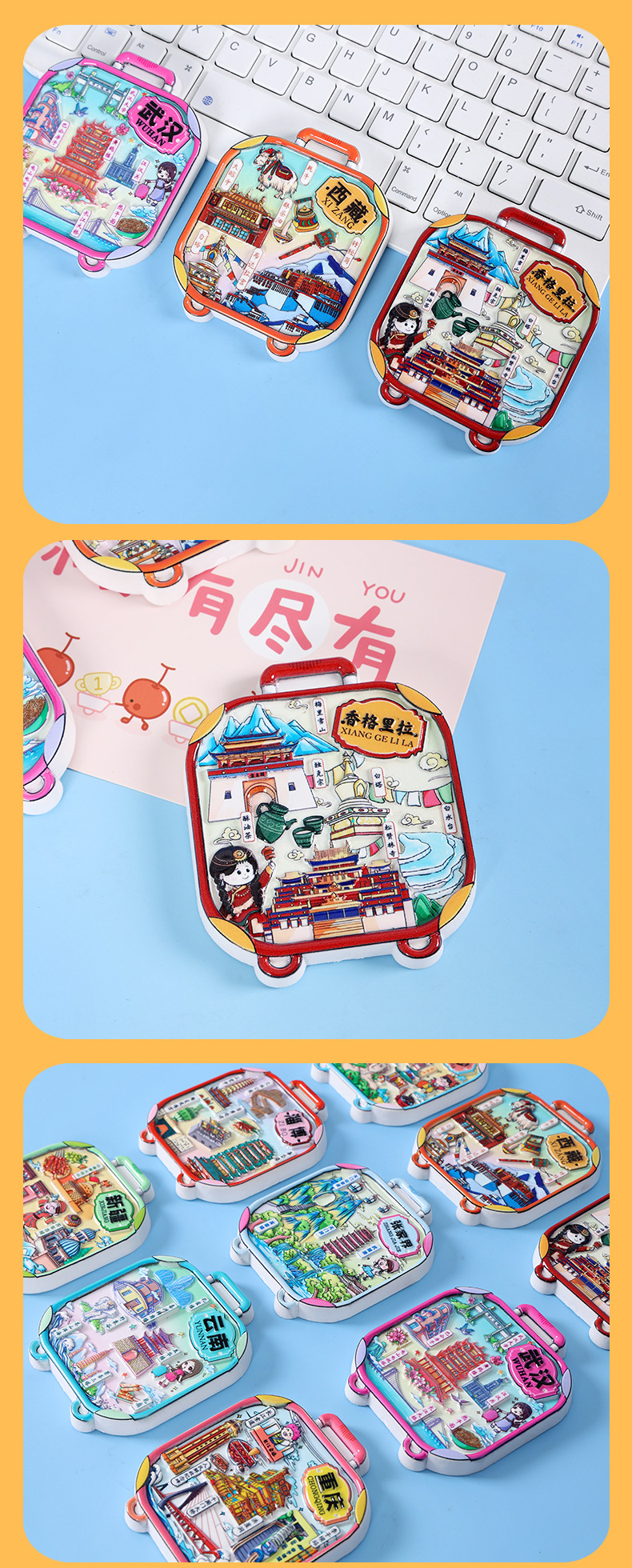 行李箱款城市冰箱贴个性文创3D立体树脂磁吸贴立体创意旅游纪念品