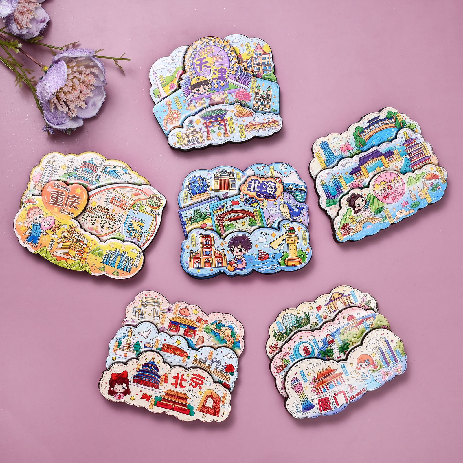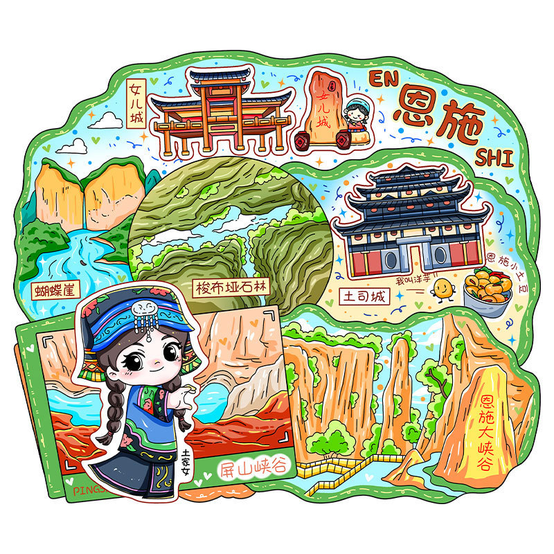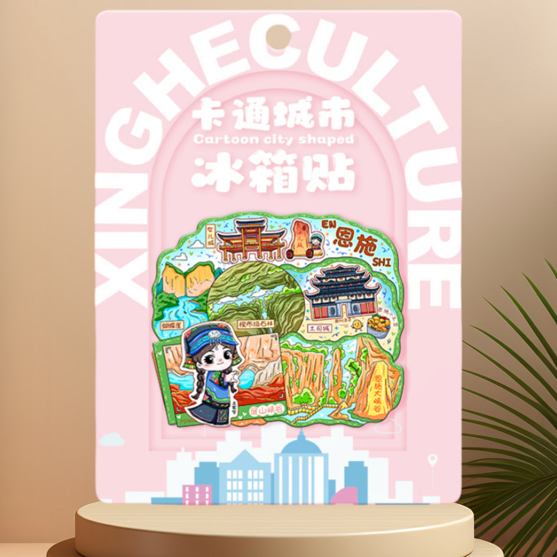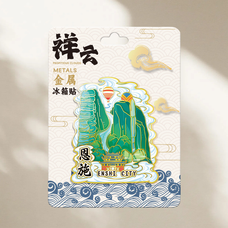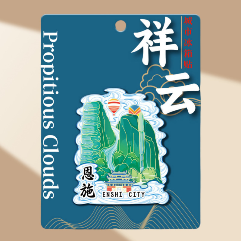 湖北恩施苗族文创木质冰箱贴创意磁吸立体旅游纪念品金属城市景区