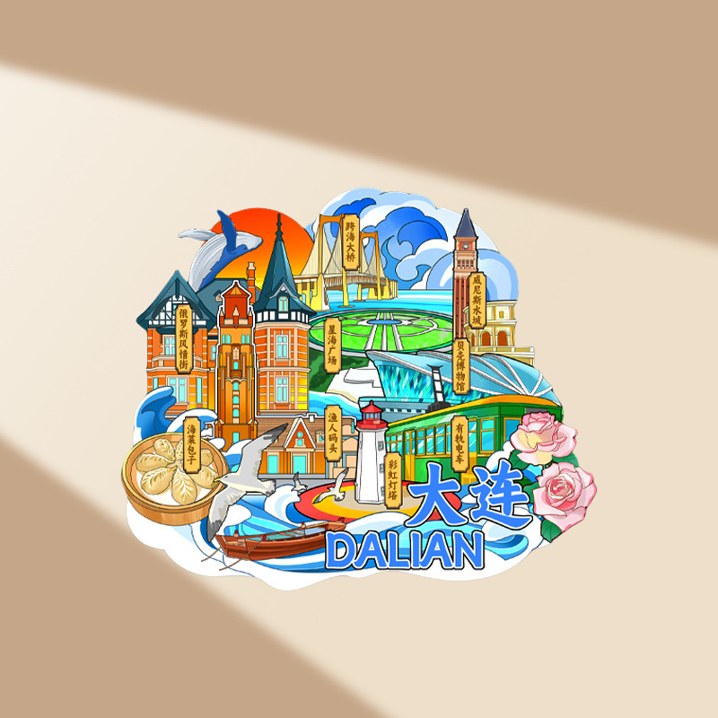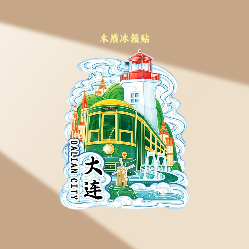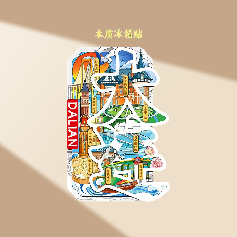 大连冰箱贴磁吸贴立体木质城市创意厨房礼品旅游文创冰箱贴纪念品