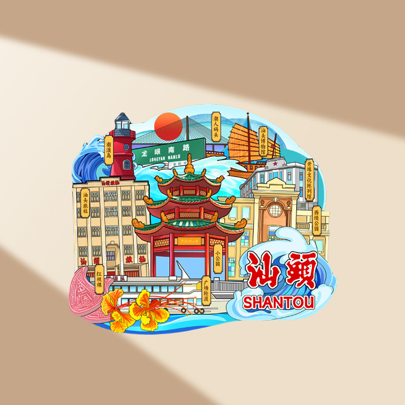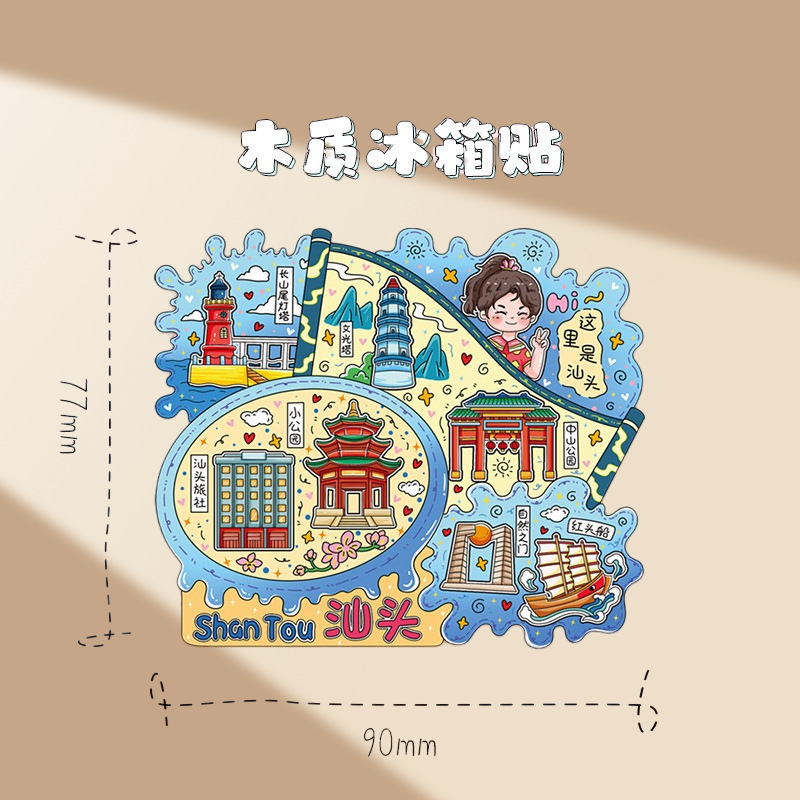 广东汕头冰箱贴创意性礼品金属磁吸木质城市文创旅游景区动漫纪念