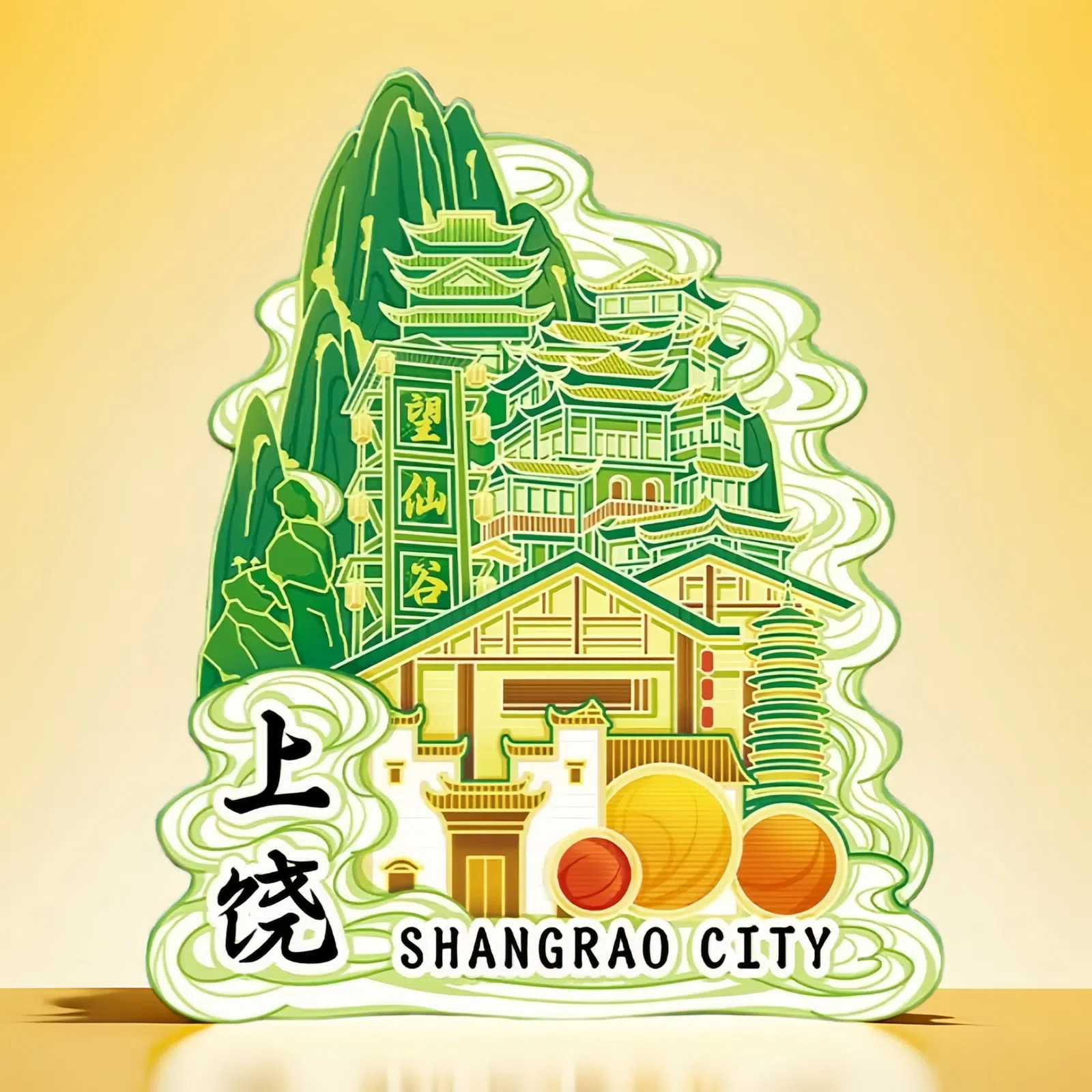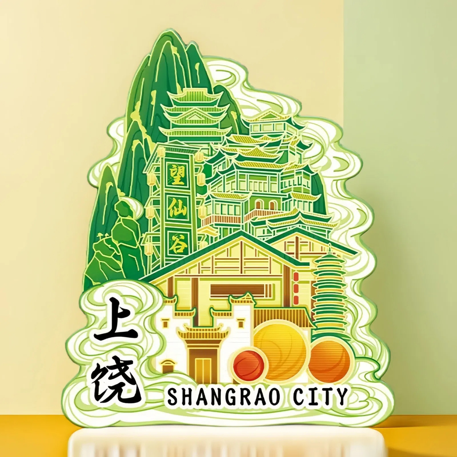江西上饶望仙谷篁岭晒秋三清山木质冰箱贴文创旅游纪念品金属城市