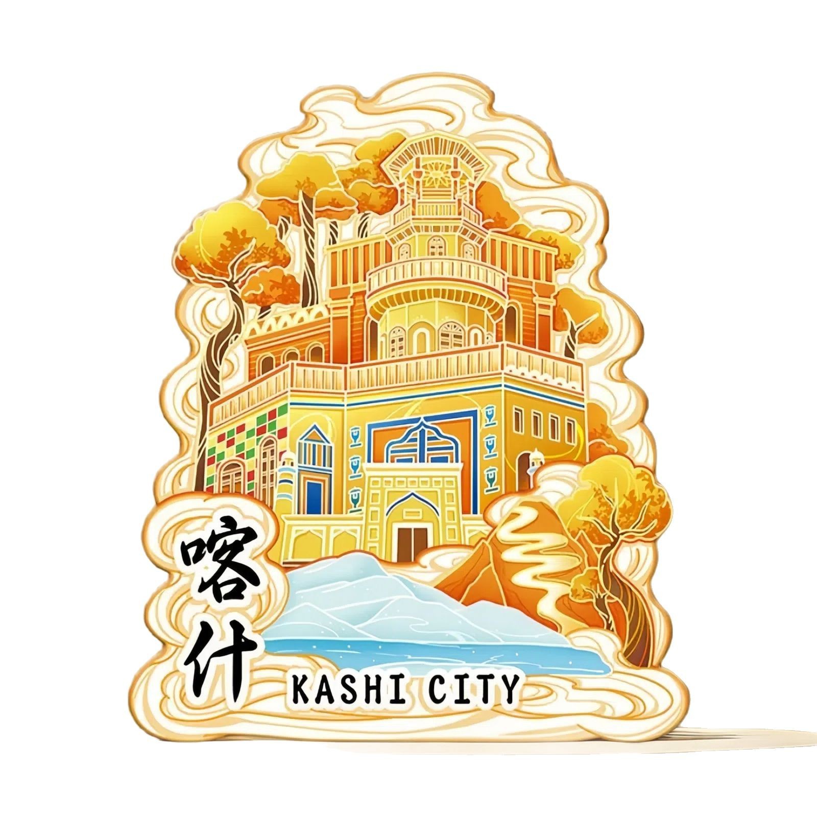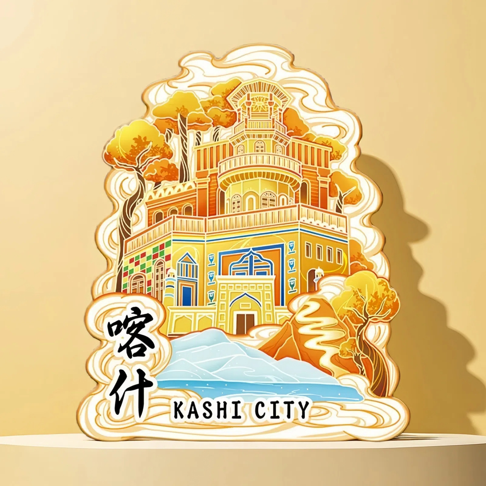 新疆喀什古城清真寺木质冰箱贴金属文创磁吸旅游纪念景区建筑城市