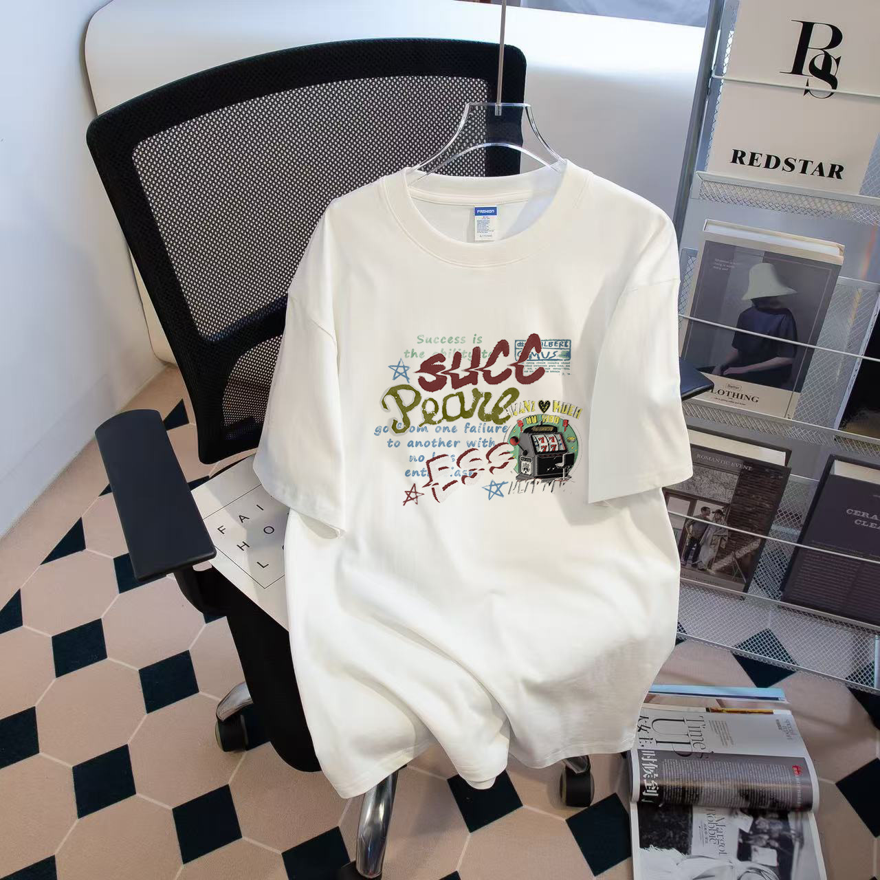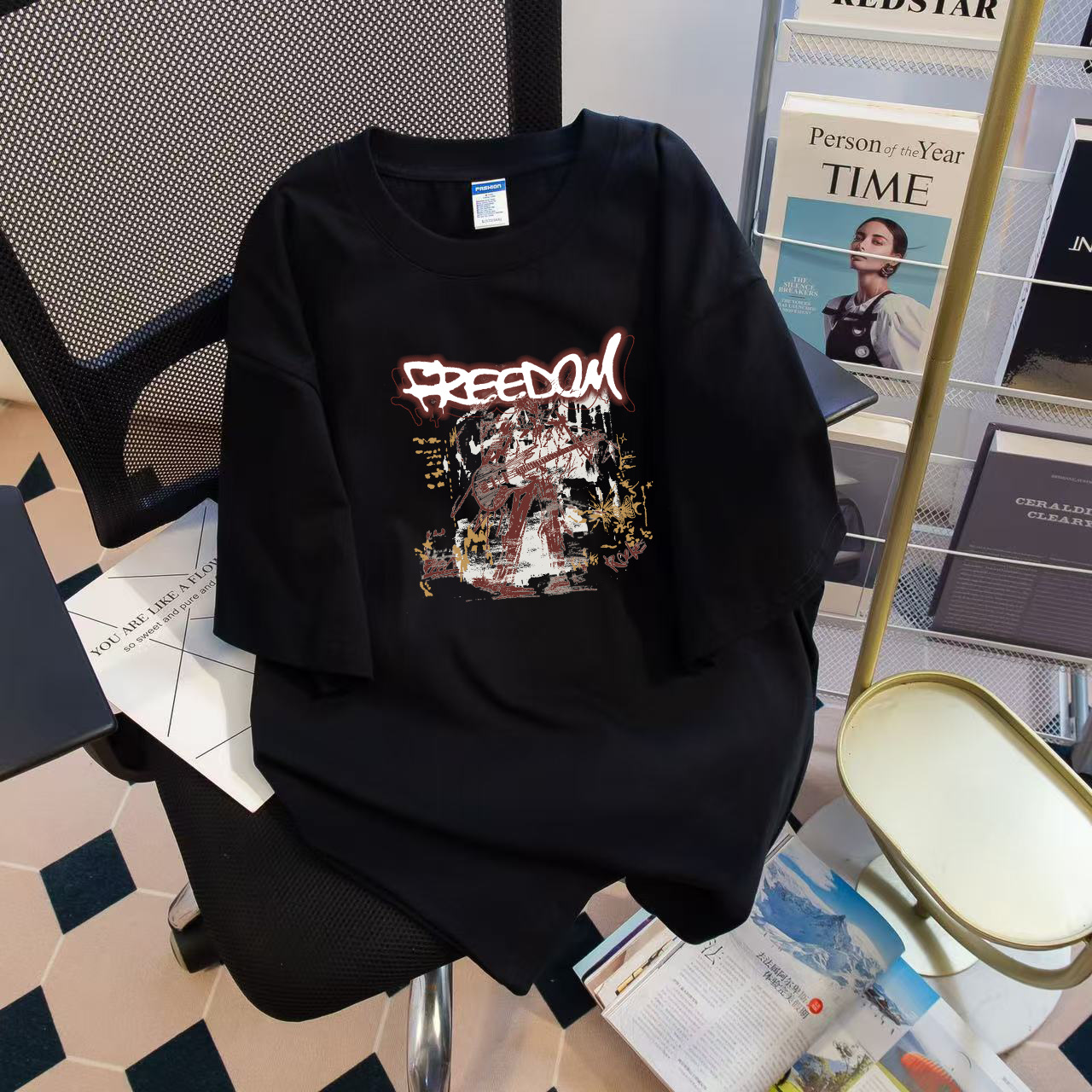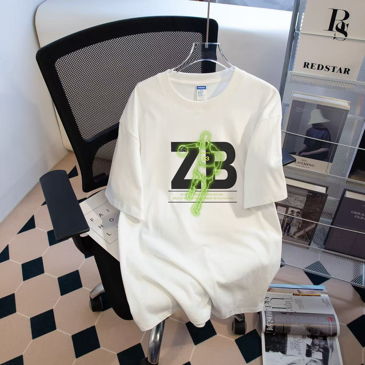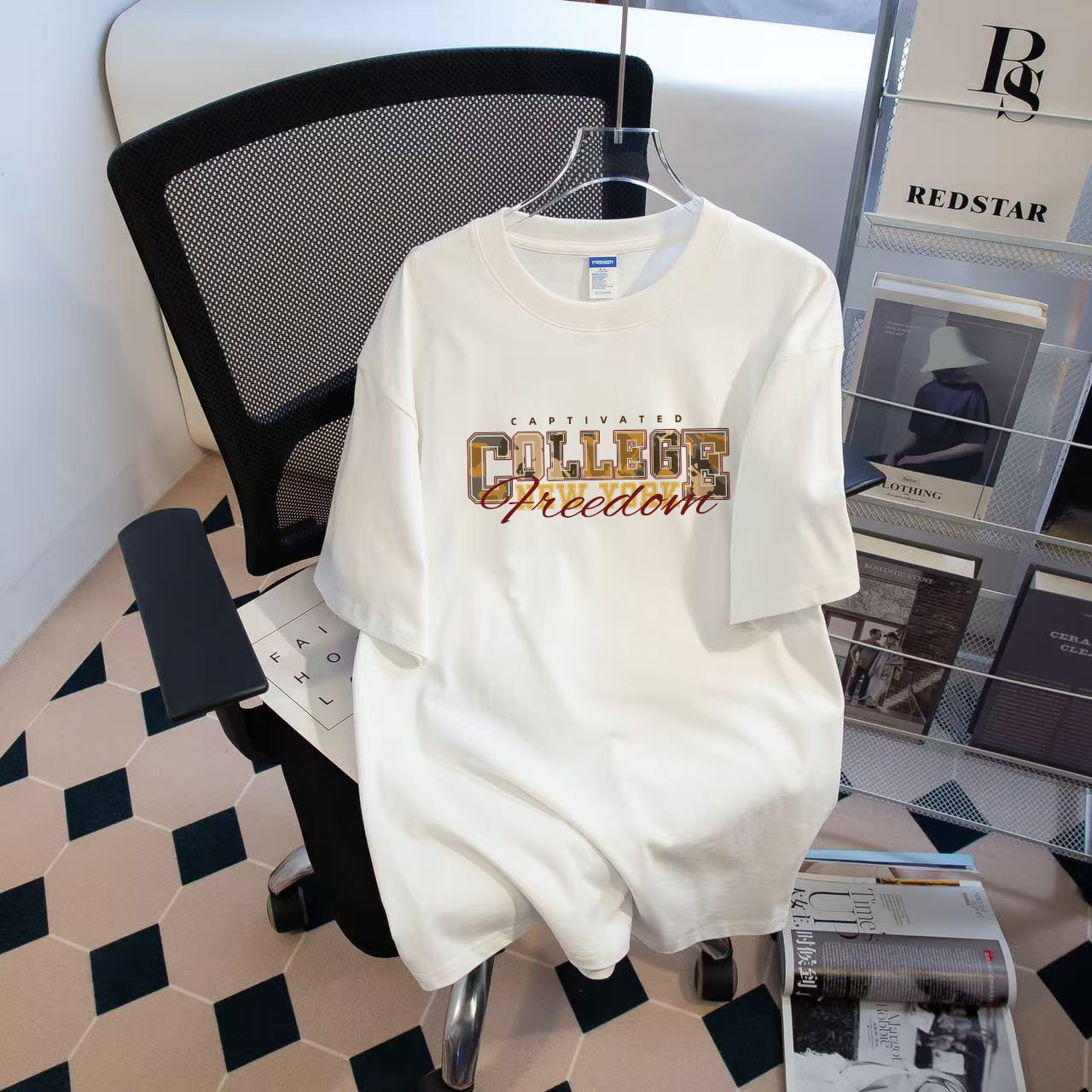 2025外贸夏季新款美式潮牌纯棉男装T恤运动休闲宽松短袖打底上衣