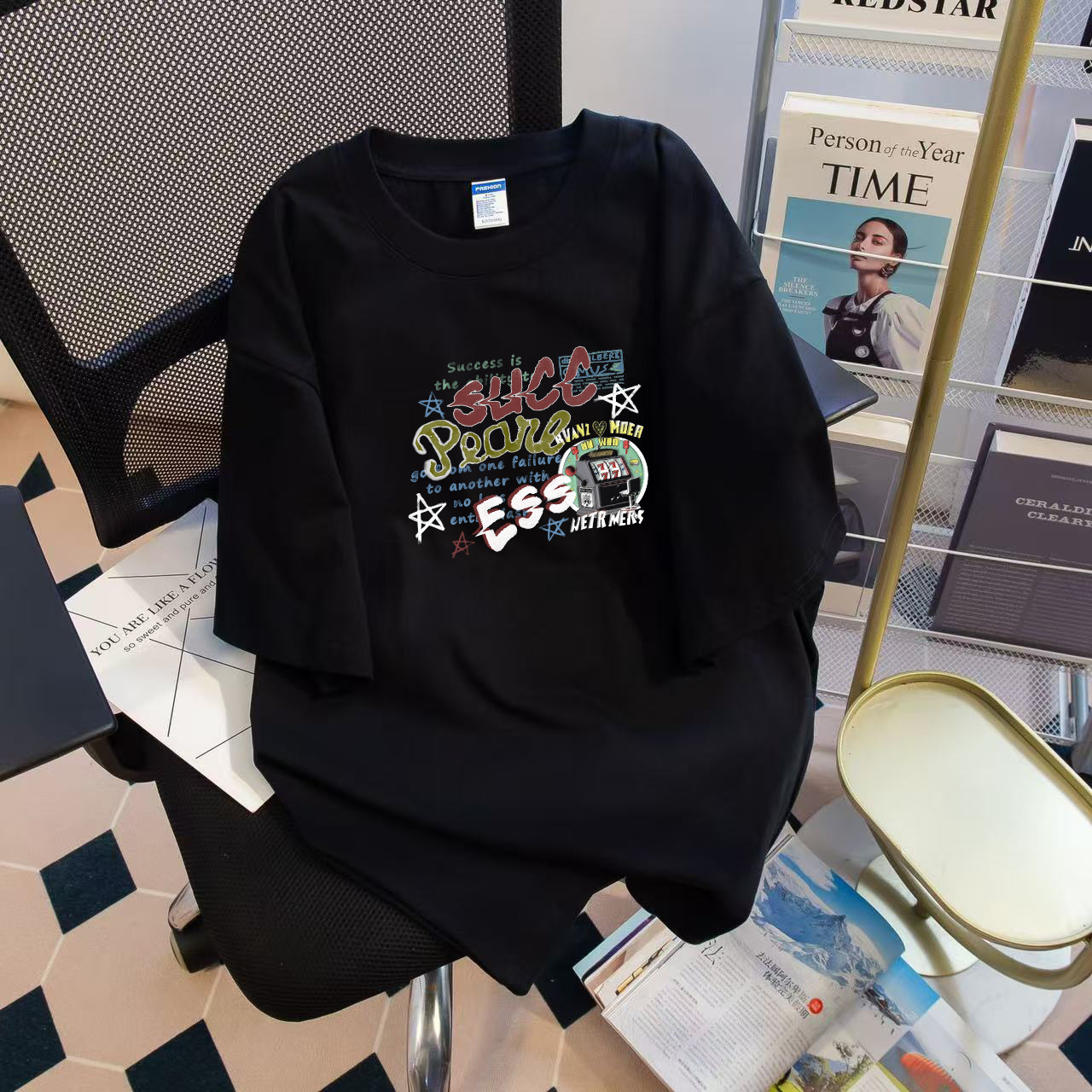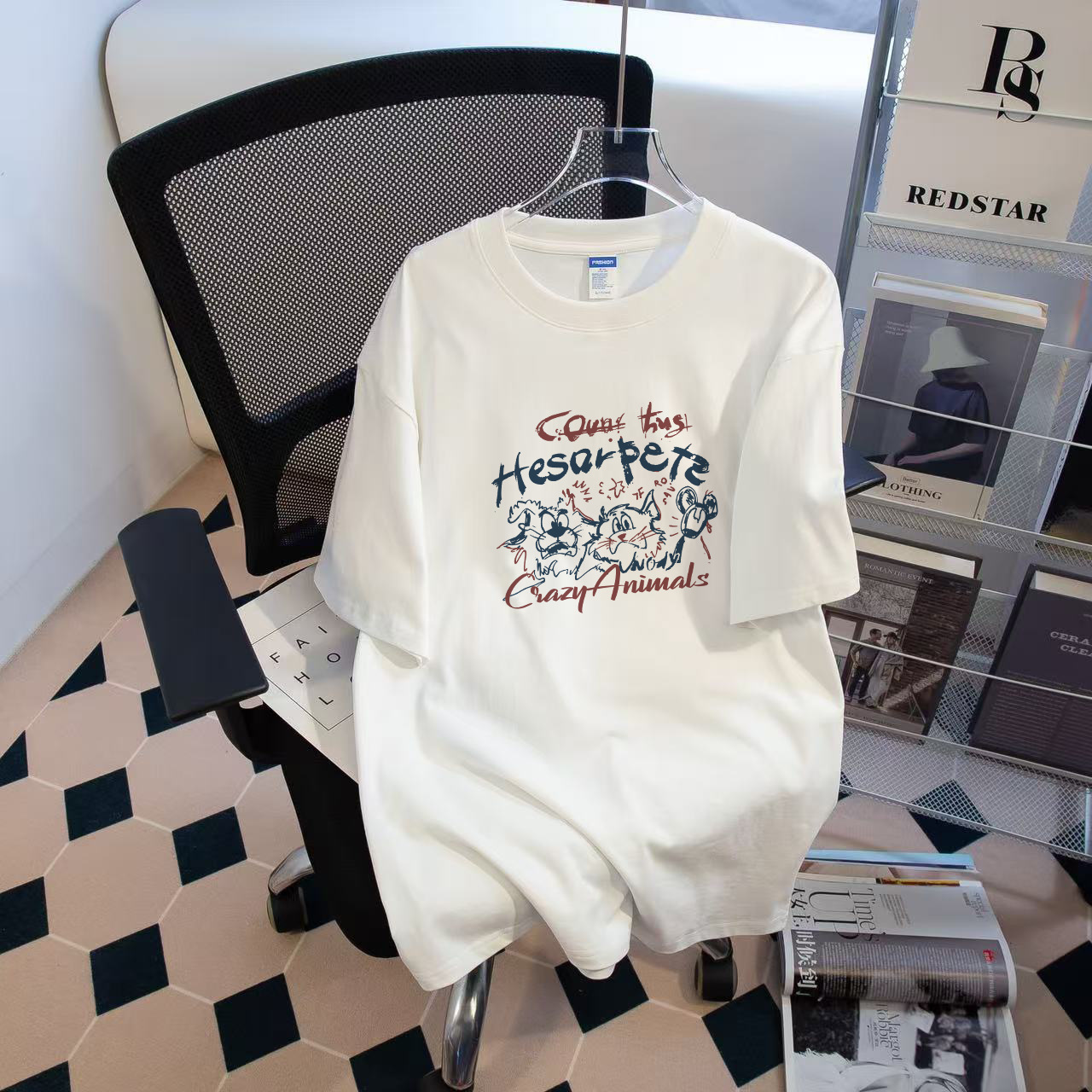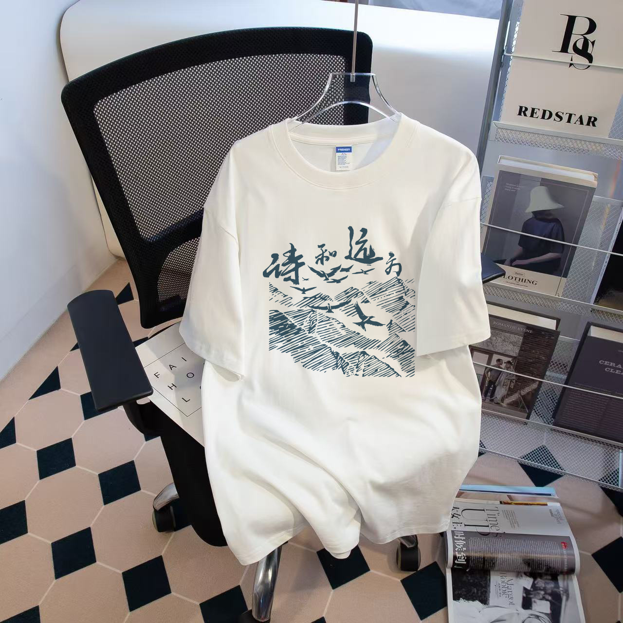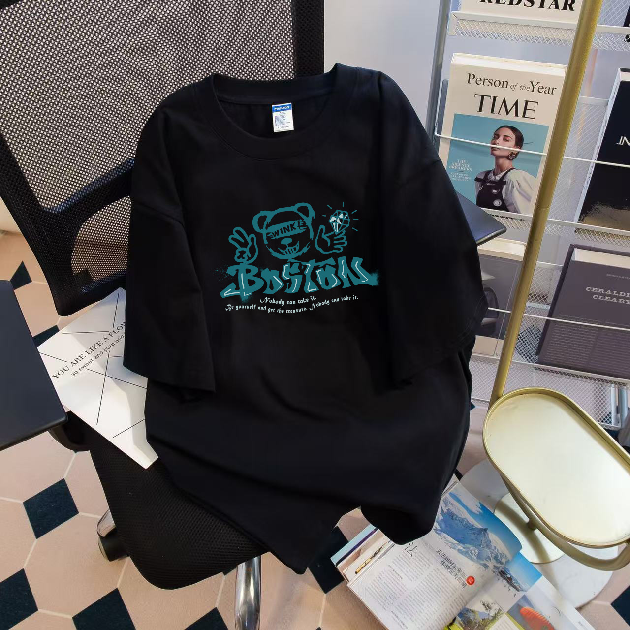 2025外贸夏季新款美式潮牌纯棉男装T恤运动休闲宽松短袖打底上衣