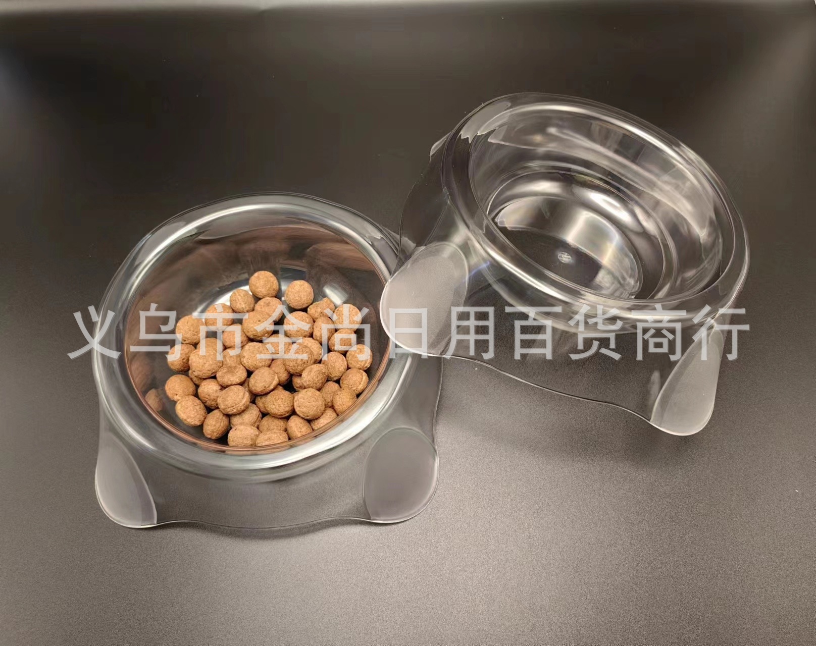 跨境轻奢新款透明单碗水猫碗狗碗可拆分不锈钢宠物碗高颜值ins风