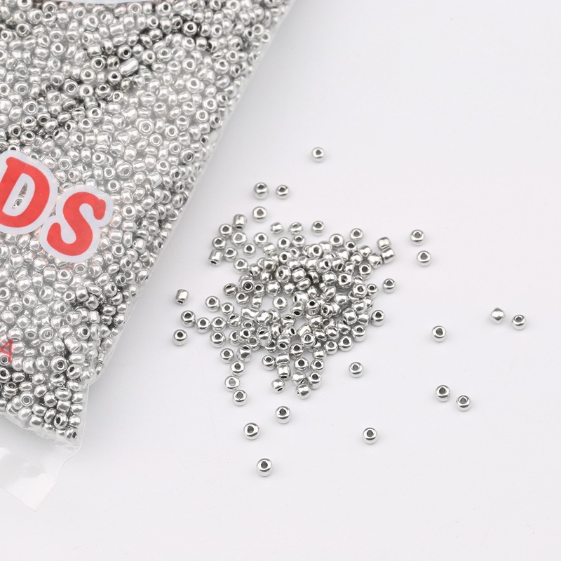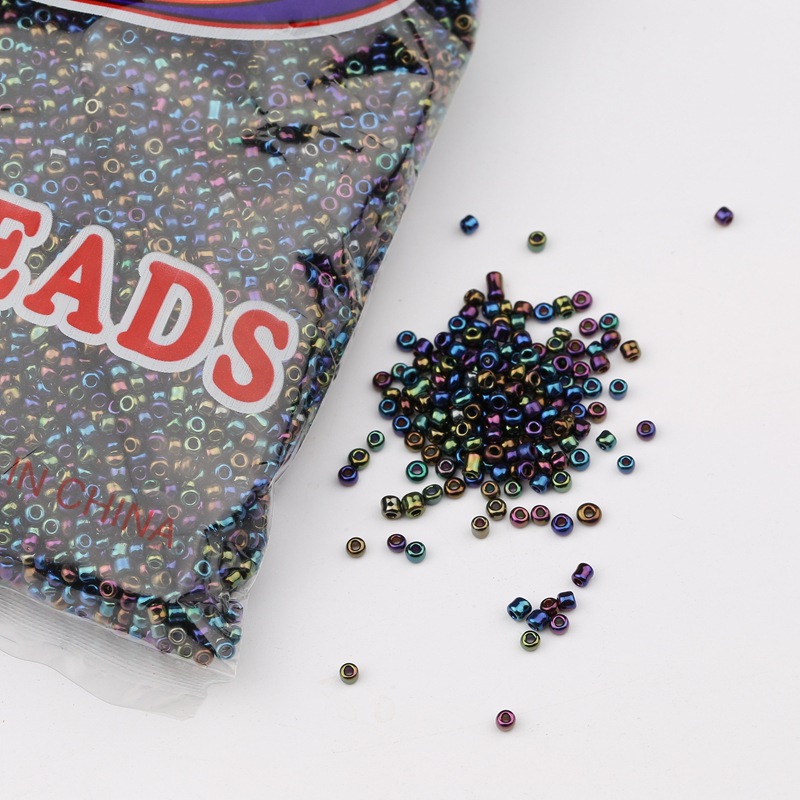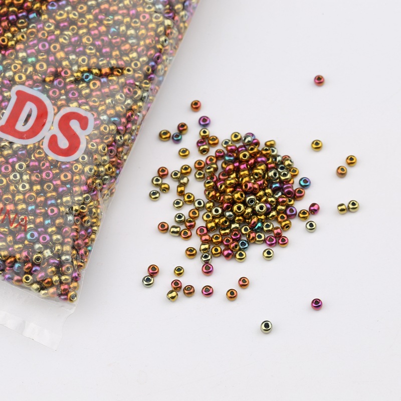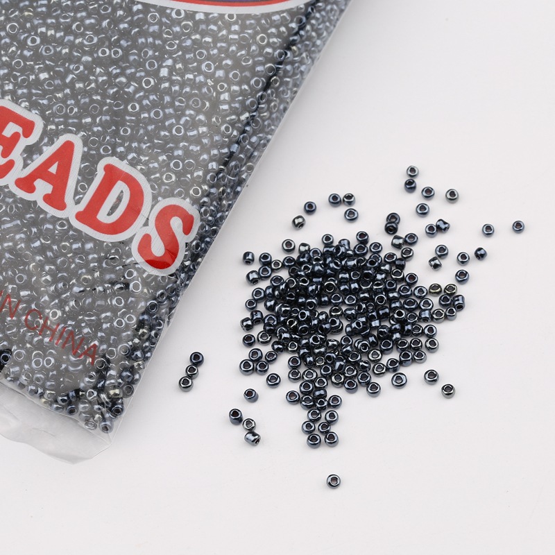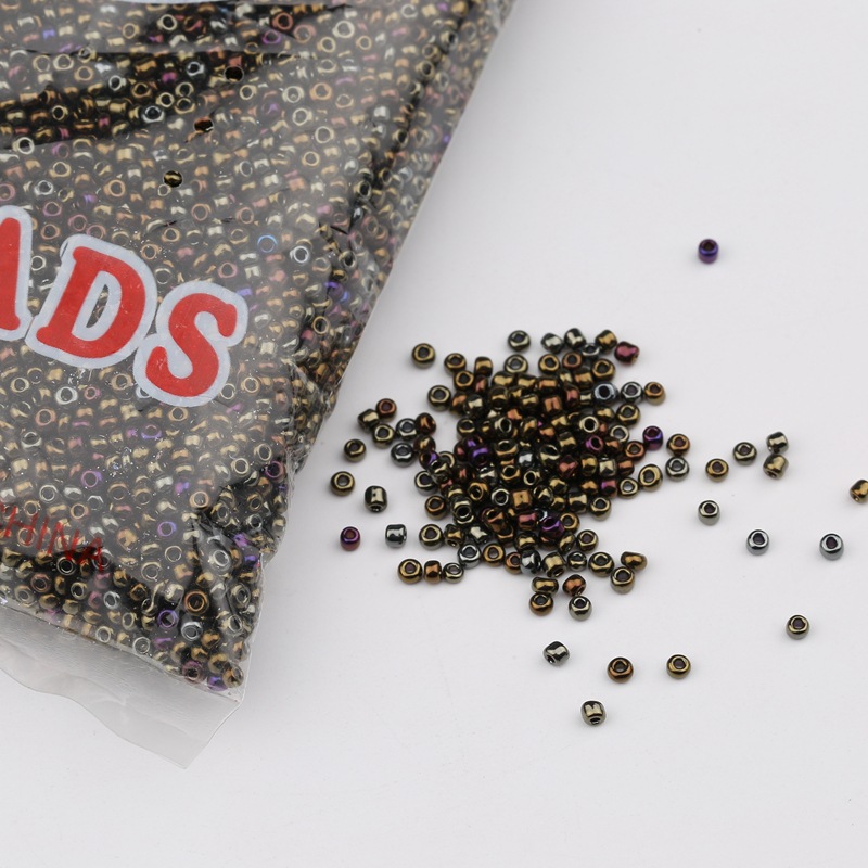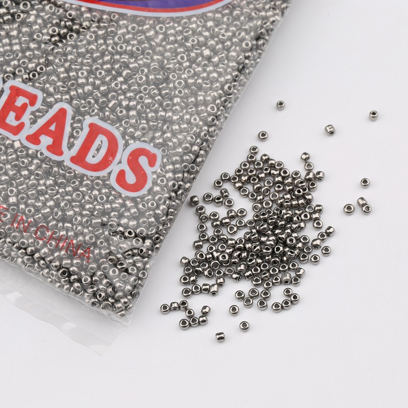 镀金镀银古铜抢黑黑胆色黑彩2mm玻璃米珠diy手工手缝服装辅料材料