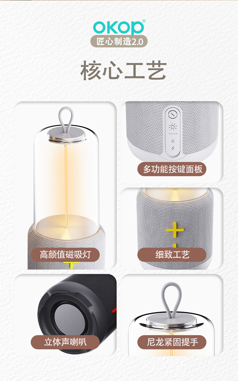KP-816亚克力磁吸灯户外迷你音响便携家用长续航高品质蓝牙音箱