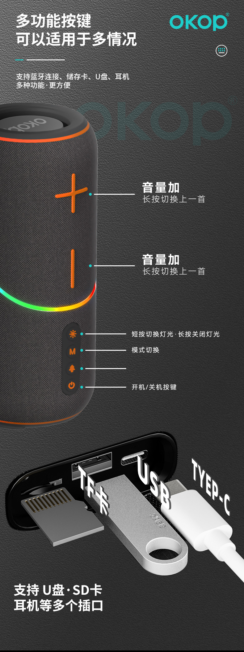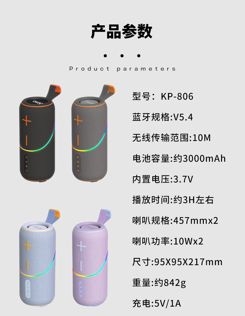 KP-806新款RGB炫彩灯光蓝牙音箱便携式手提清晰音质重低音音响