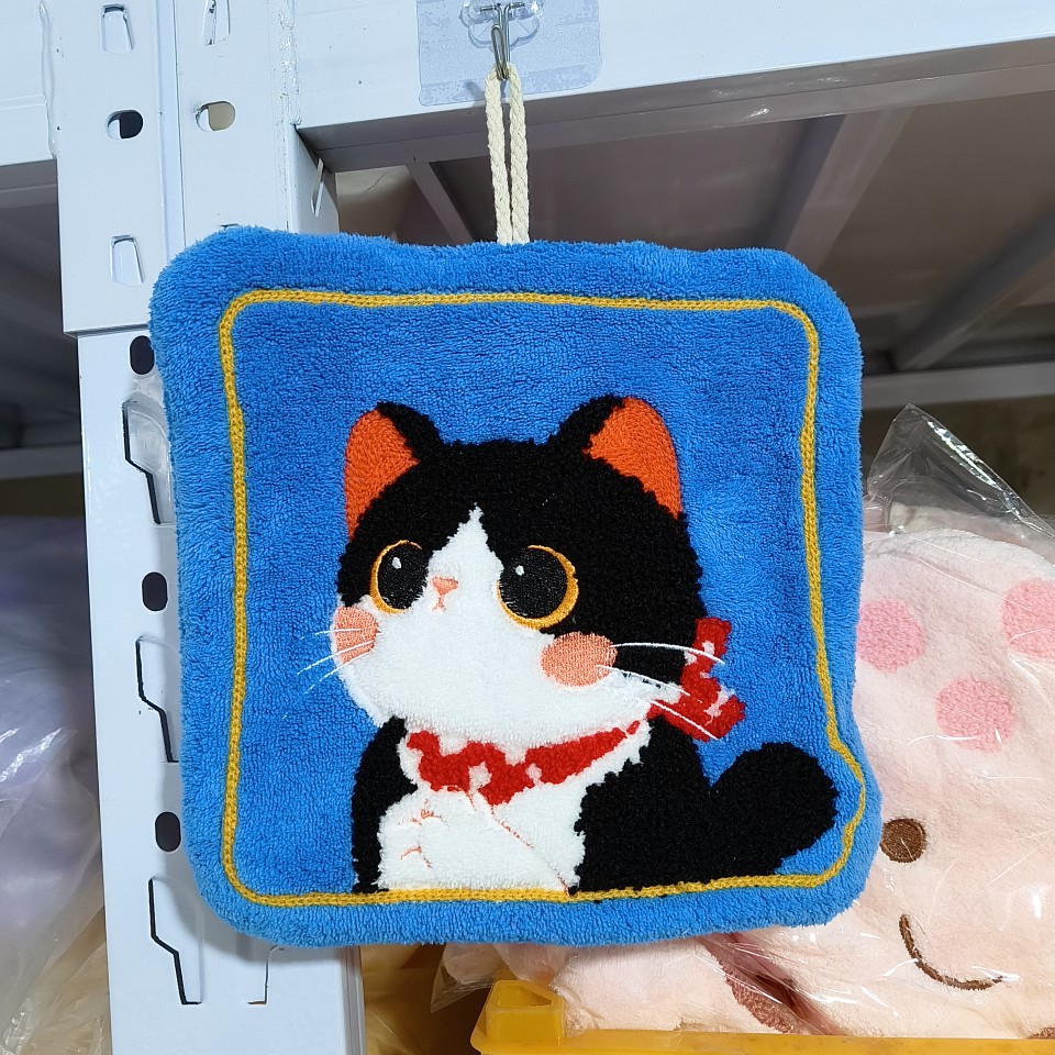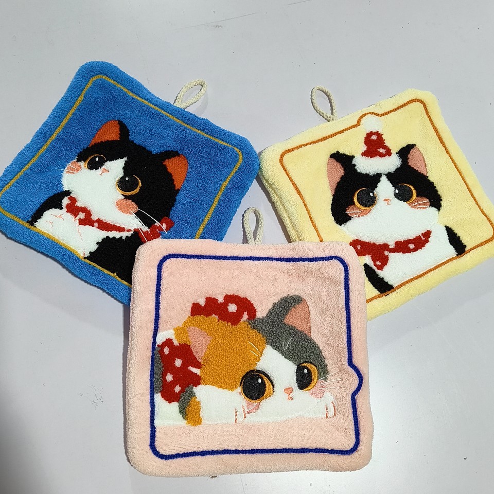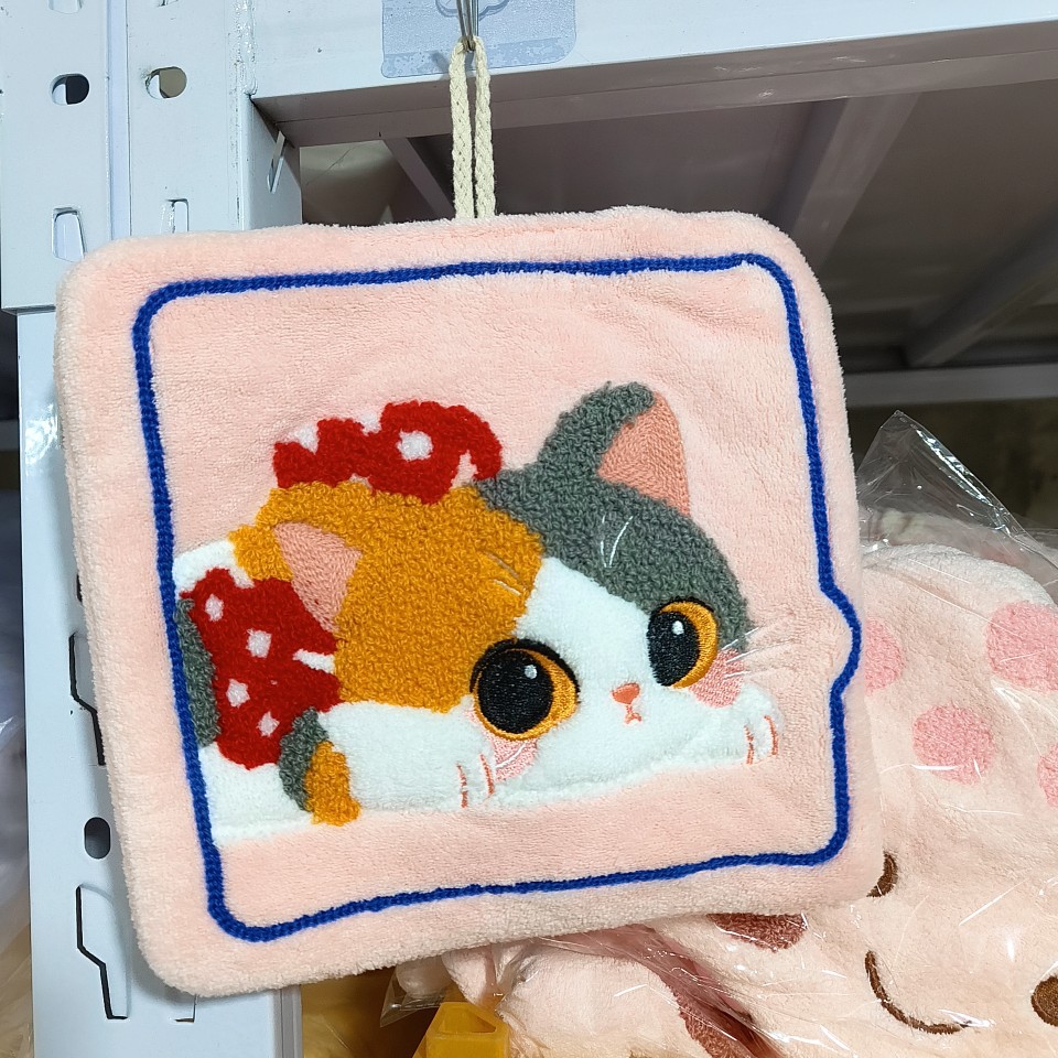 可爱猫咪挂式擦手巾吸水速干不掉毛厨房卫生间擦手毛巾儿童洗手巾