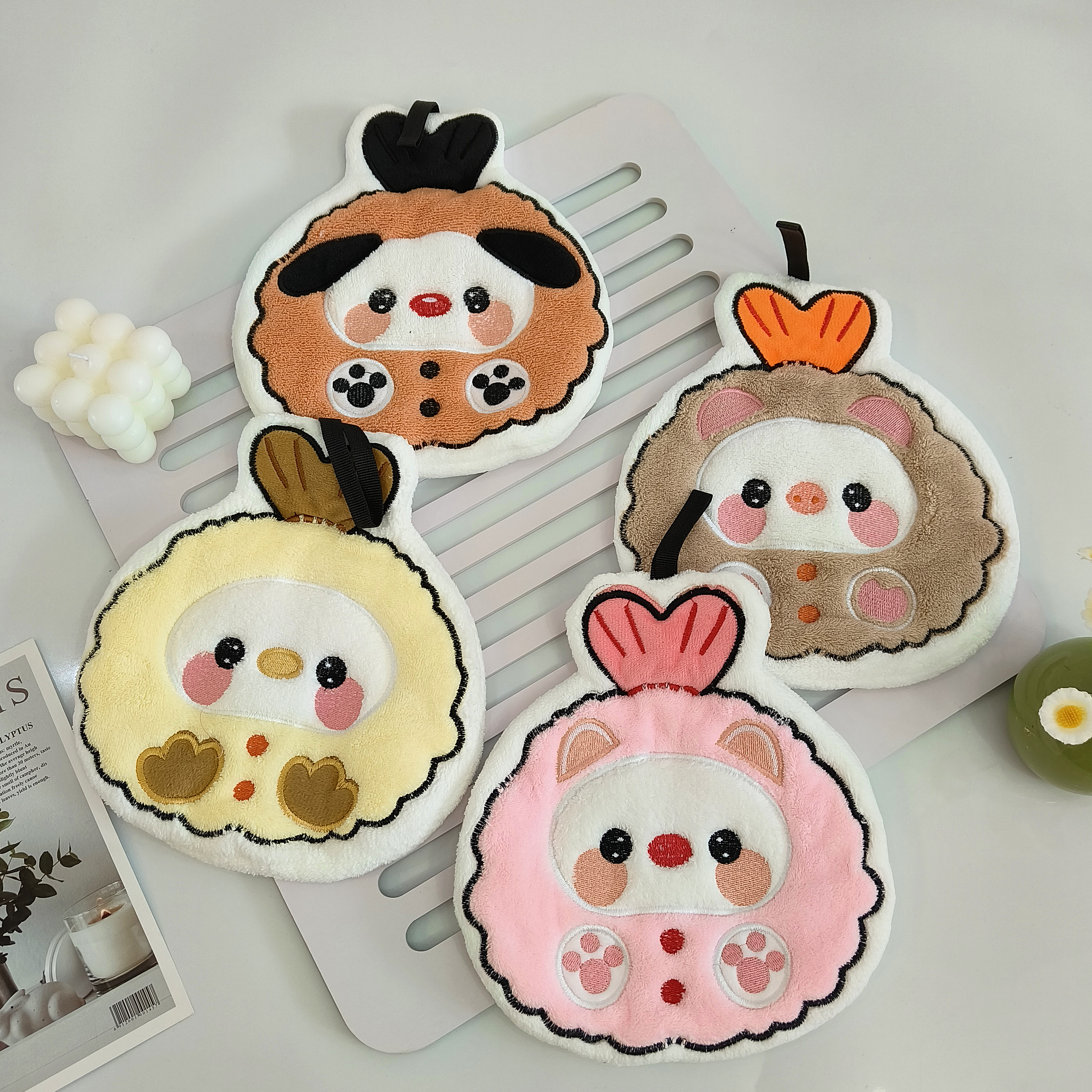 可爱擦手巾挂式吸水加厚卫生间卡通擦手帕毛巾洗手小方巾厨房抹布
