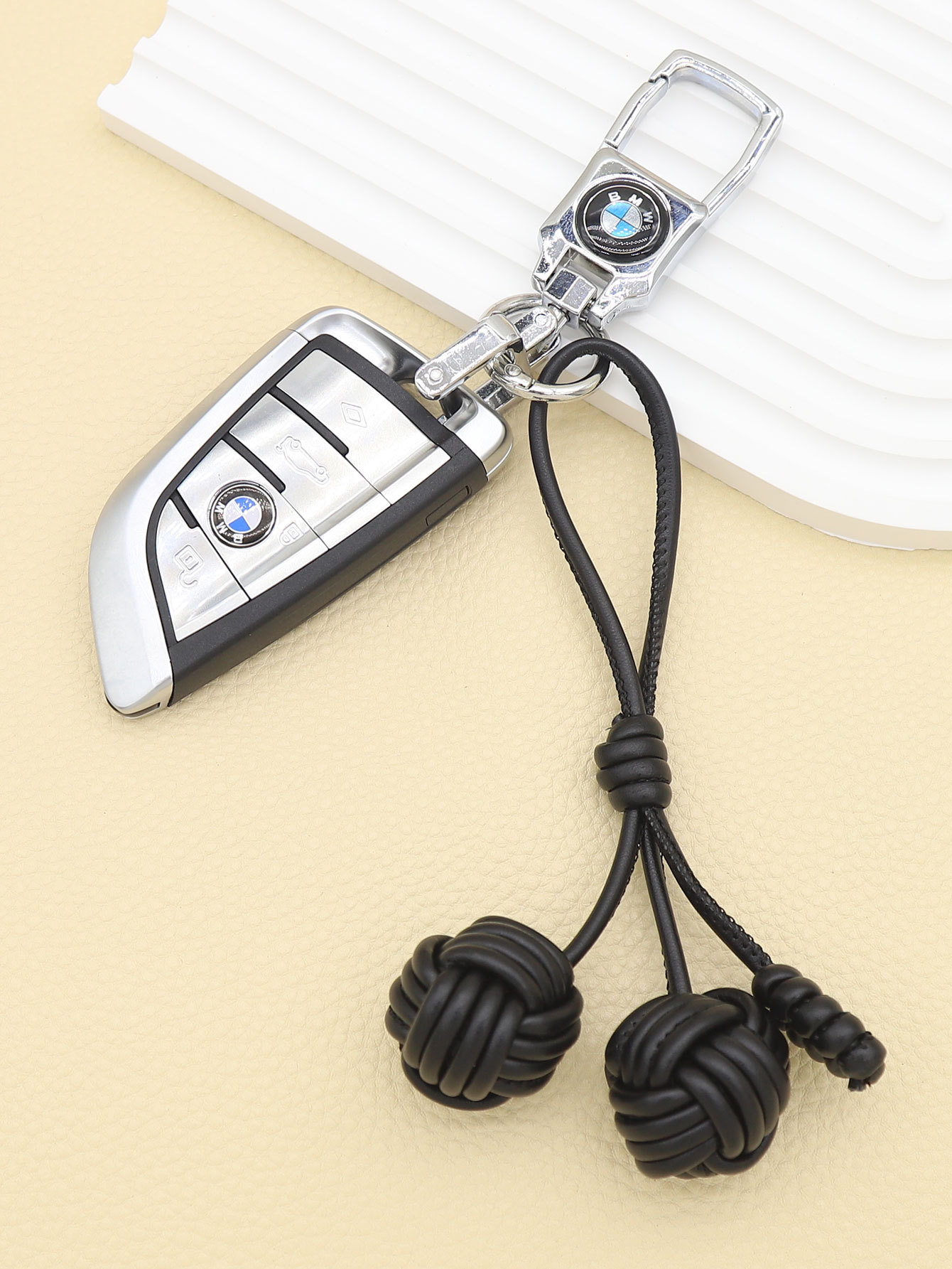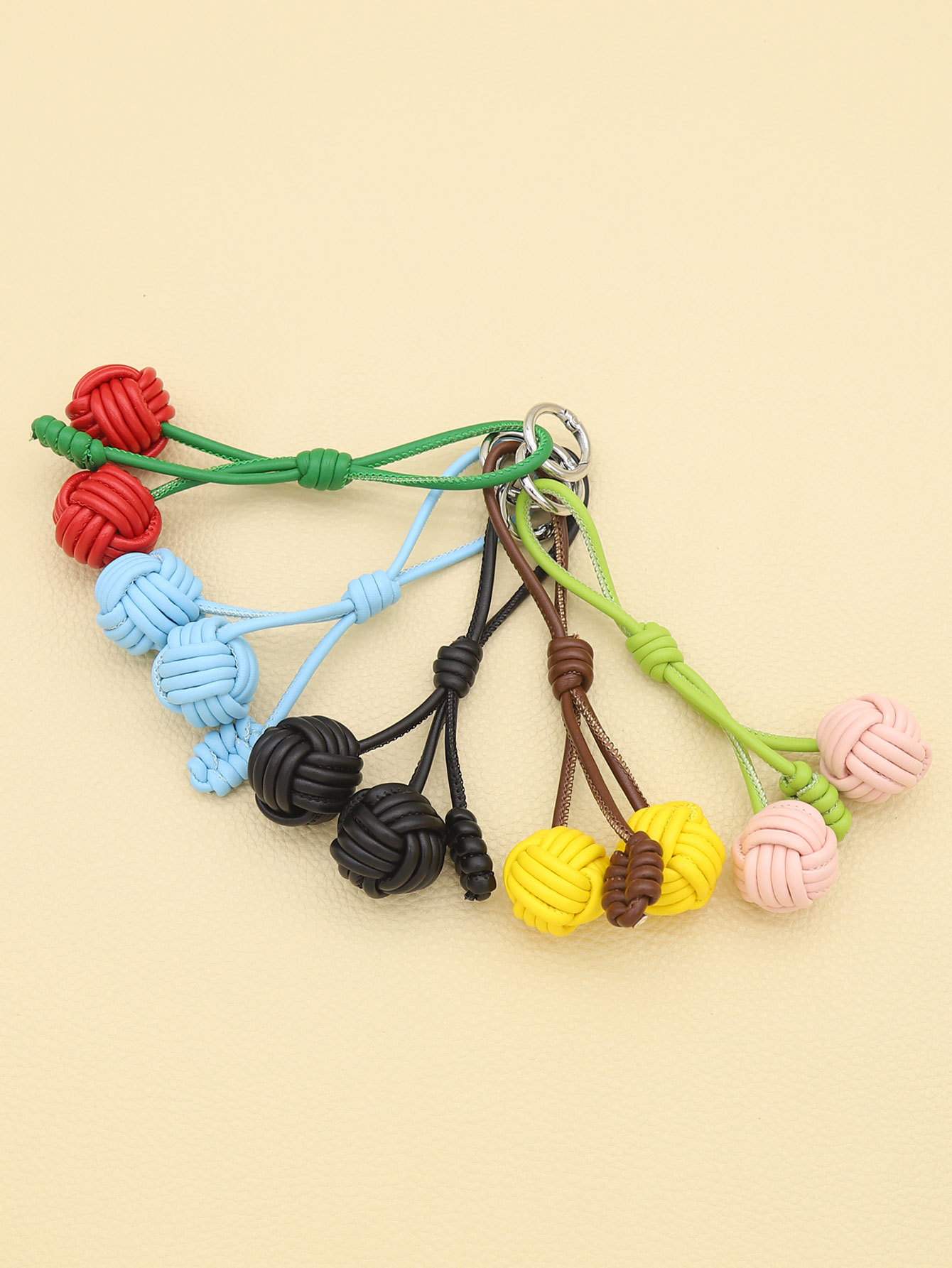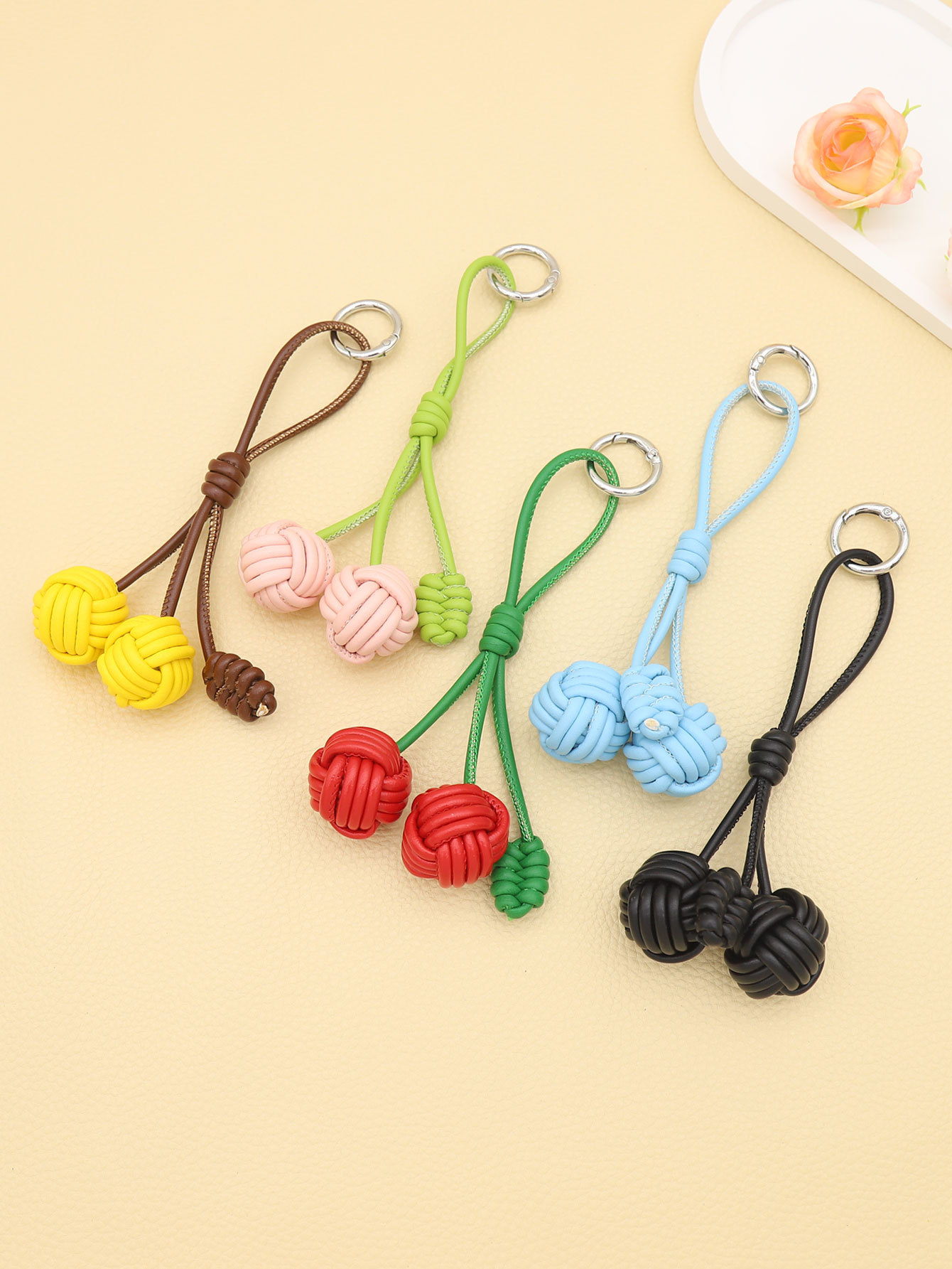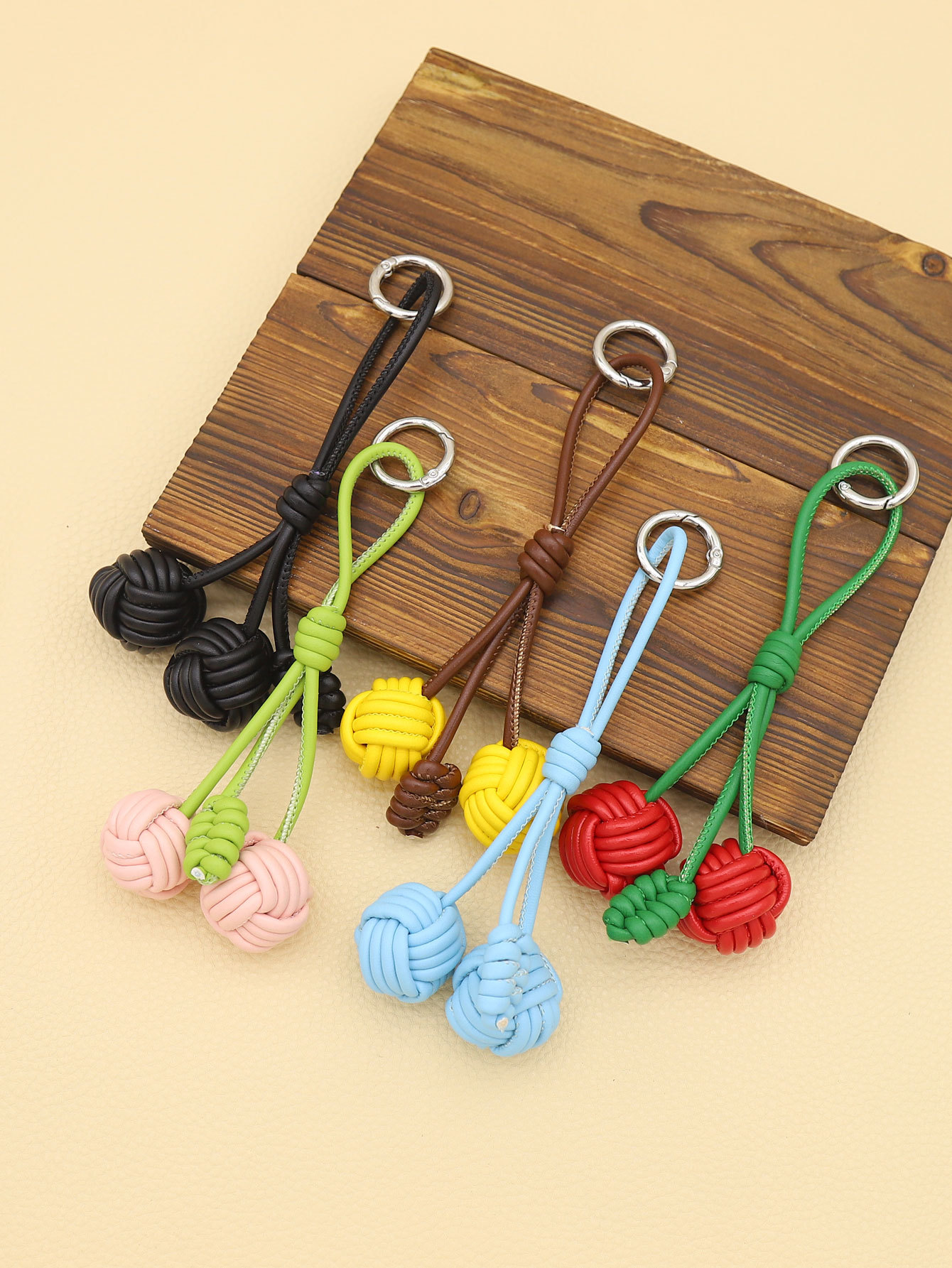 新款纯手工编织PU皮质猴拳结双球形包挂钥匙扣配饰批发跨境亚马逊