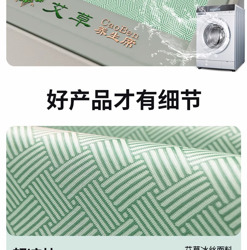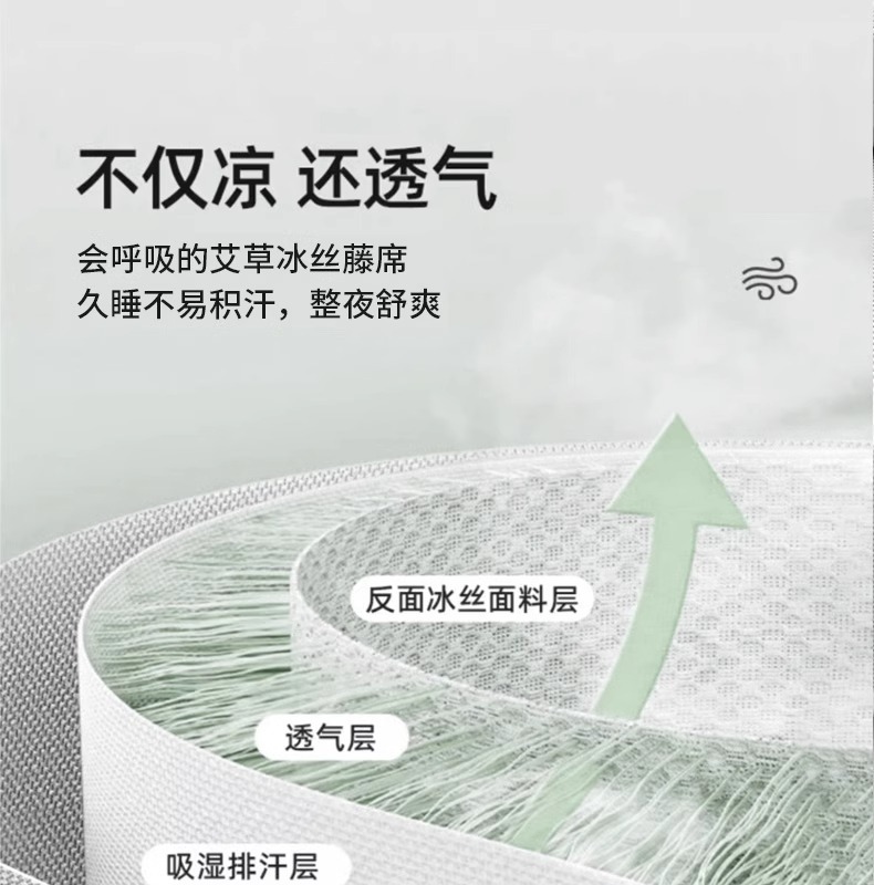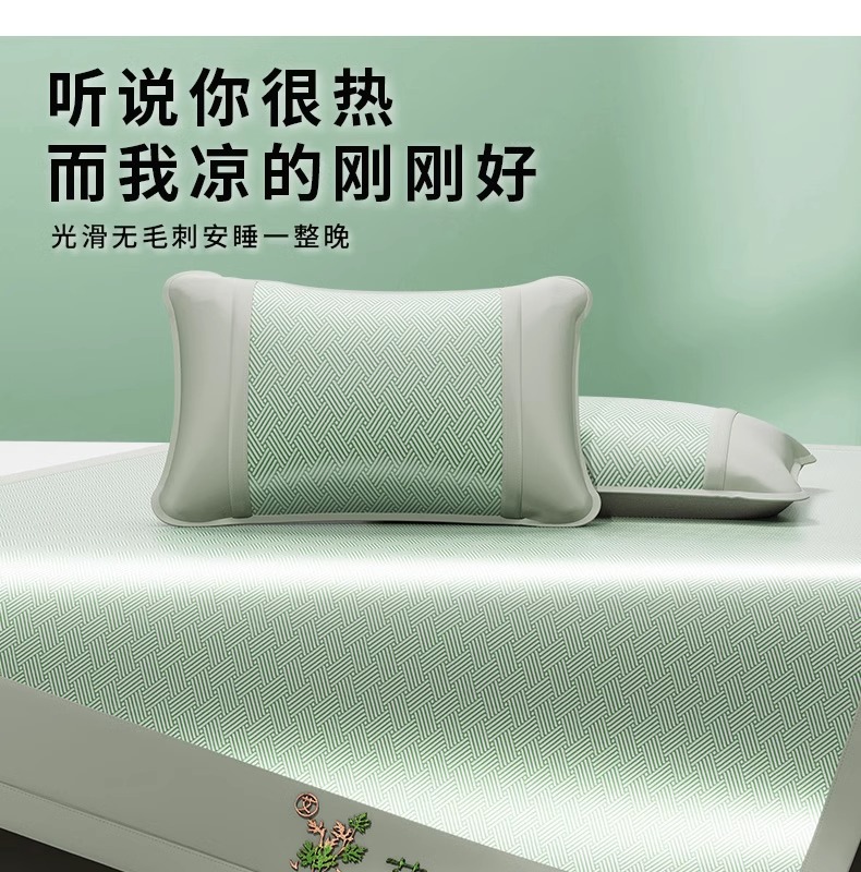 艾草冰丝凉席家用可折叠席夏季空调软席凉席三件套学生宿舍冰丝垫