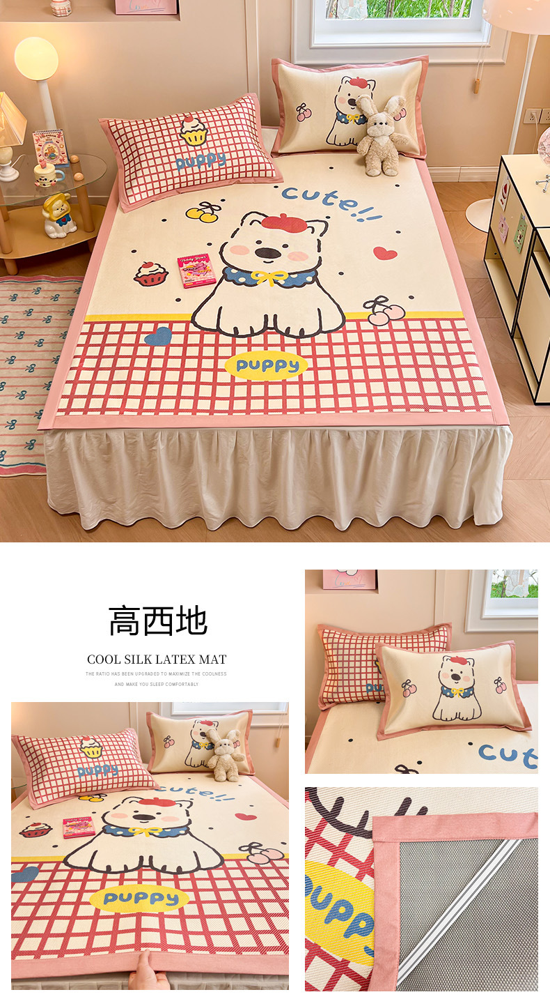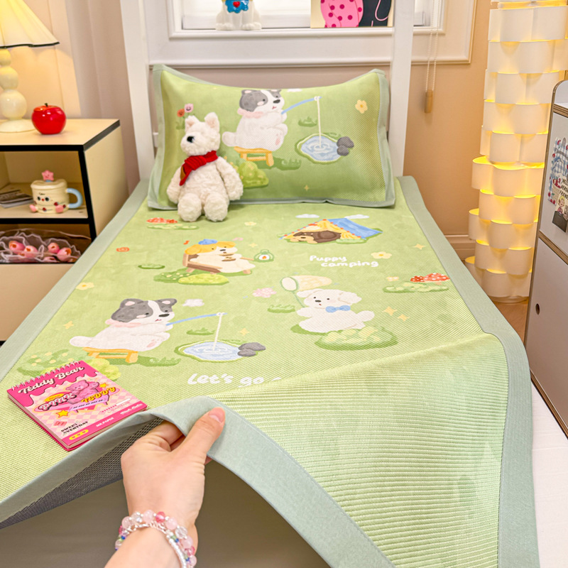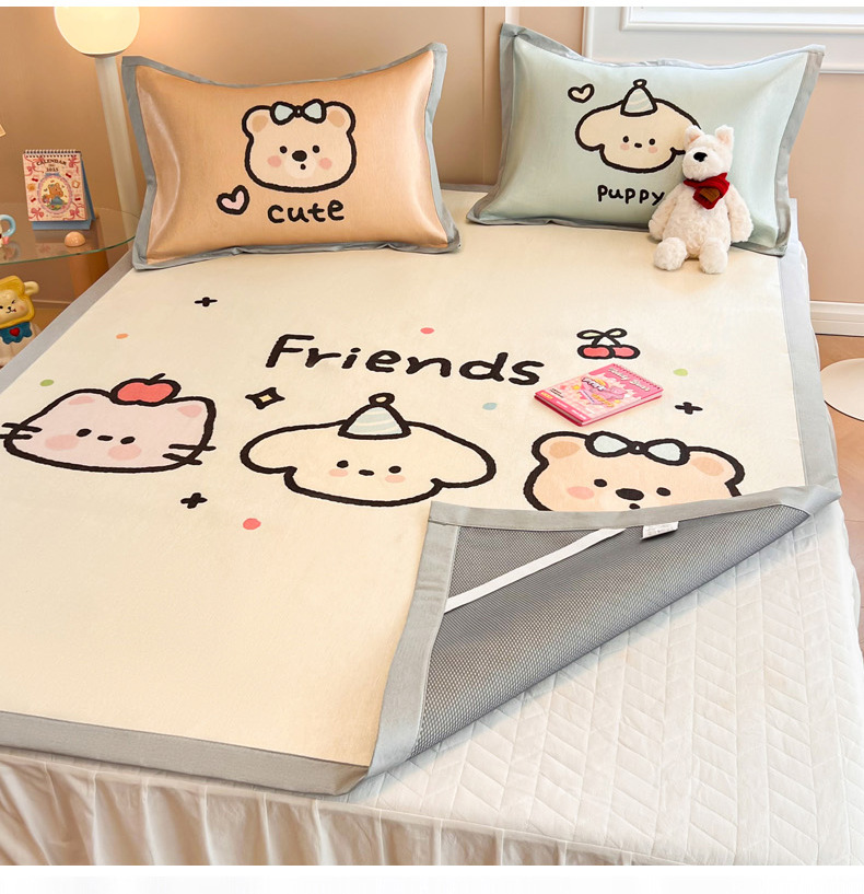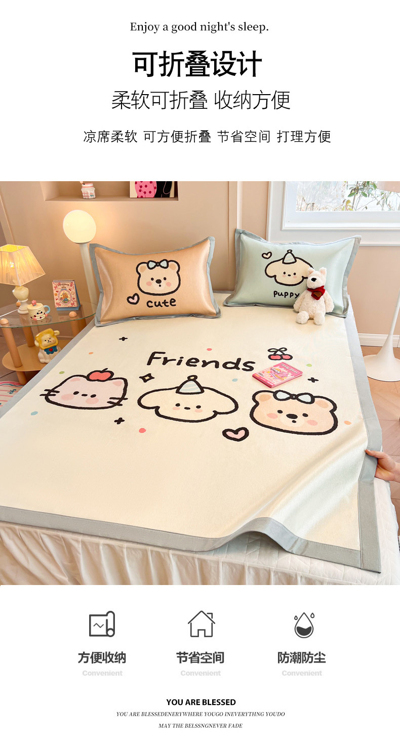 大版小清新卡通冰丝席家用床上用品三件套学生宿舍可爱凉席两件套
