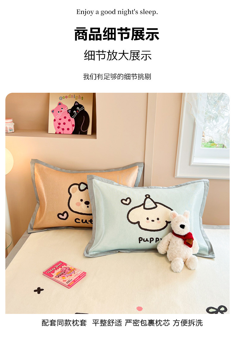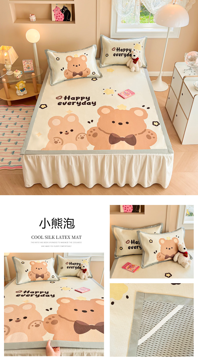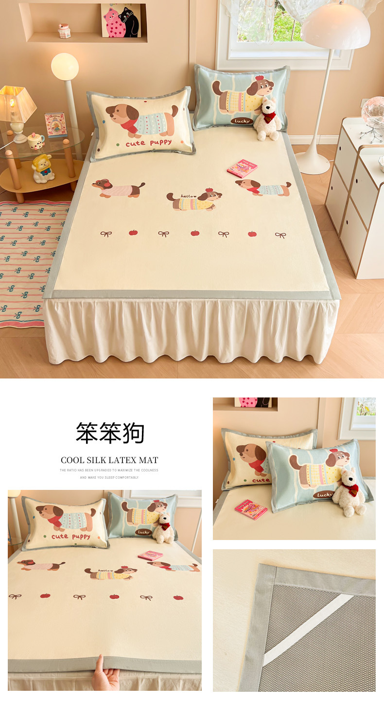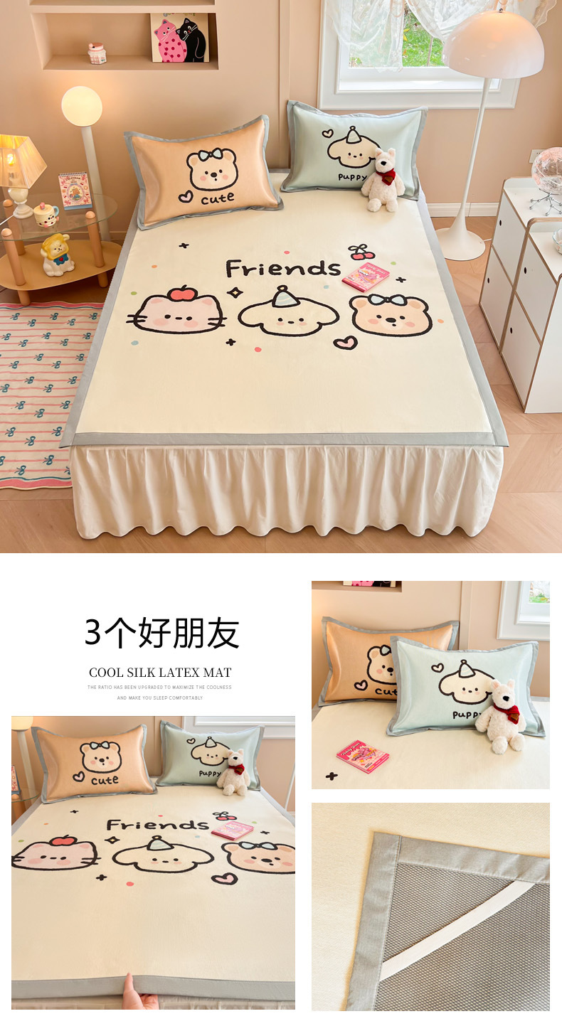大版小清新卡通冰丝席家用床上用品三件套学生宿舍可爱凉席两件套