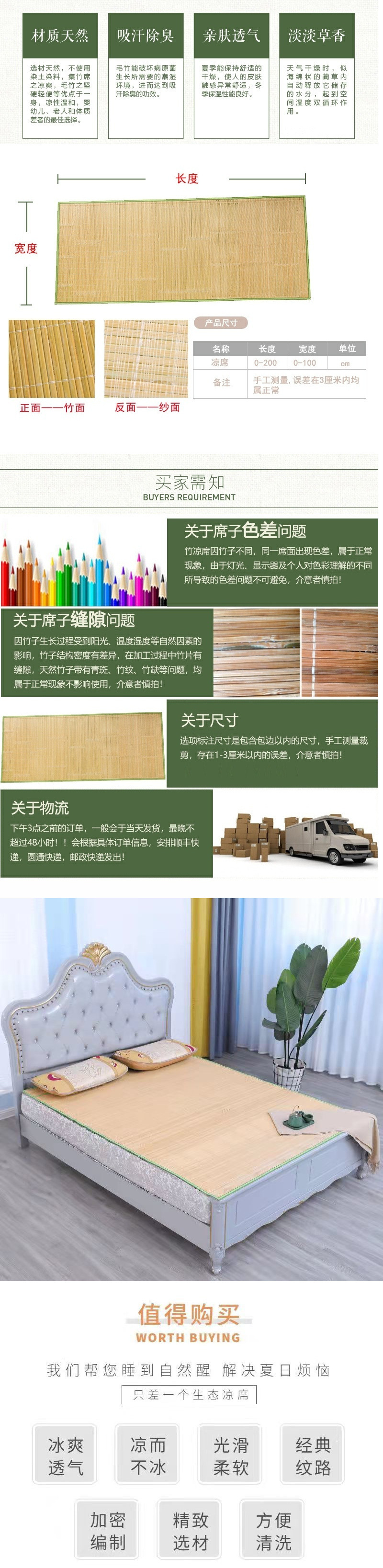 竹席凉席1.2米学生宿舍席子夏季1.5米家用1.8米加厚冰丝单人冰席