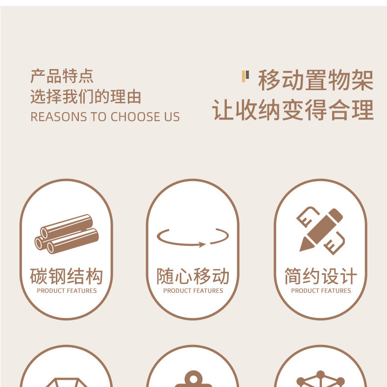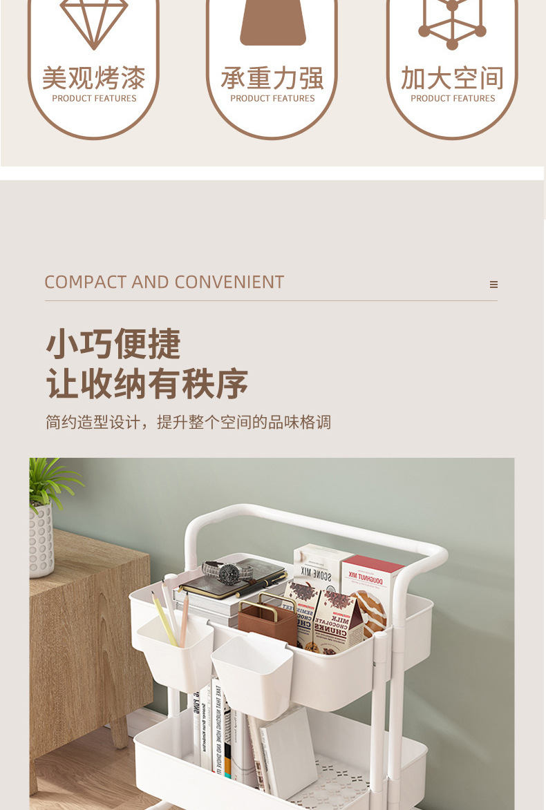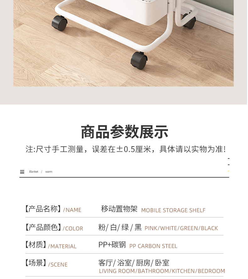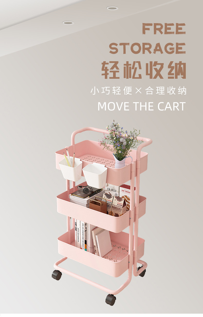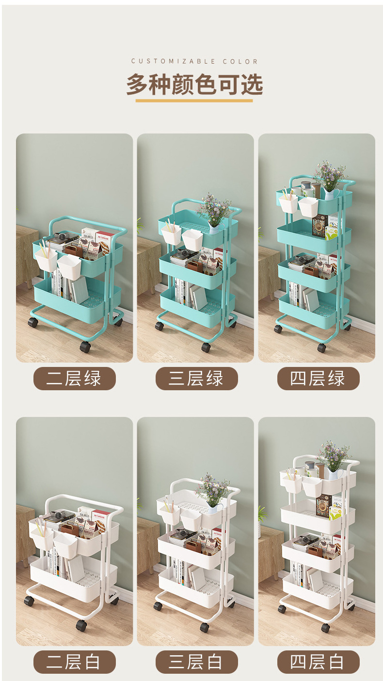 可移动置物架厨房储物架客厅卧室带轮子可移动收纳车小推车置物架