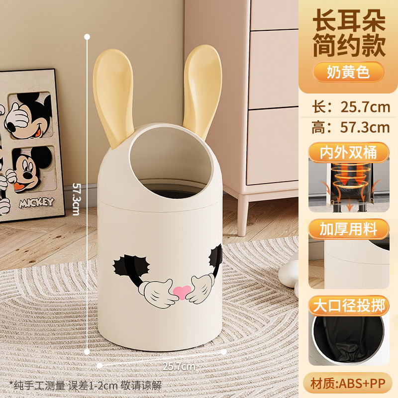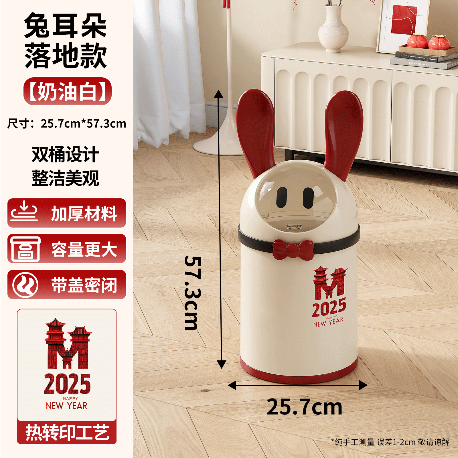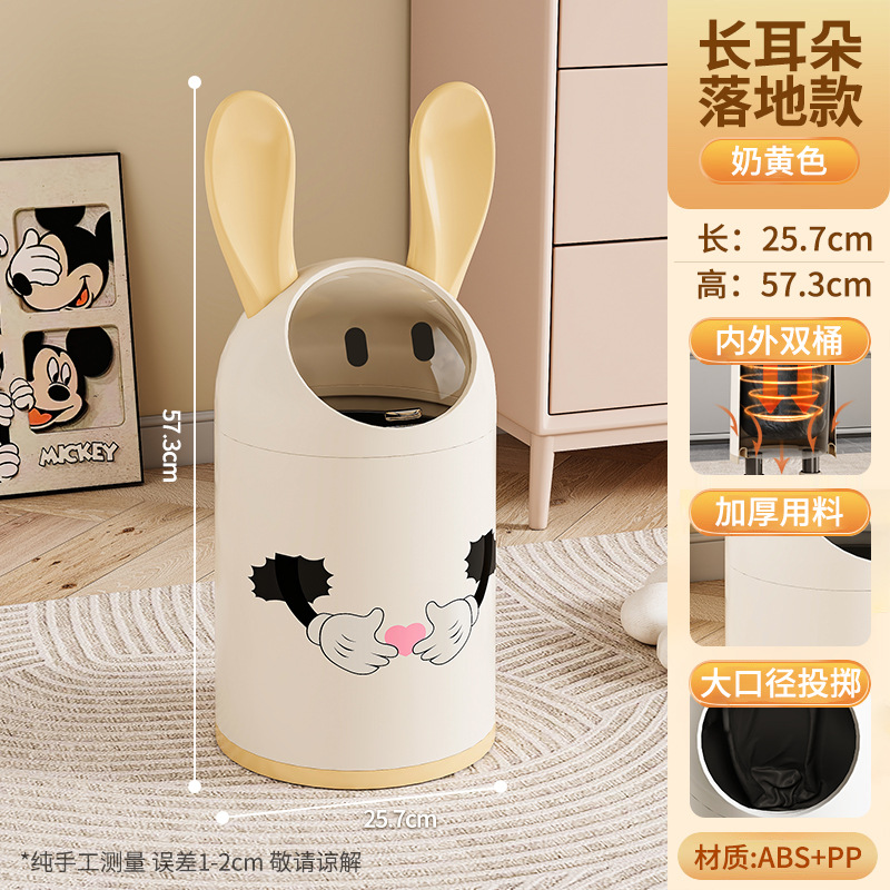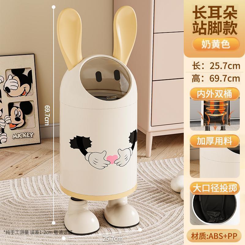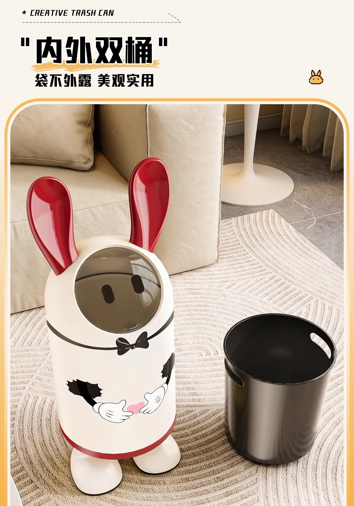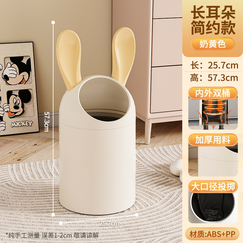 创意卡通家用翻盖垃圾桶高颜值兔耳朵 厨房客厅网红双桶带盖纸篓