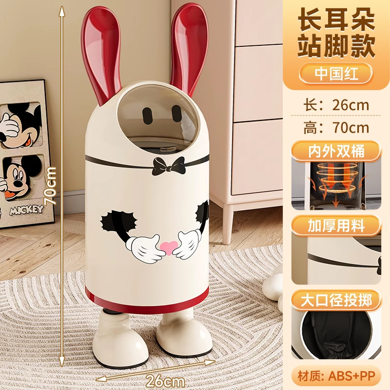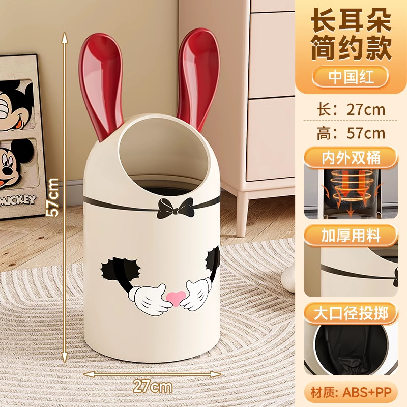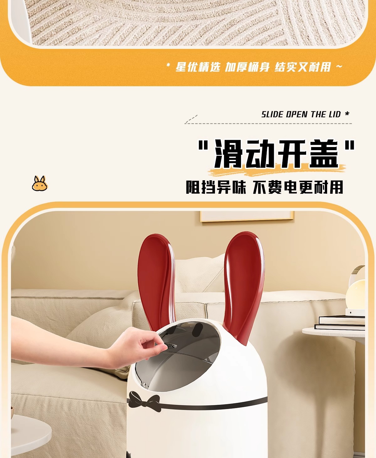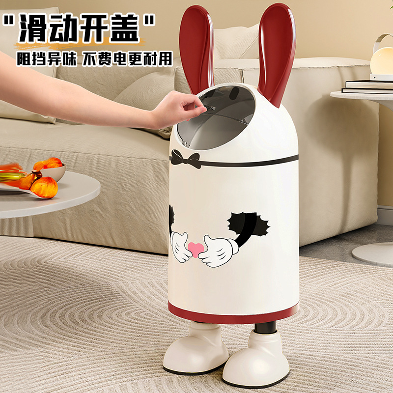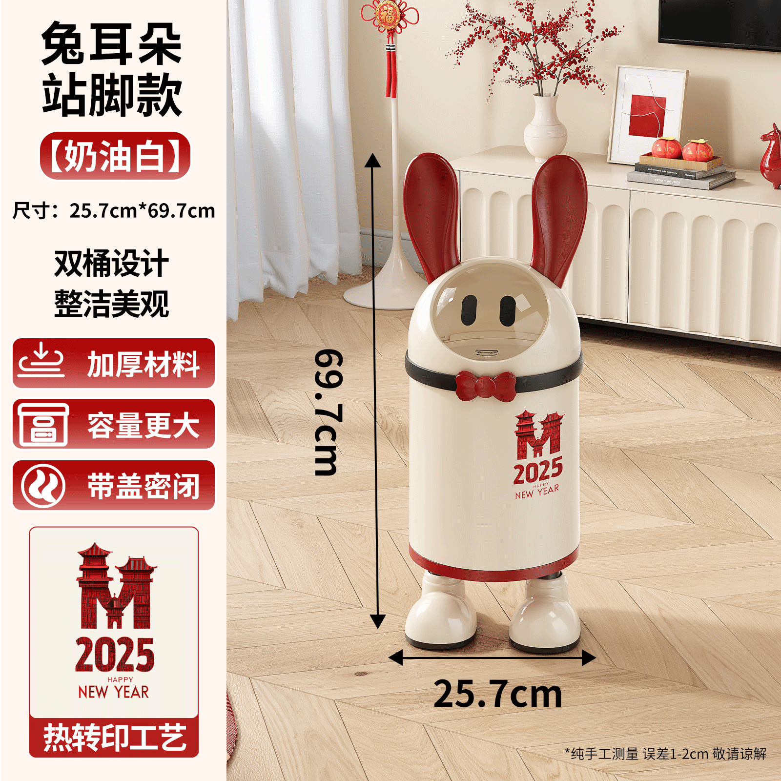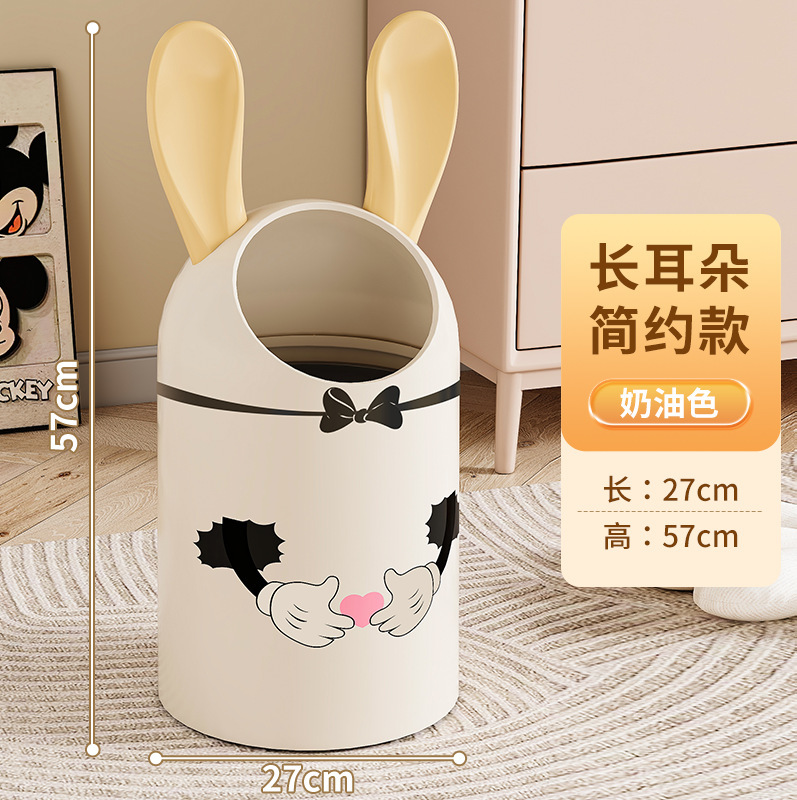 创意卡通家用翻盖垃圾桶高颜值兔耳朵 厨房客厅网红双桶带盖纸篓