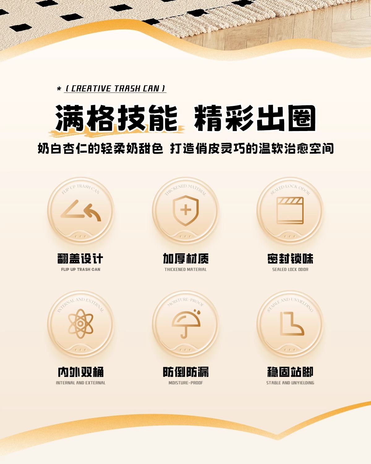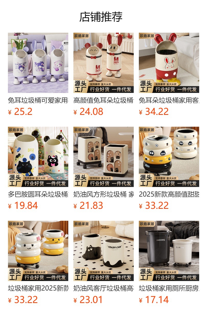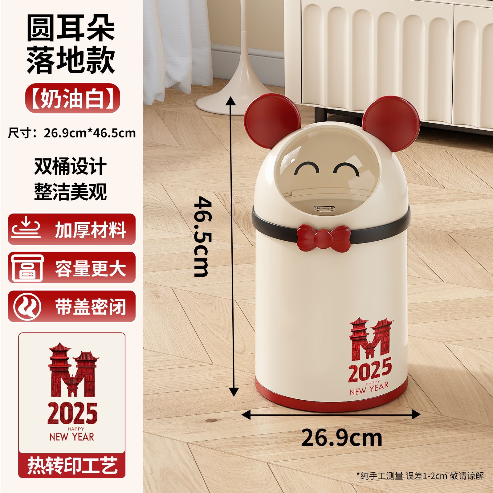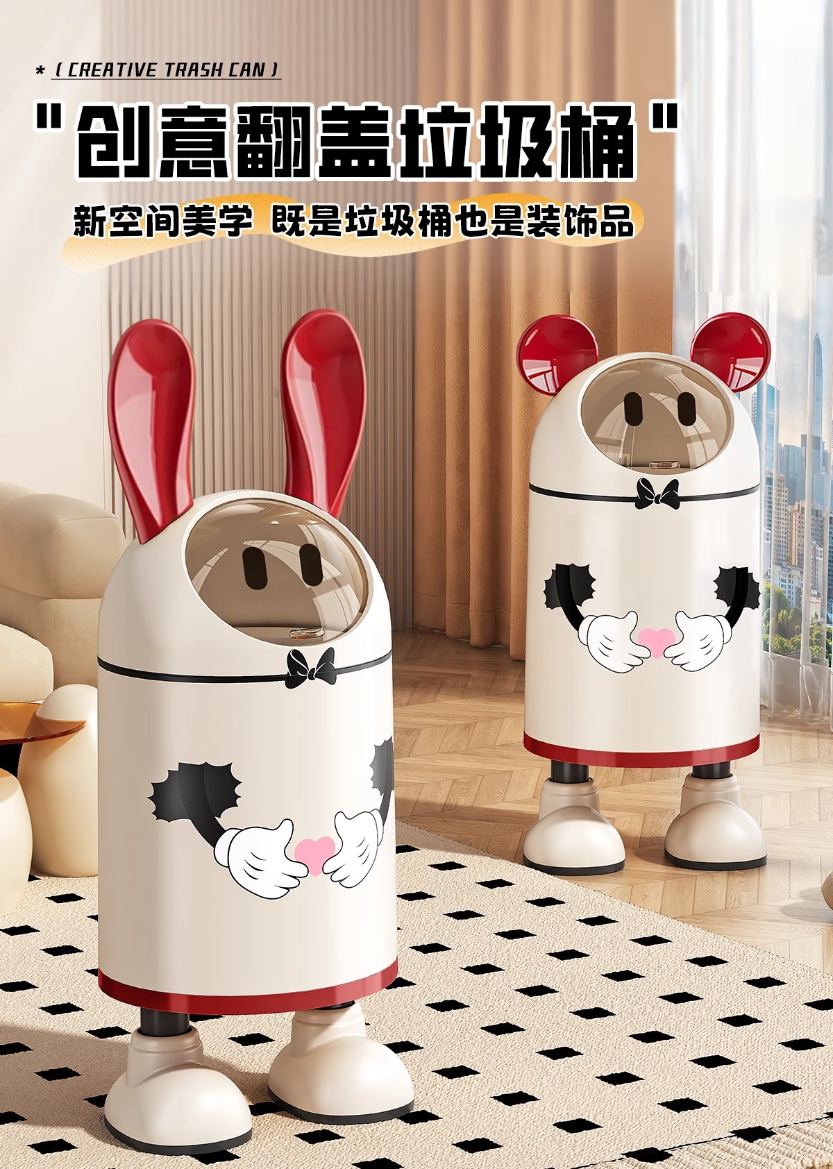 创意卡通家用翻盖垃圾桶高颜值兔耳朵 厨房客厅网红双桶带盖纸篓