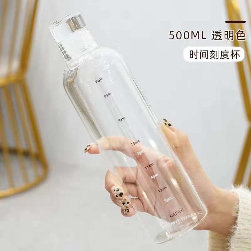时间刻度塑料水杯子女高颜值ins风透明便携大容量果汁随身喝水杯