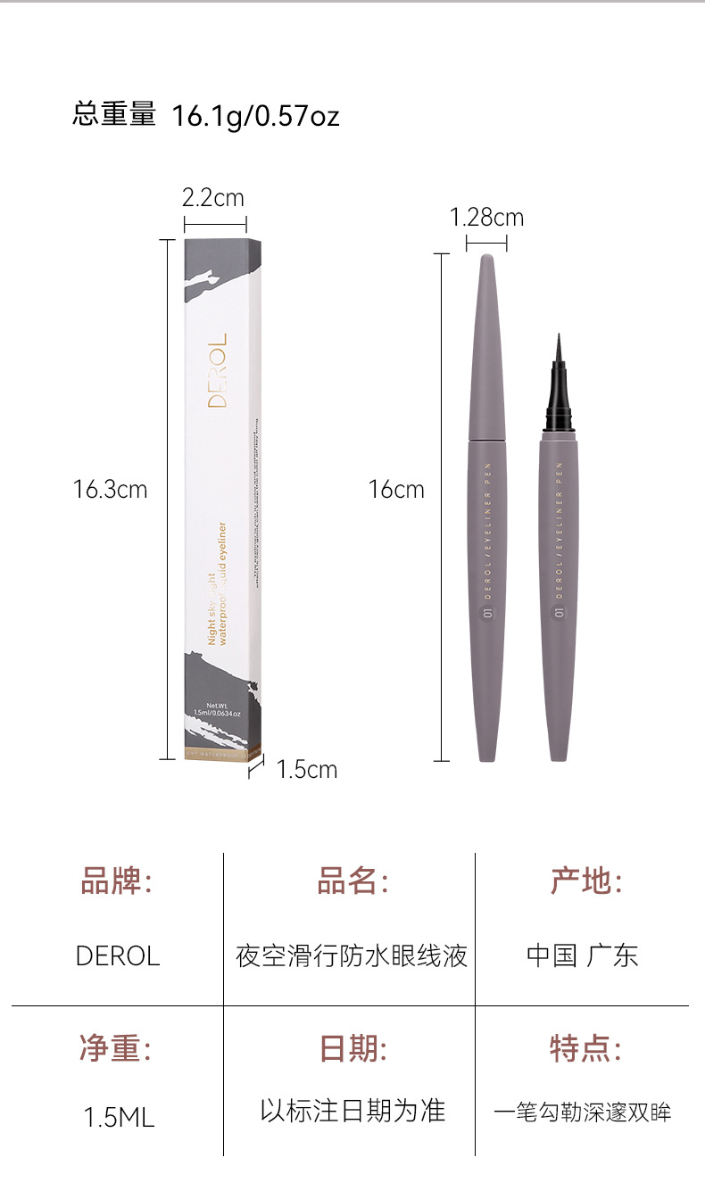 跨境DEROL彩色眼线水笔 亚马逊不易晕妆不易脱色易防水速干眼线笔