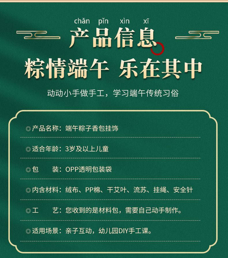 端午节礼物卡通粽子香囊幼儿园儿童新款手工diy端午节香包挂饰