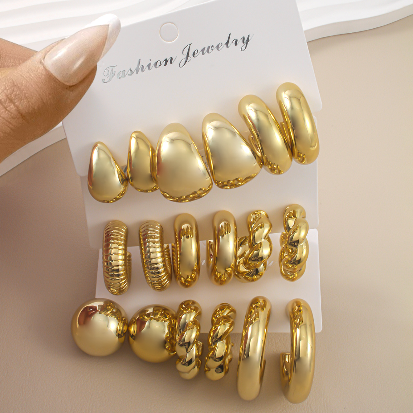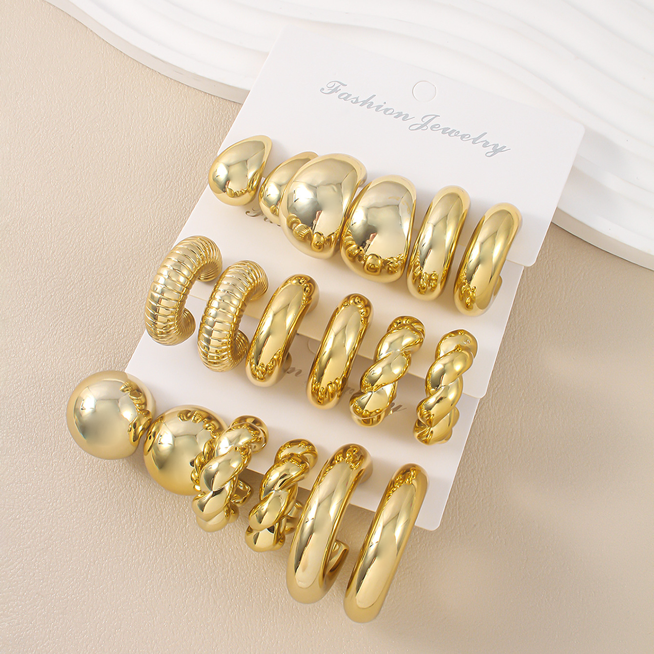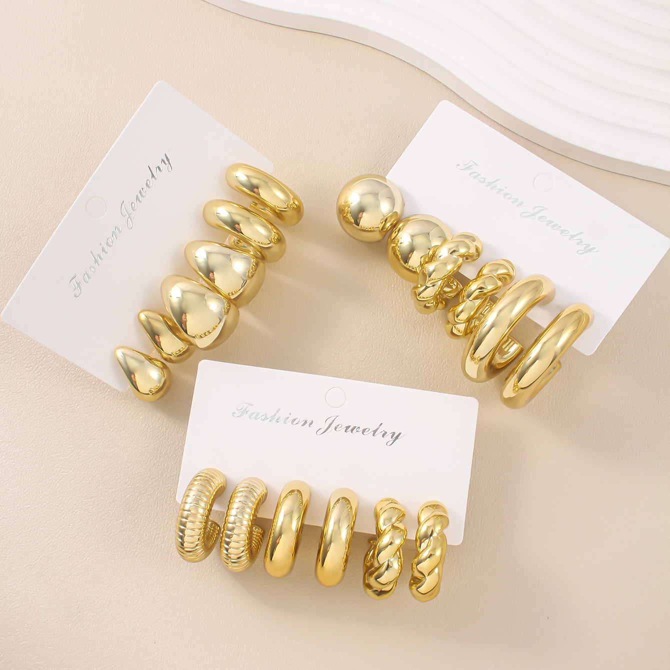 欧美跨境新款高级感金色个性夸张CCB耳环创意复圆圈耳环套装3对装