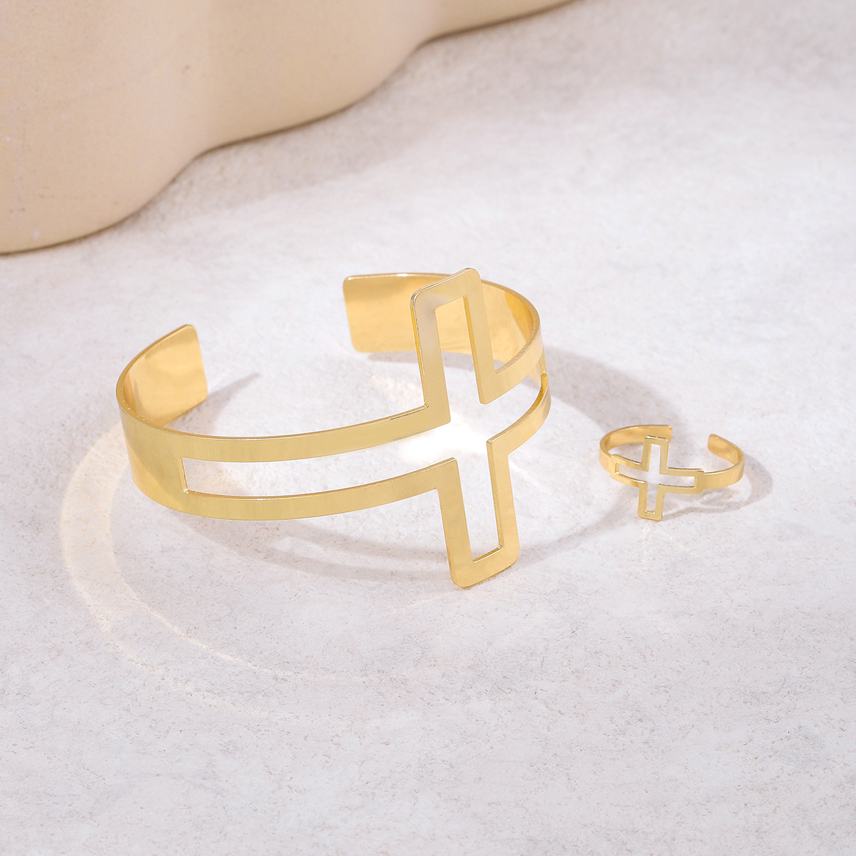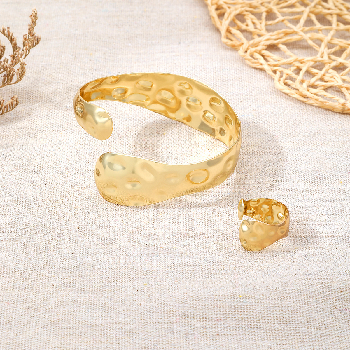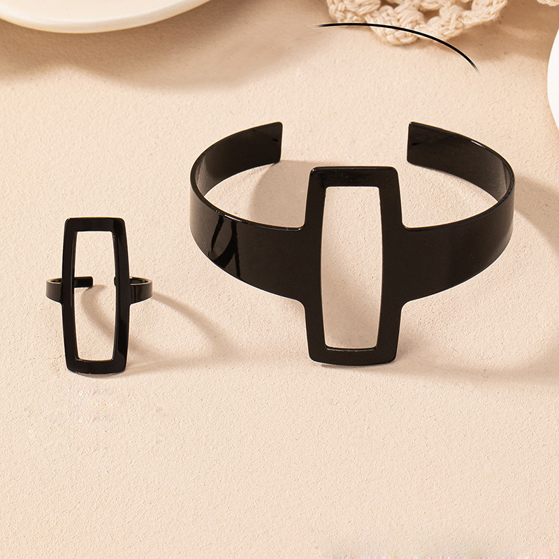 欧美跨境金属设计几何女士开口手镯戒指套装夸张朋克复古气质首饰
