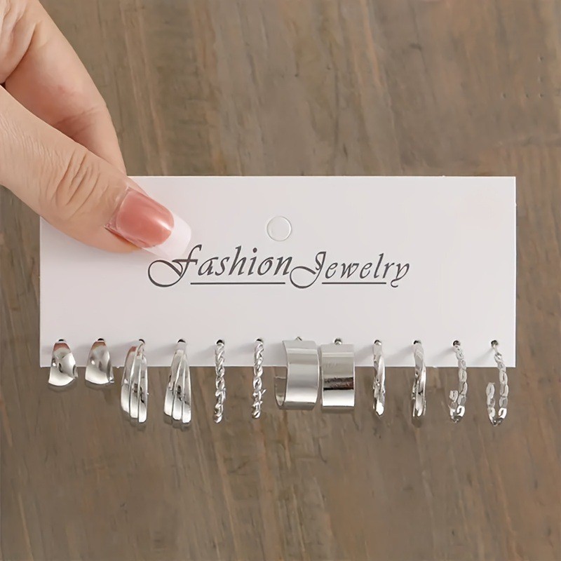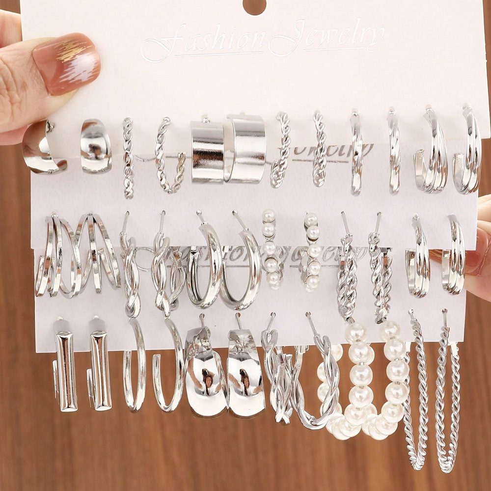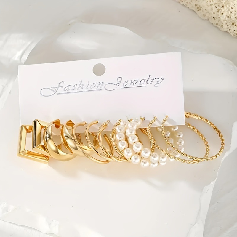 跨境爆款金属耳环高级感耳圈方形几何形耳环复古仿珍珠耳环套装