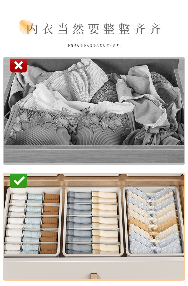 内衣收纳盒家用抽屉式分格神器衣柜装内裤袜子三合一整理箱子家居