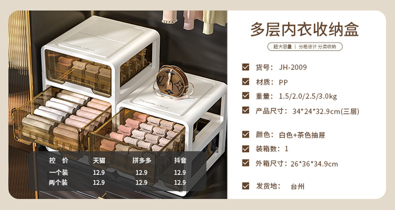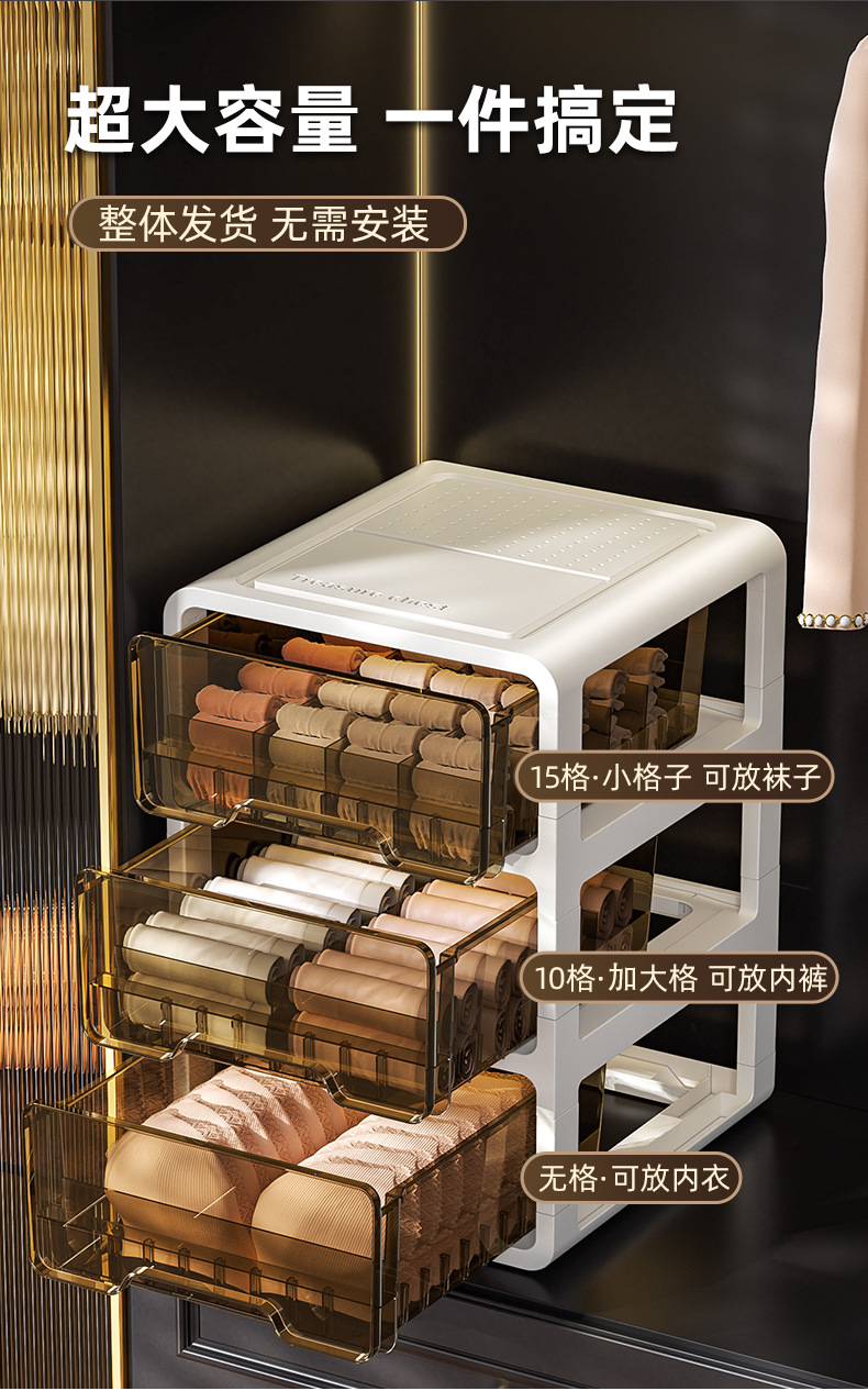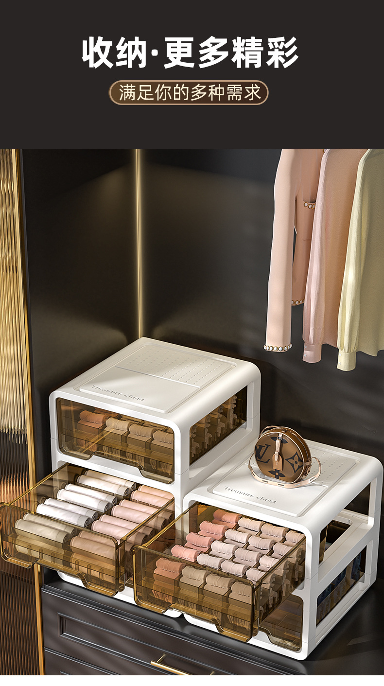 加厚抽屉式收纳箱家用透明内衣盒衣服收纳柜衣物整理箱抽屉收纳盒