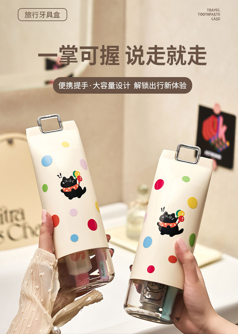 ins风高颜值旅行牙具盒 波点旅游牙刷牙杯便携式漱口杯牙膏收纳盒