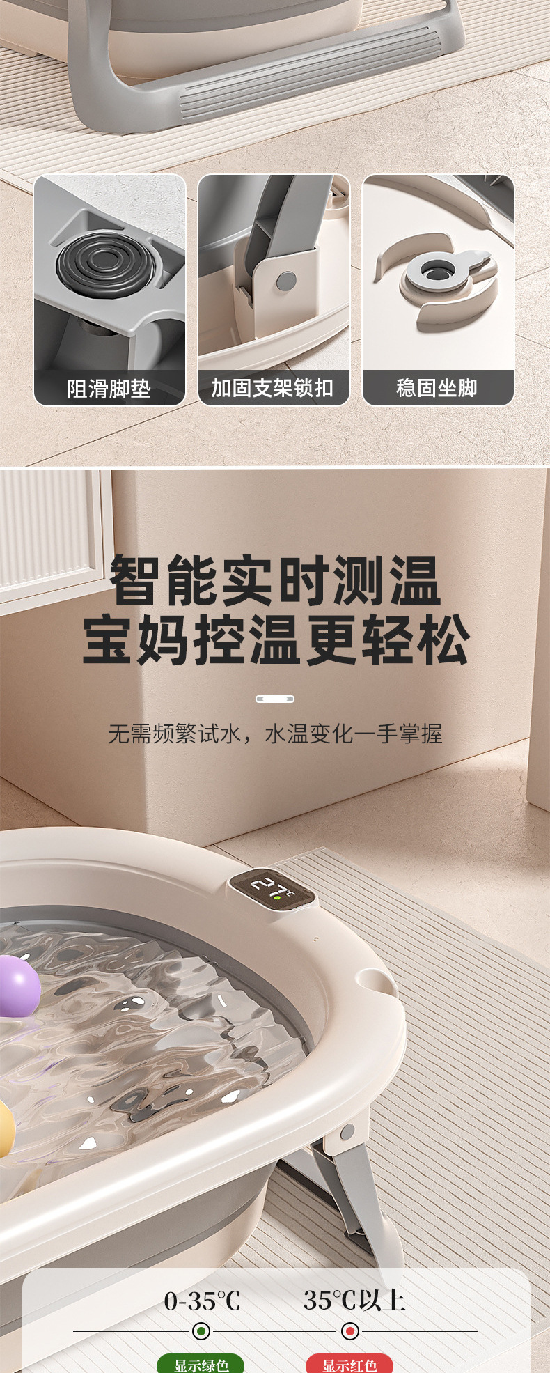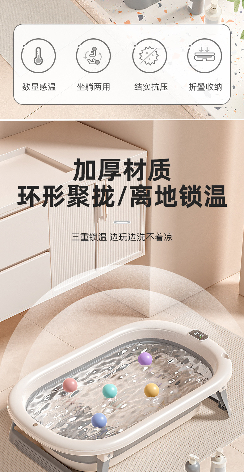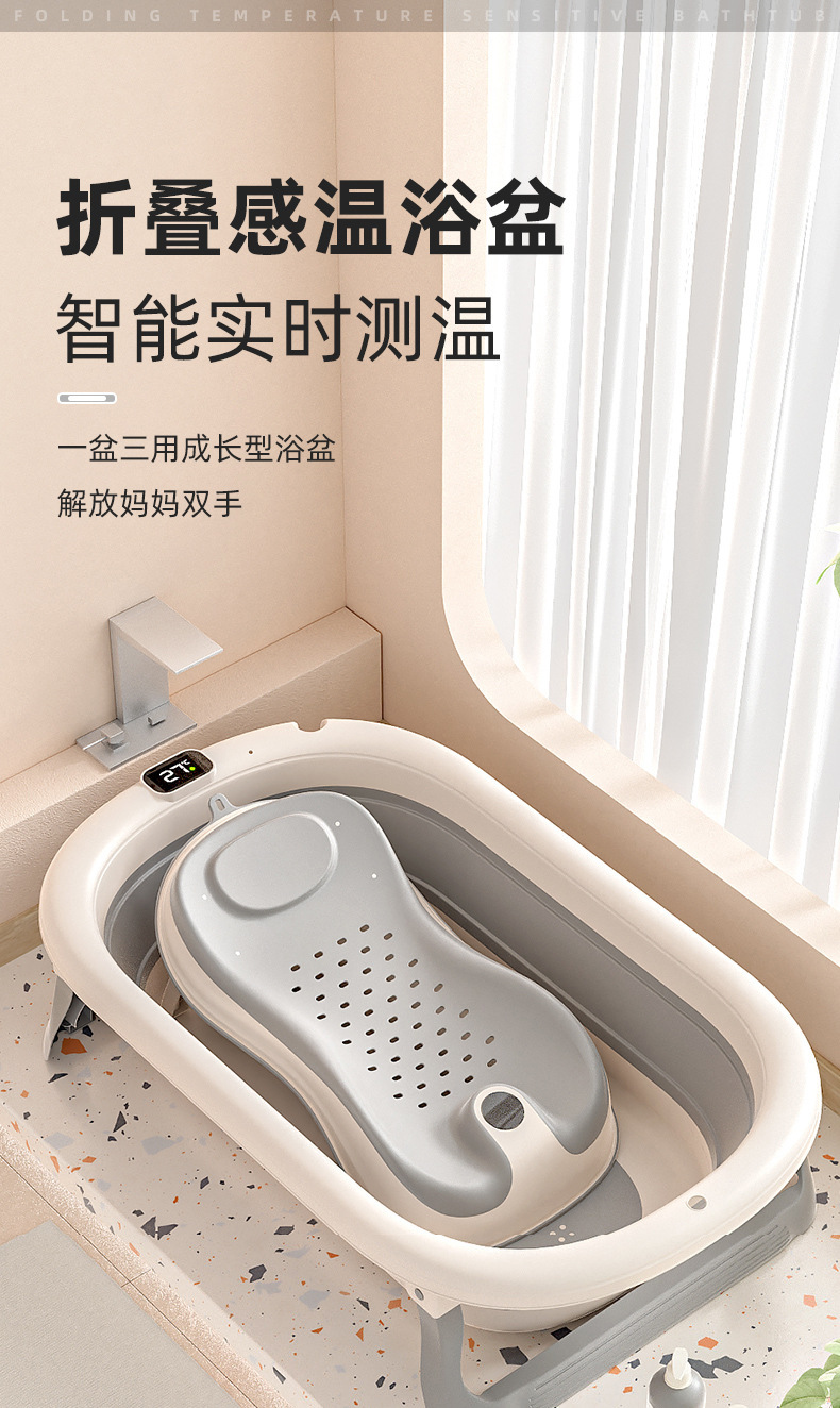 家用智能恒温大容量婴儿折叠浴盆儿童可坐躺婴儿洗澡加大加宽浴盆