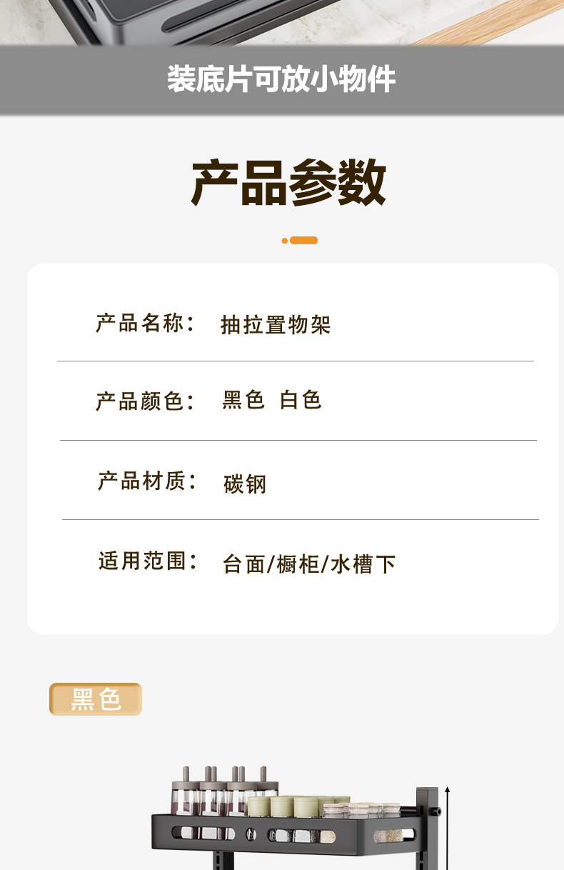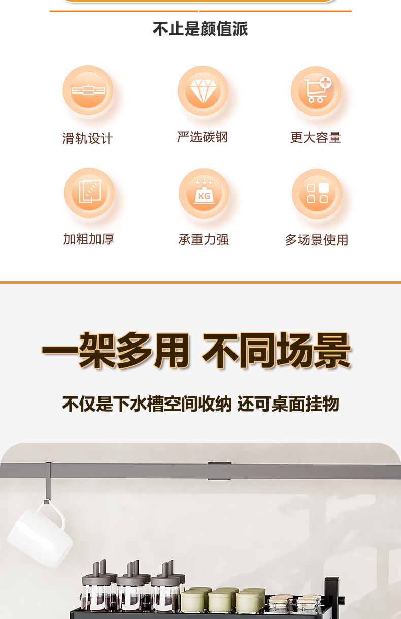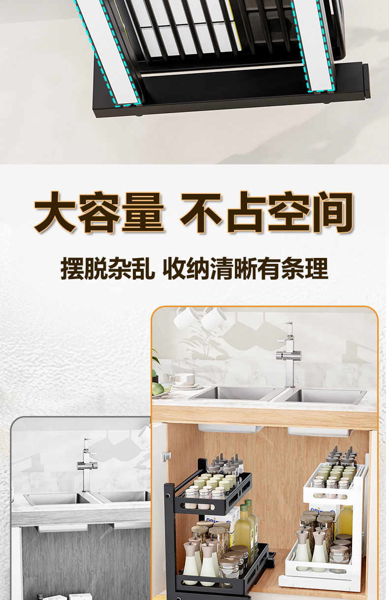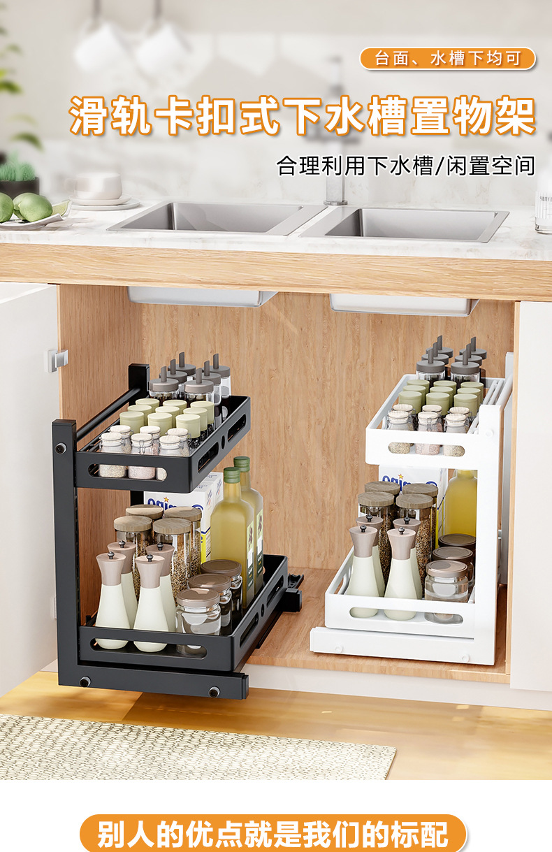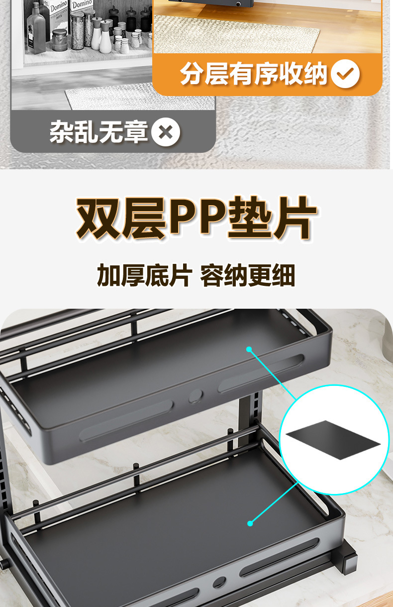 亚马逊厨房下水槽置物架收纳抽拉式收纳架调料碗碟橱柜分层架