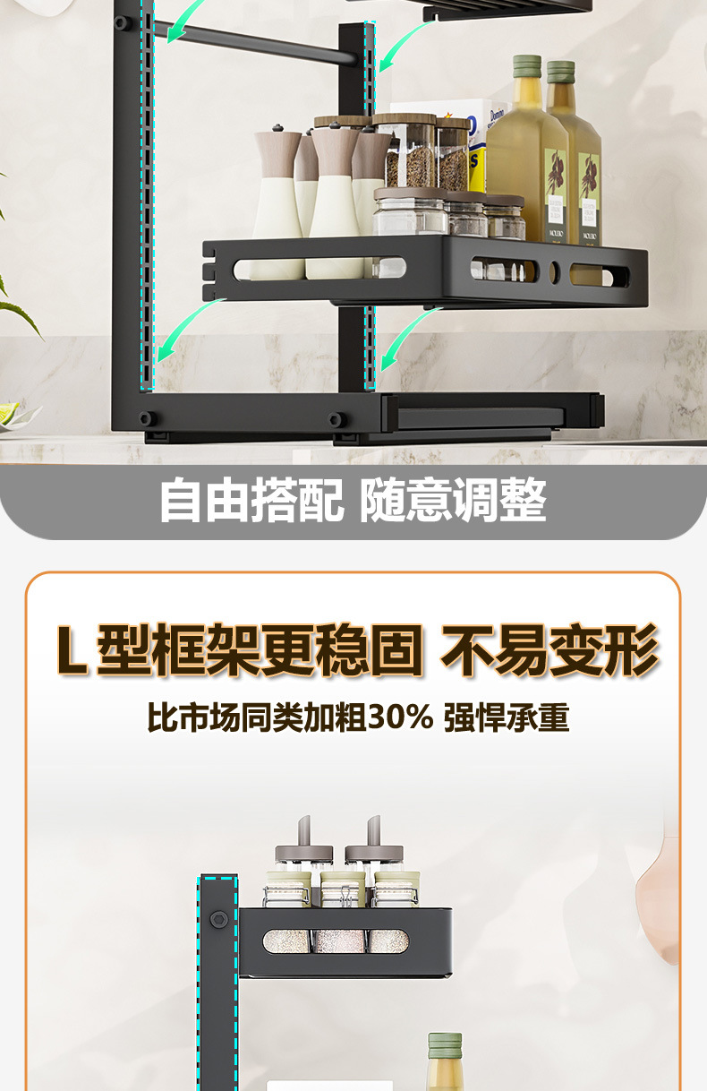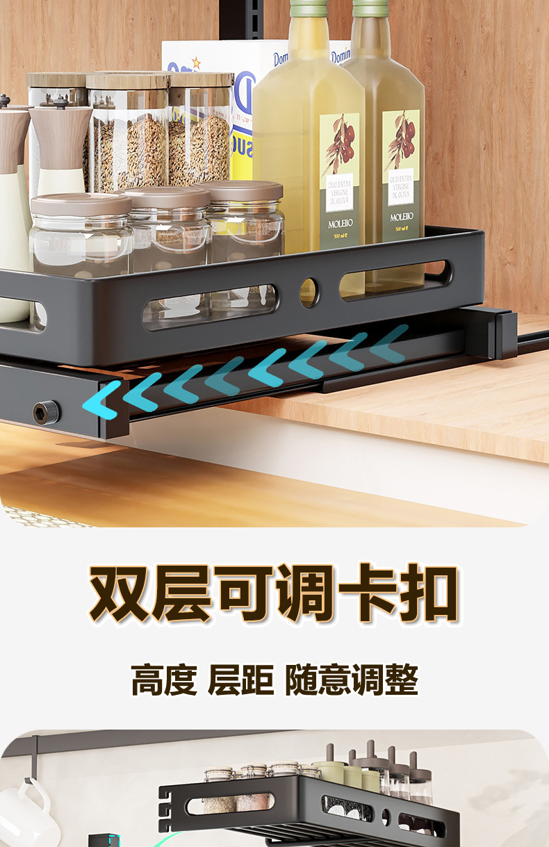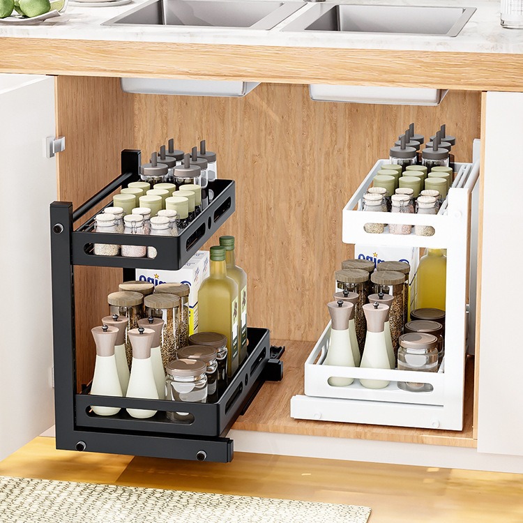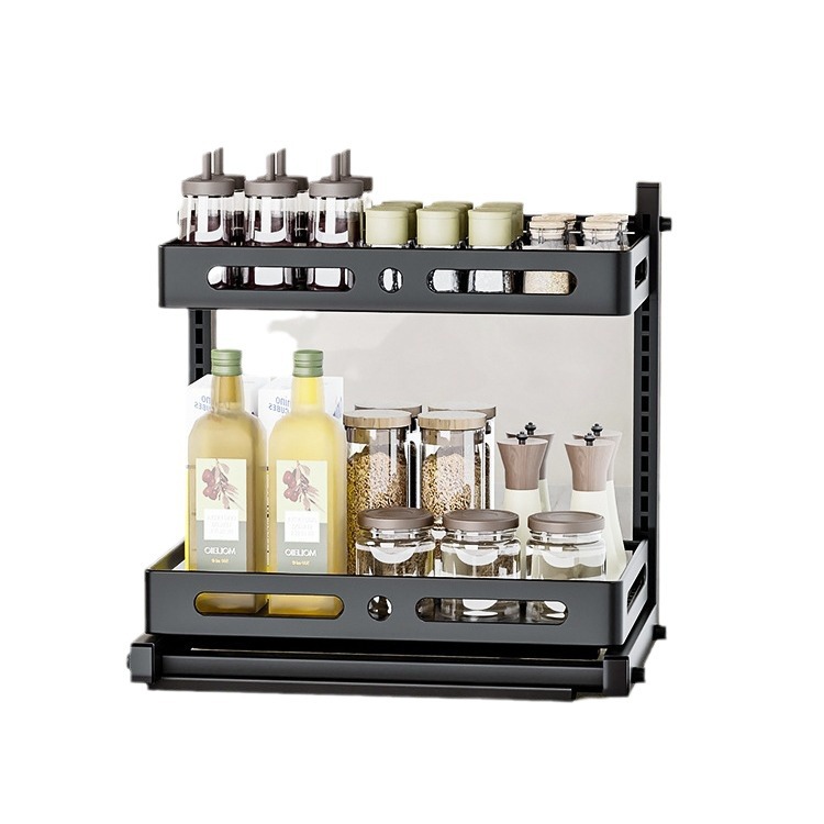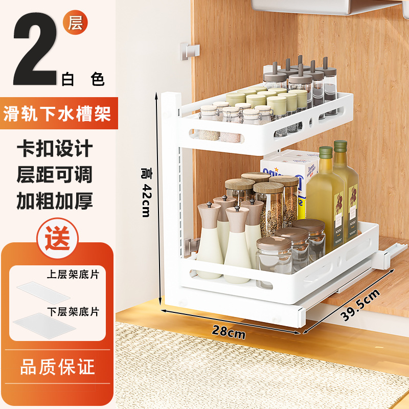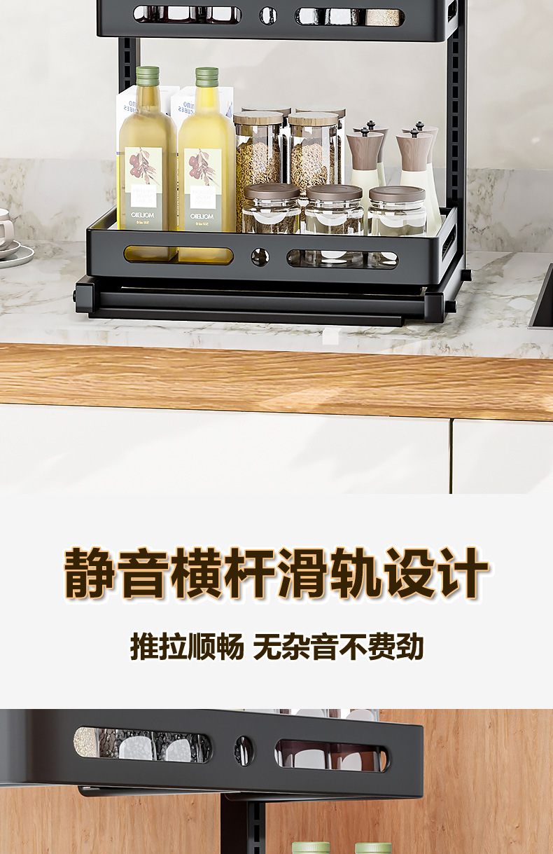 亚马逊厨房下水槽置物架收纳抽拉式收纳架调料碗碟橱柜分层架
